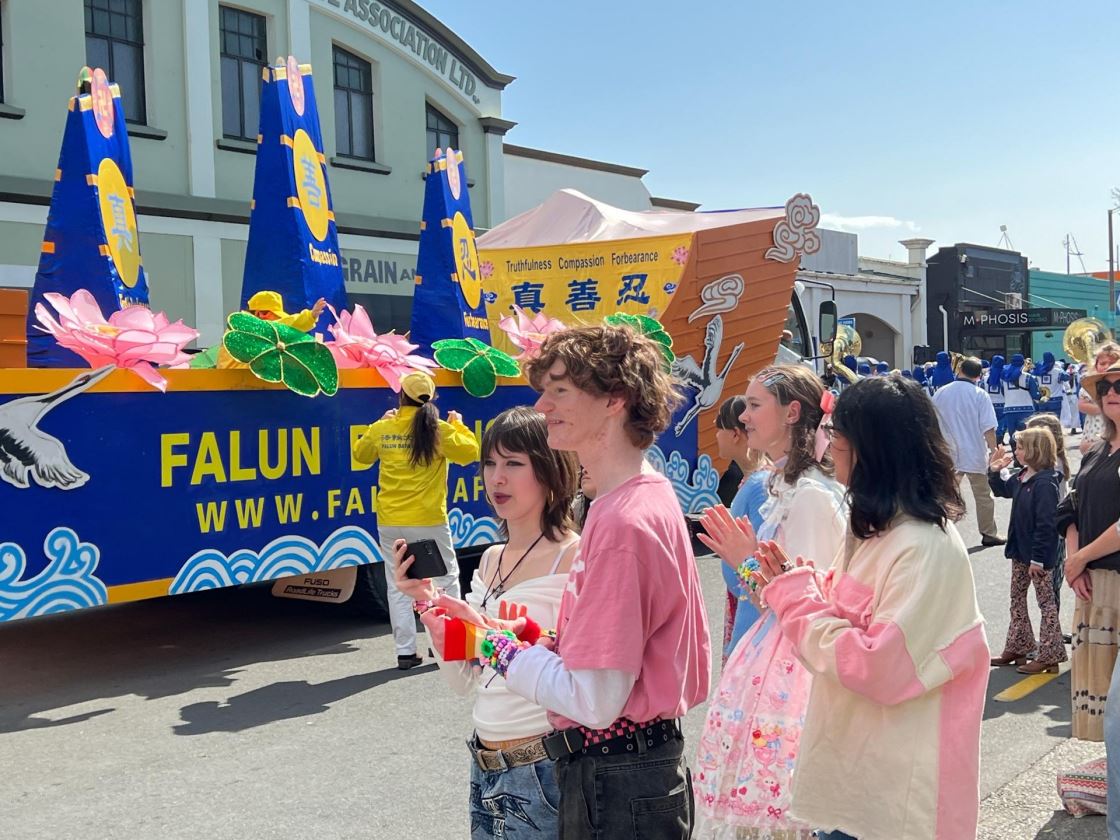 【明慧网二零二四年九月二十四日】(明慧新西兰记者站报道)新西兰的黑斯廷斯(Hastings)位于北岛东岸的豪克斯湾(Hawke's Bay ),那里果园和葡萄园众多,以出产世界顶级葡萄酒闻名。二零二四年九月二十一日,黑斯廷斯举行了一年一度盛大的花朵绽放游行(Blossom Parade)来庆祝春天的到来。法轮功学员应邀参加,他们不仅凭着出色的表演拿到最佳表演奖,主办方更是感谢他们将美好理念带给了社区。