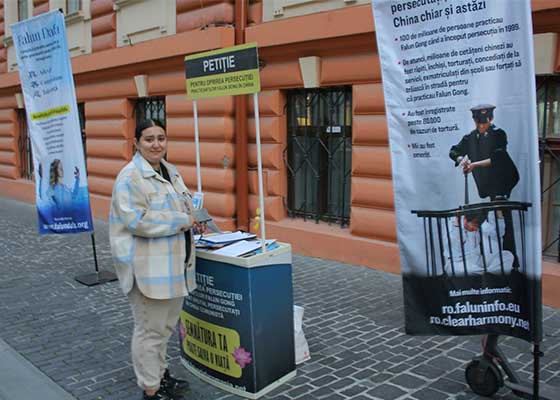 罗马尼亚部分法轮功学员9月21日来到山城布拉索夫,向当地民众和游客发放真相传单,讲述法轮大法是什么,并征集签名制止中共的迫害。