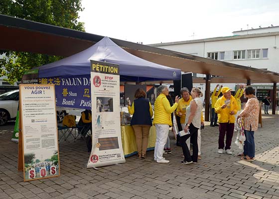 - 在法国西部海港城市介绍法轮功- 月三十一日,法轮功学员在法国洛里昂市举办了法轮功信息日活动。法轮功学员演示法轮功功法,向人们展示法轮大法及其修炼原理真、善、忍的美好。