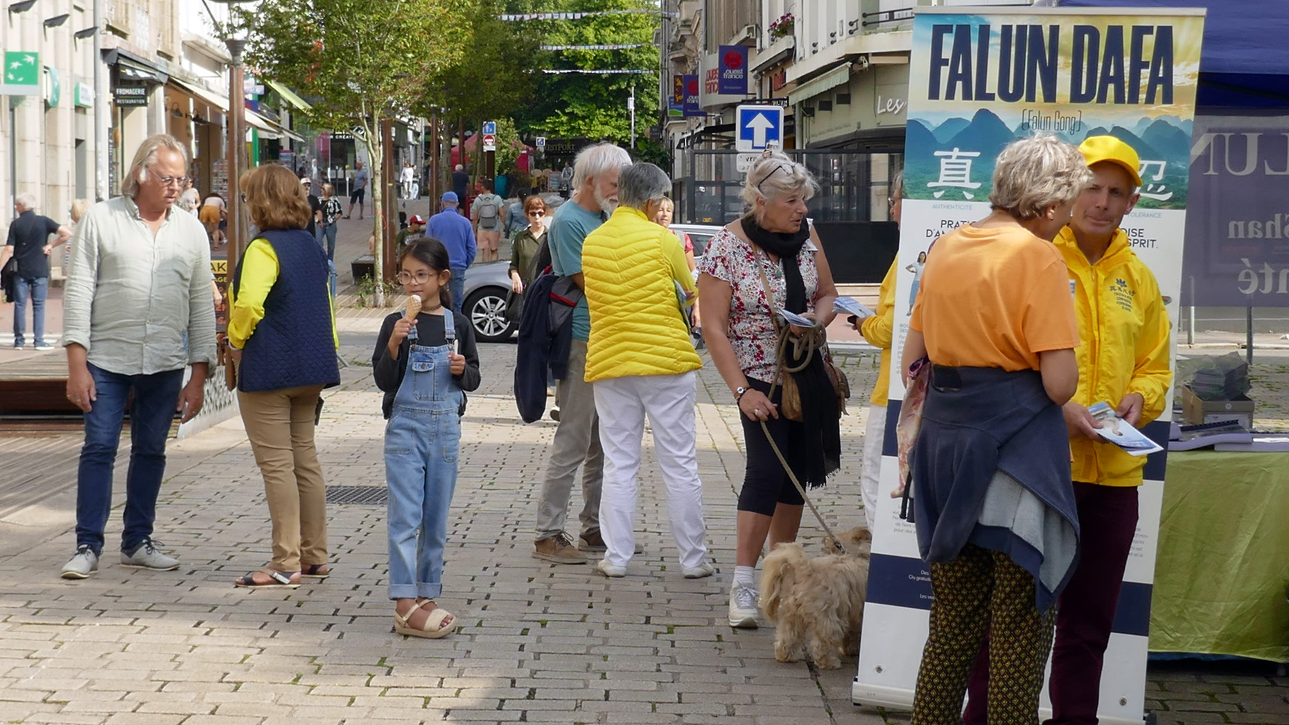 【明慧网二零二四年九月三日】二零二四年八月三十一日星期六,法轮功学员在法国西部的洛里昂(Lorient)市保罗・贝尔广场(Place Paul Bert)举办了法轮功信息日活动。法轮功学员演示法轮功功法,向人们展示法轮大法及其修炼原理真、善、忍的美好,揭露中共对法轮功迫害的暴行。