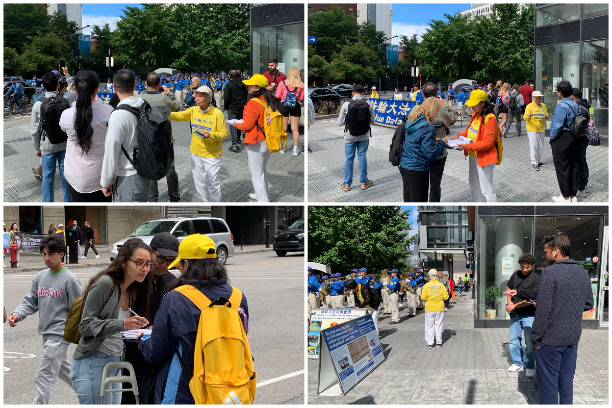 法轮功学员在蒙特利尔市中心传真相 民众支持
