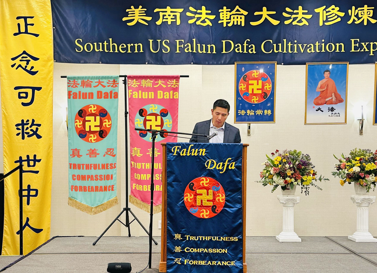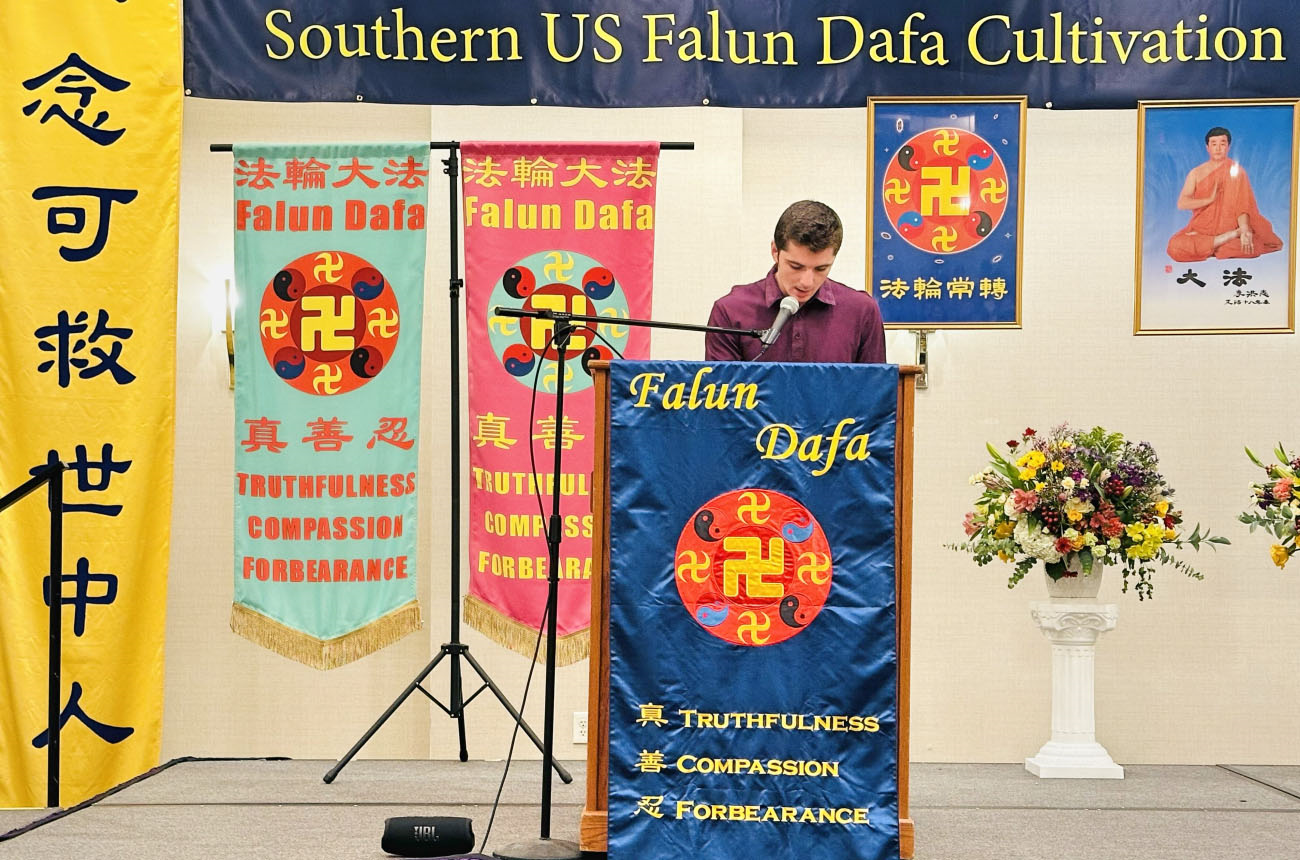 来自休斯顿的学员陈先生曾是个问题青年,父母离婚后父亲再婚,母亲出国,无人管教的他逐渐染上各种恶习。尽管如此,他内心深处一直在寻找着什么,来到美国后,他偶然间在网上看到《转法轮》,一口气读完整本书,他内心有一种难以言喻的喜悦,感觉自己对人生的所有疑问都得到解答,因此与妻子相继走入修炼。