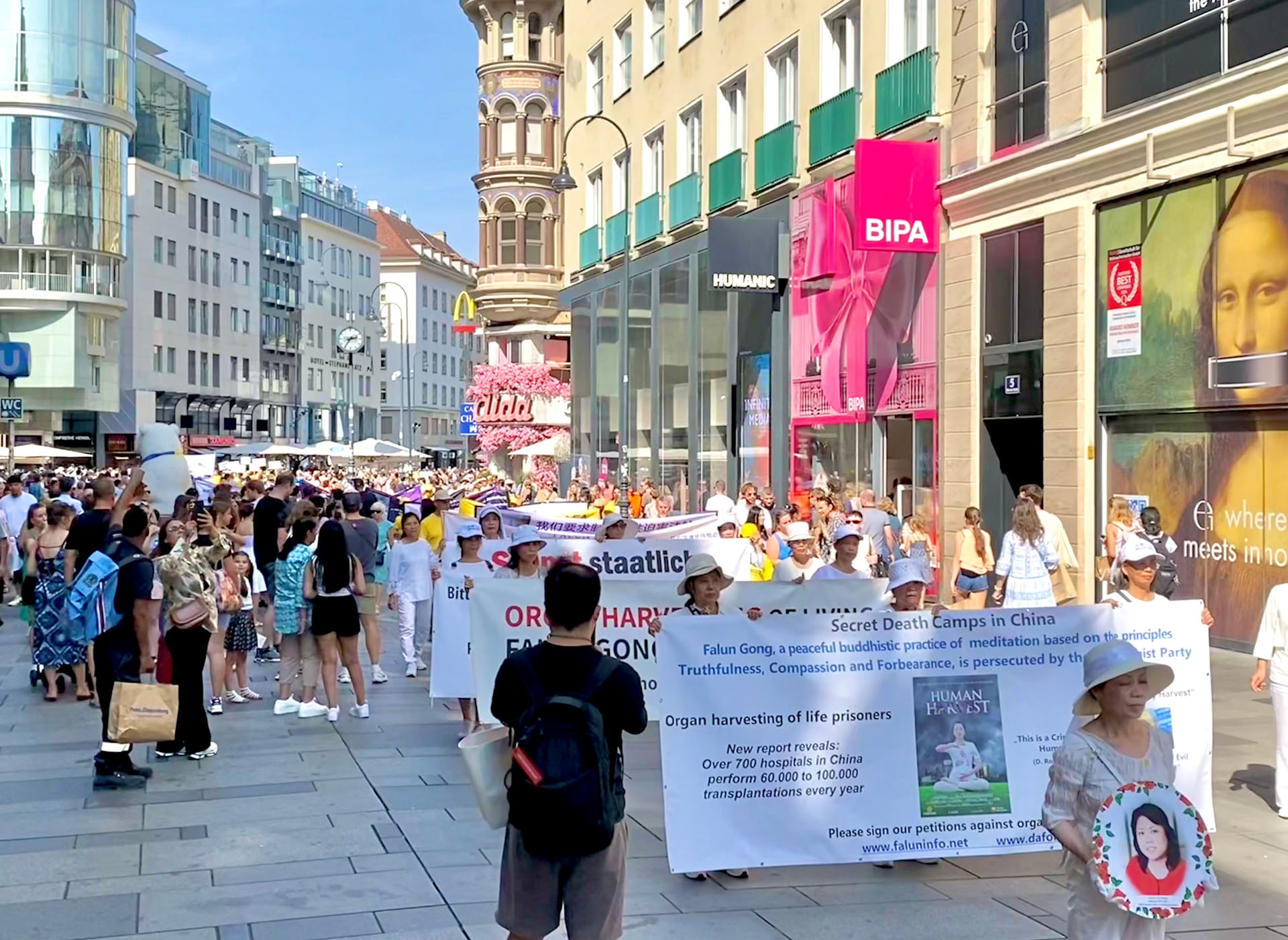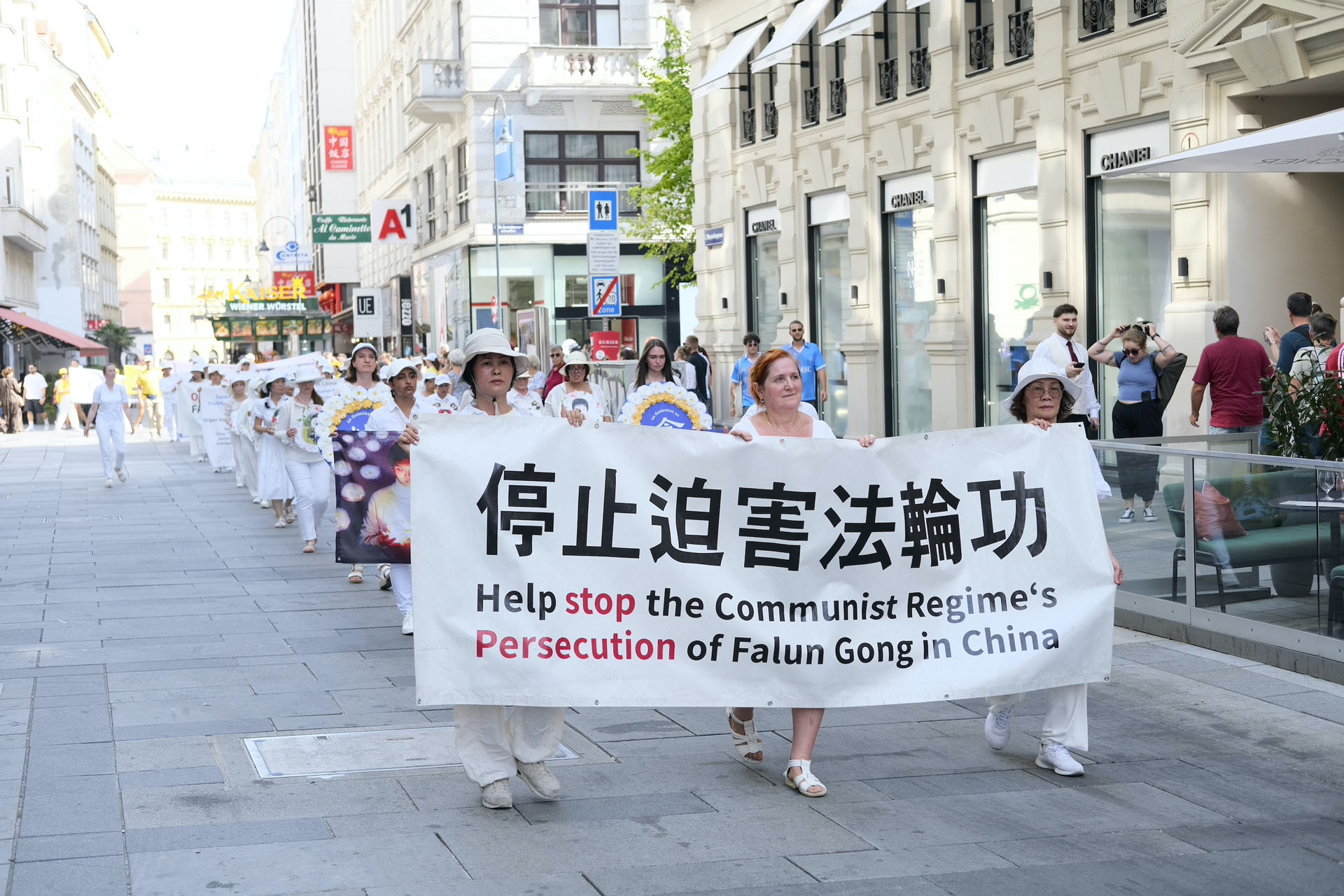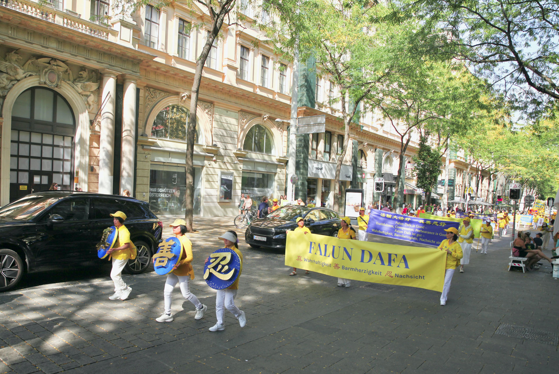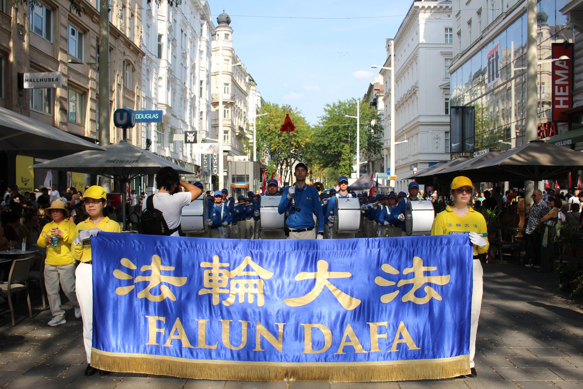 【明慧网二零二四年九月六日】(明慧记者高思羽、德祥奥地利维也纳采访报道)在音乐之都维也纳的街头,听到阵阵乐曲演奏声,是司空见惯的。但在二零二四年八月三十一日,在维也纳市中心的大道上传出的洪亮音乐声,吸引了很多人的注意力,大家都静静地看着这支带来独特音乐游行的队伍。