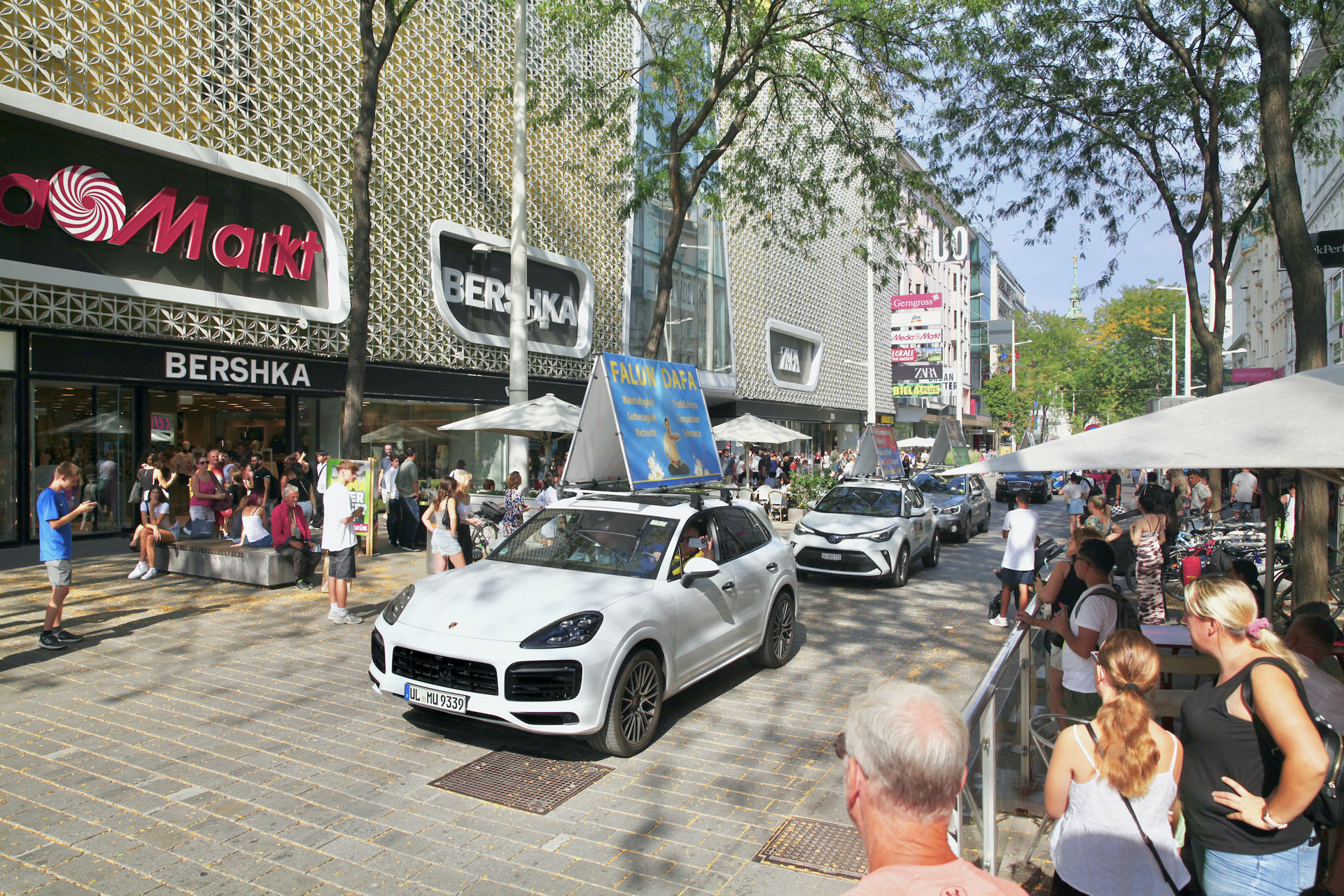 图10~11:周五车队在维也纳市游行,顶部展板传递的讯息吸引了众多路人