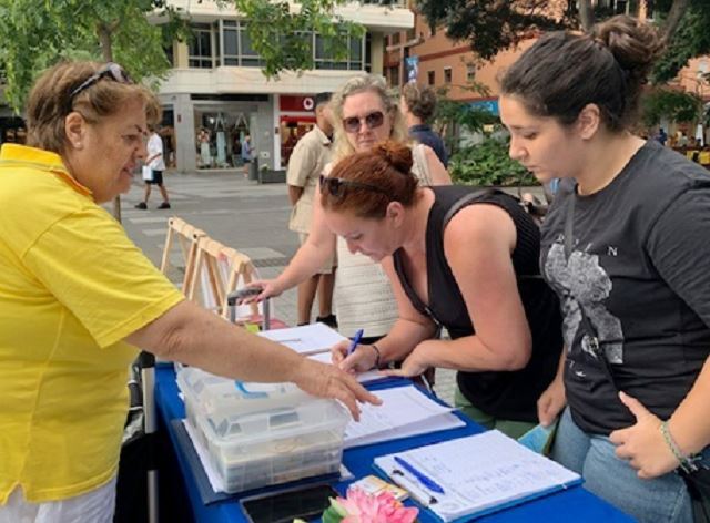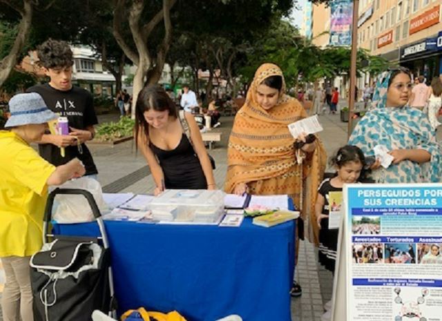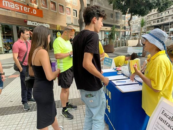 【明慧网二零二四年九月八日】二零二四年八月十六日,西班牙南部大加那利群岛拉斯帕尔马斯的法轮功学员在市中心的西班牙广场,举办了一场针对制止中共迫害法轮功的征签活动。活动现场,学员们展开横幅并向市民派发真相传单,过往民众对横幅和传单上传递的信息感到震惊,纷纷停下来进一步了解情况。
