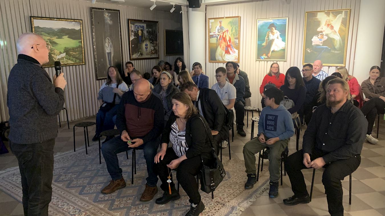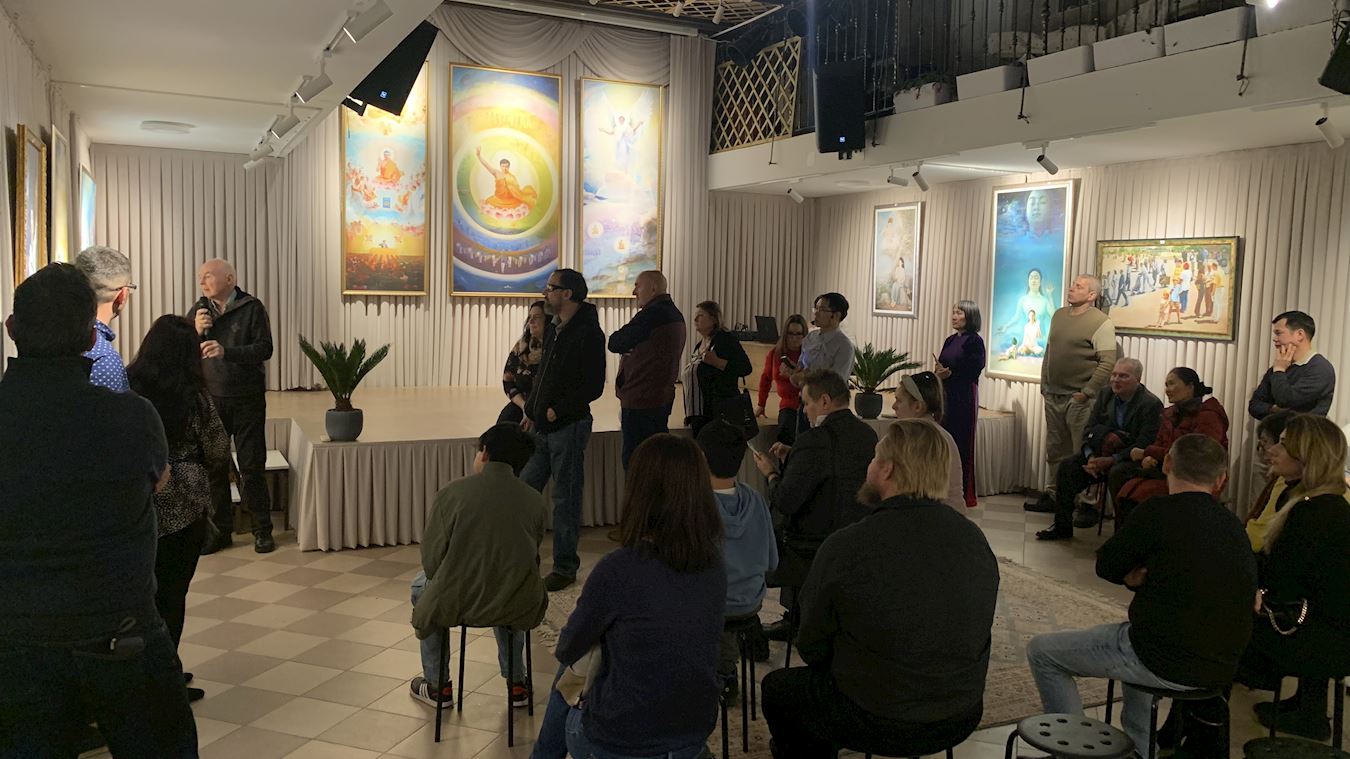 美展设立在一座新落成的画廊中,目前陈列着二十八幅由世界各地法轮功学员创作的画作。在开幕式中,学员担任义务讲解员,向观众一一介绍作品创作的背景及其深层涵义。观众们了解到,这些作画者既是法轮大法修炼者,又是艺术家,他们正在努力回归文艺复兴时期的传统艺术之路。