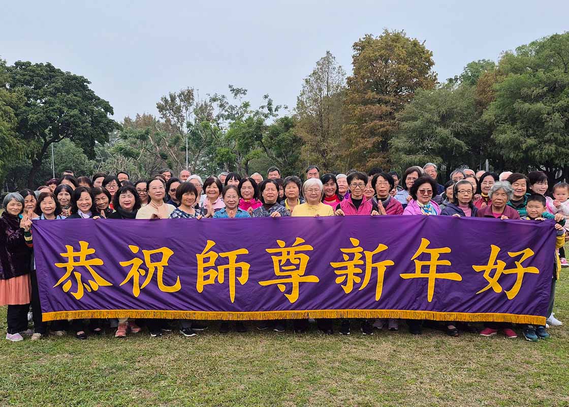 为表达对法轮功创始人李洪志先生最崇高的敬意和感恩,部分台湾云林法轮功学员元旦之际来到云林绿色隧道活动广场,大家合十齐声同贺。