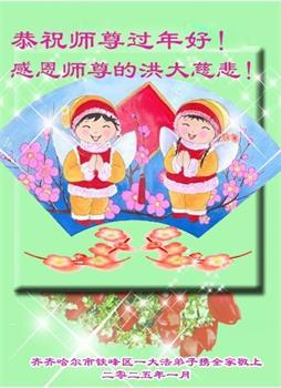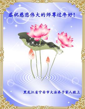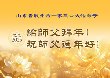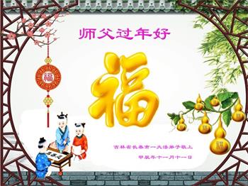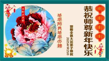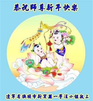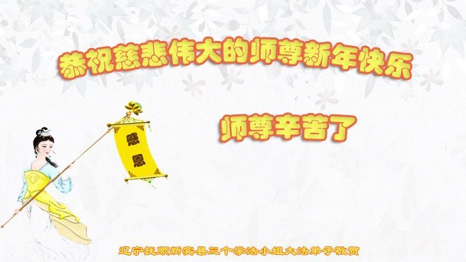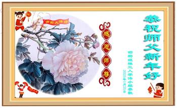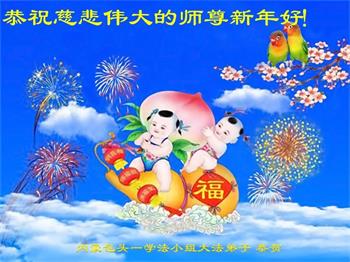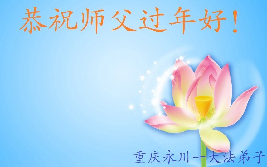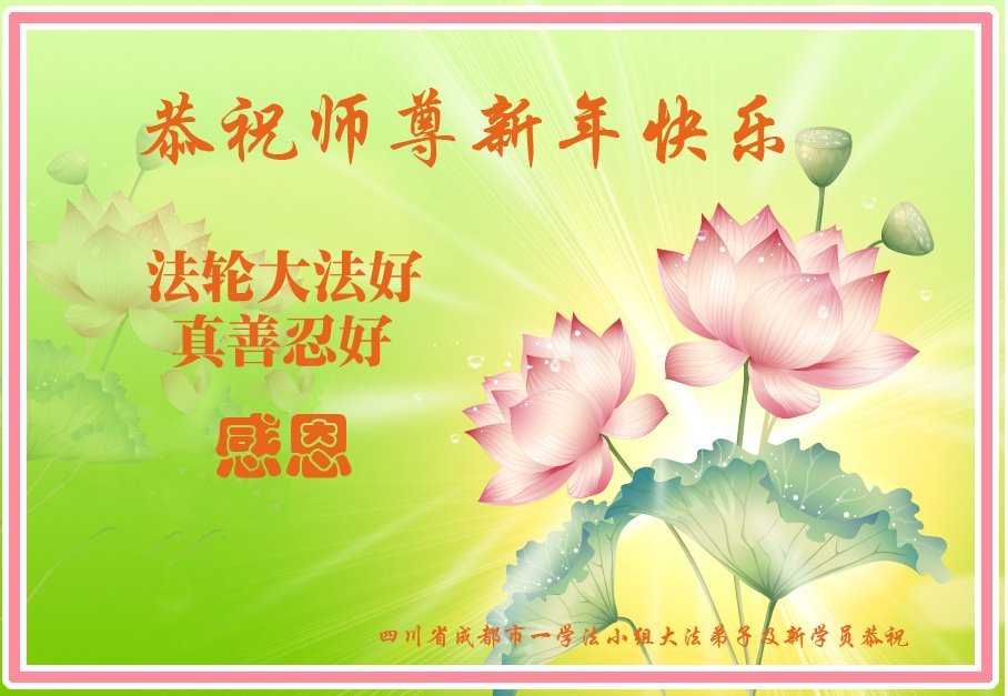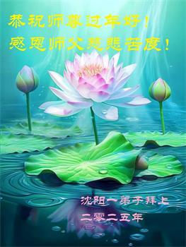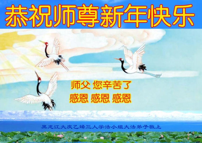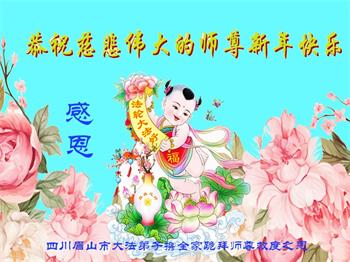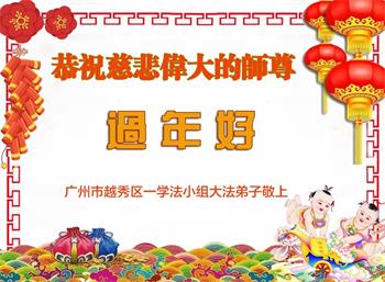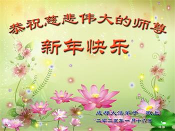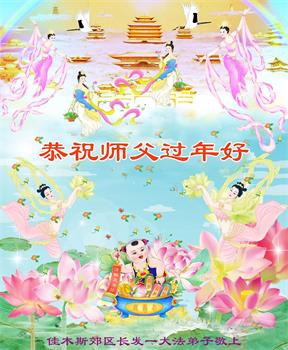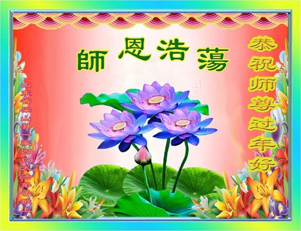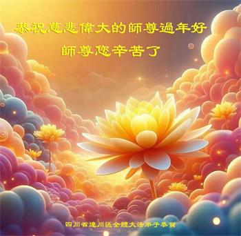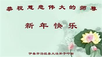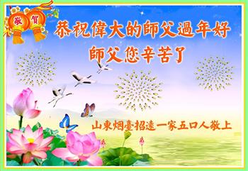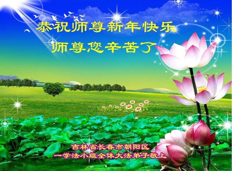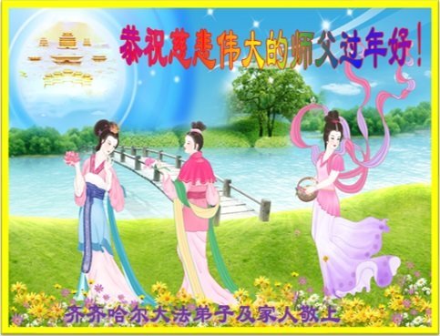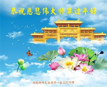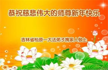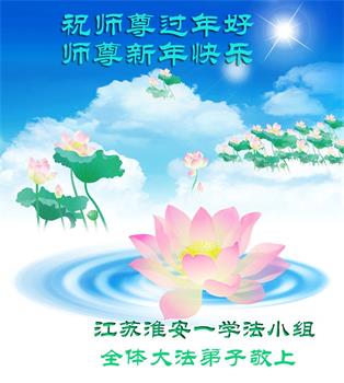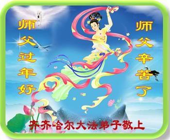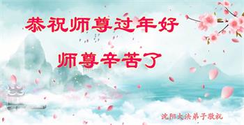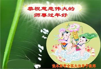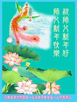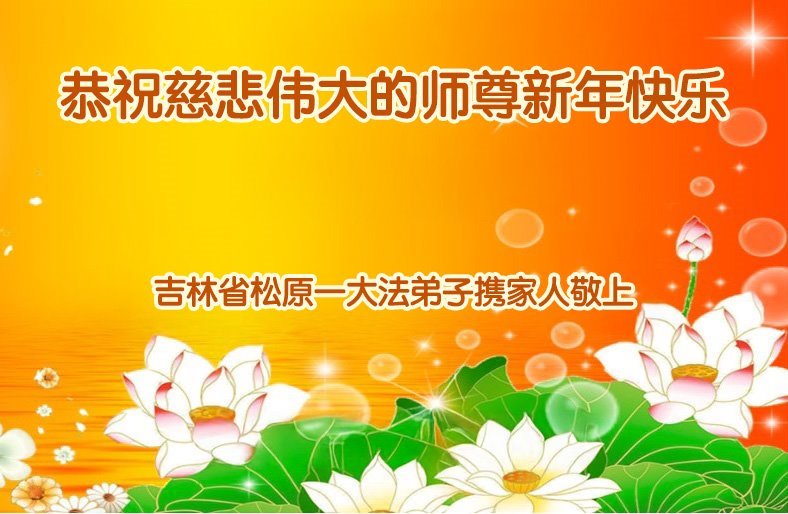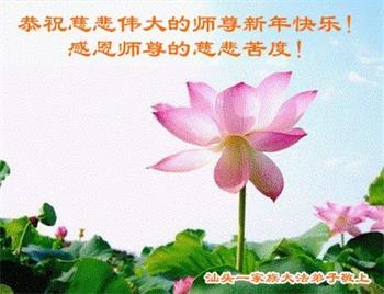 感恩师父的慈悲救度!感恩师父将我们从地狱中捞出洗净,引领我们走上一条返本归真之路。在新年到来之际,我们全家大法弟子及新学员(共6人)给慈悲伟大的师尊拜年:师父过年好!师父您辛苦了!