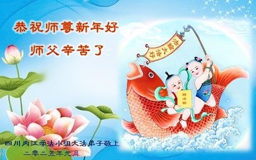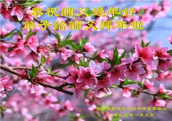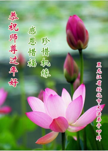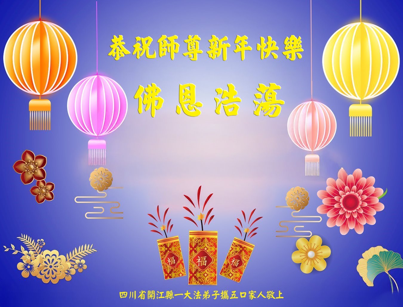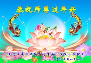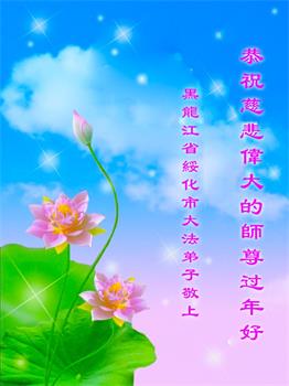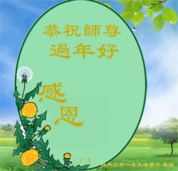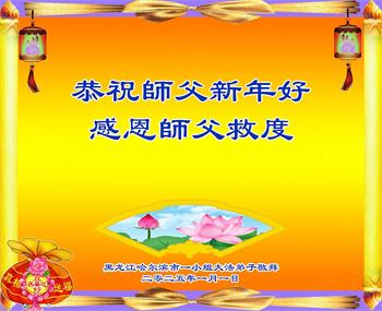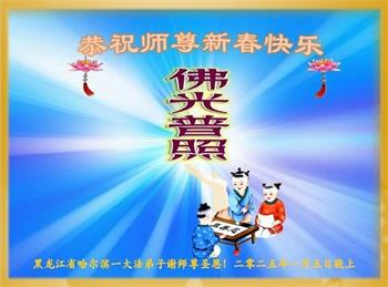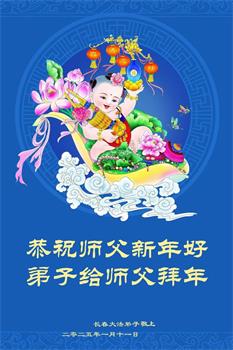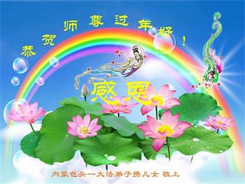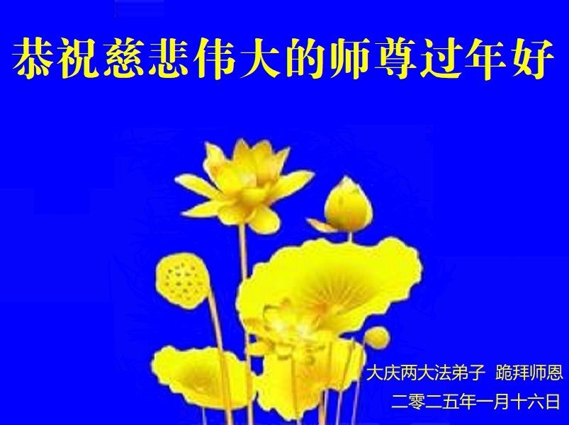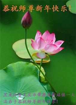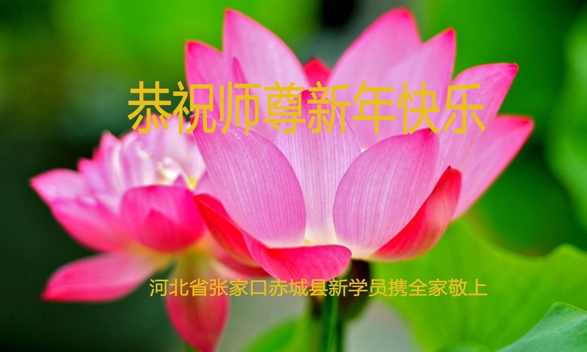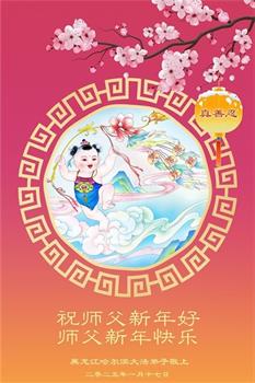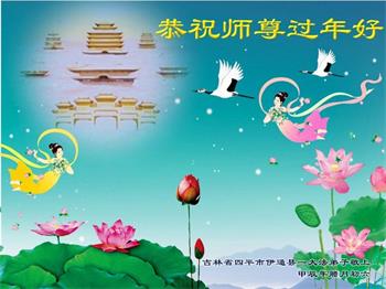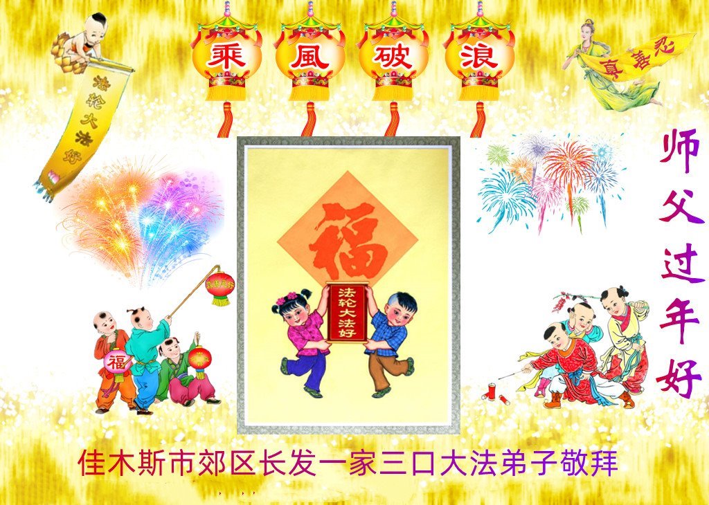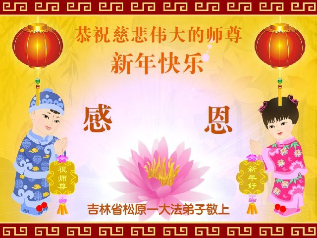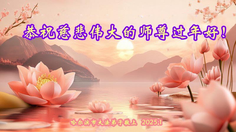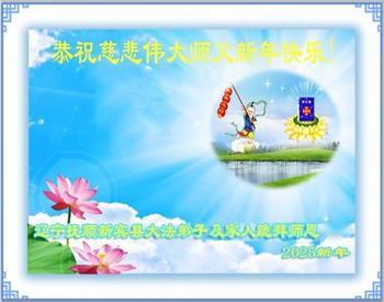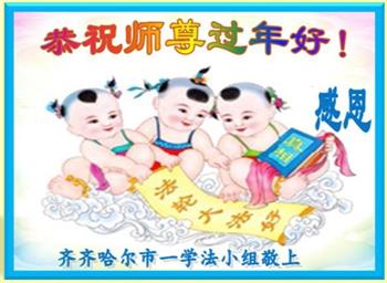 感恩师父的慈悲救度!感恩师父将我们从地狱中捞出洗净,引领我们走上一条返本归真之路。在新年到来之际,我们全家大法弟子及新学员(共6人)给慈悲伟大的师尊拜年:师父过年好!师父您辛苦了!