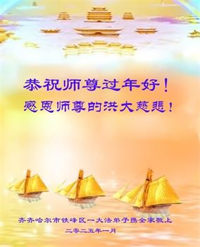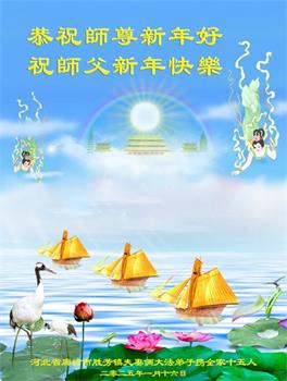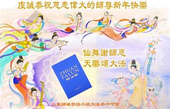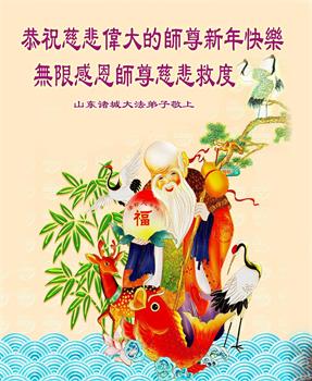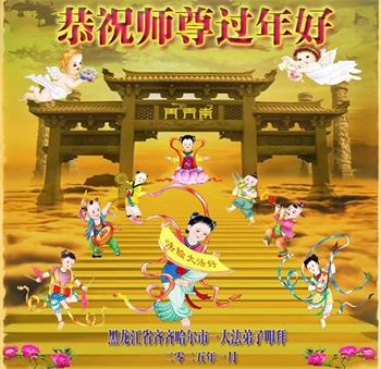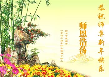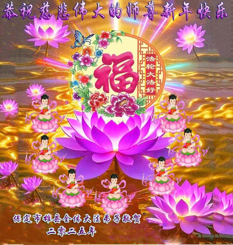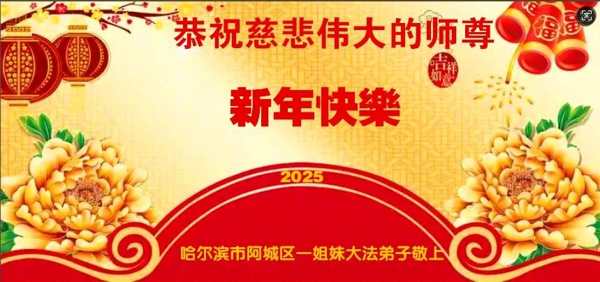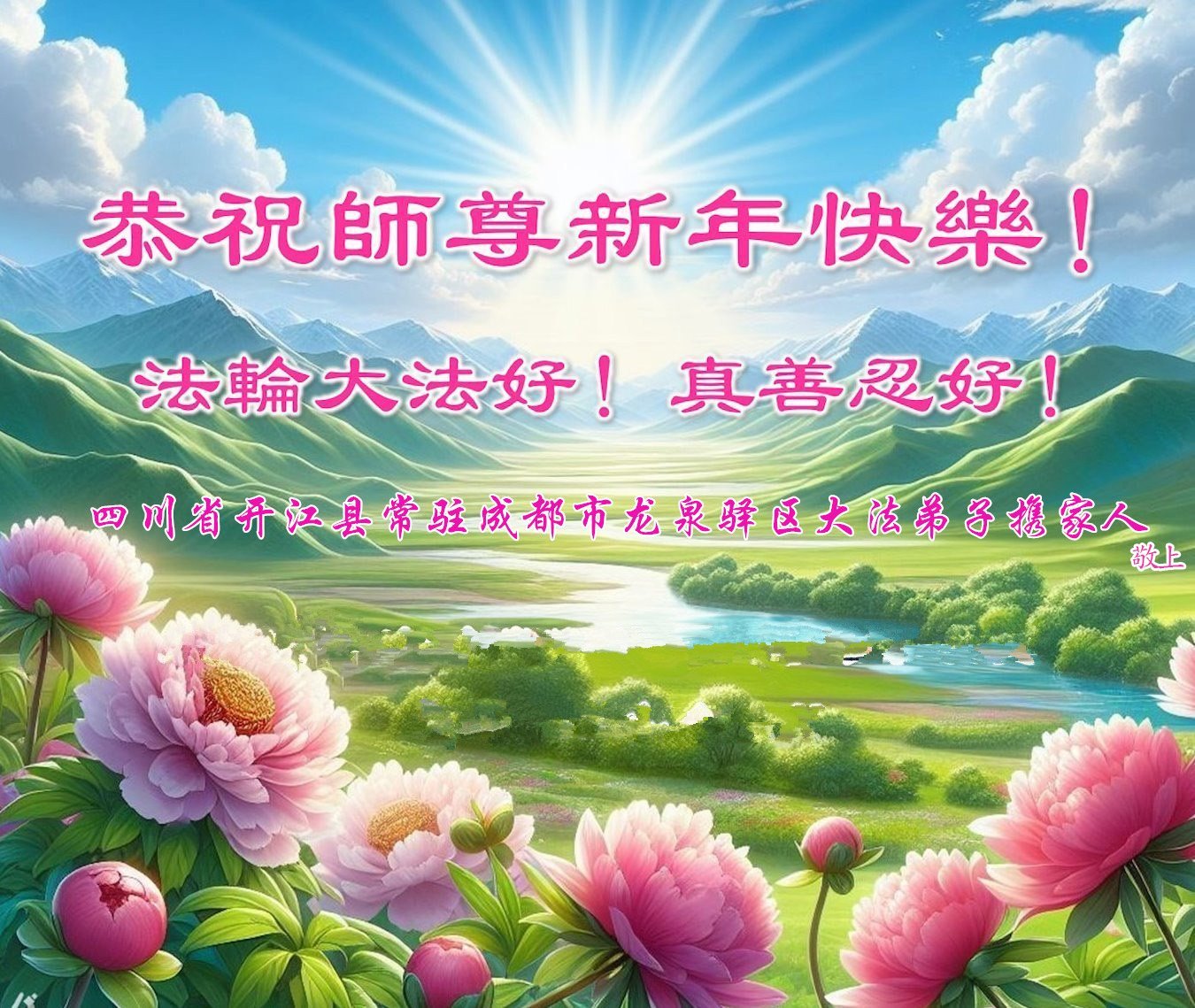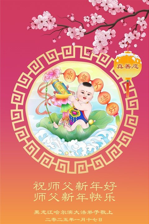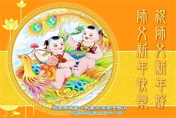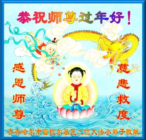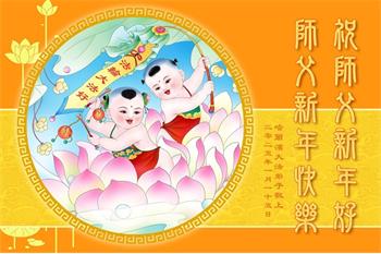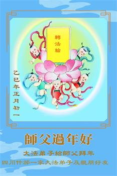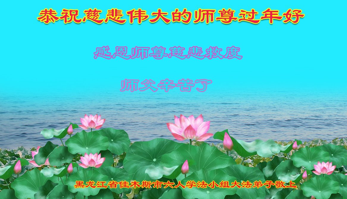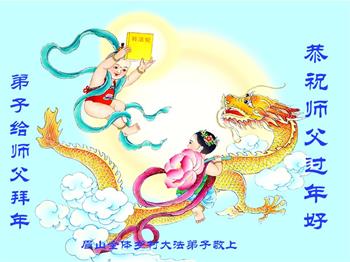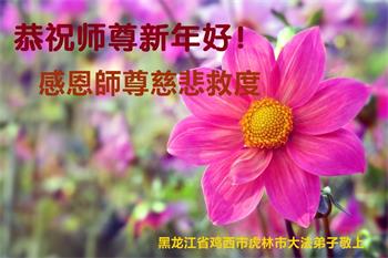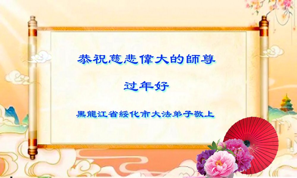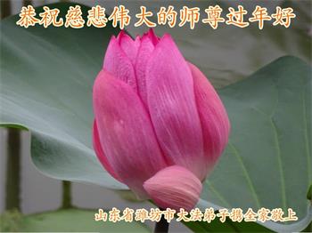 感恩师父的慈悲救度!感恩师父将我们从地狱中捞出洗净,引领我们走上一条返本归真之路。在新年到来之际,我们全家大法弟子及新学员(共6人)给慈悲伟大的师尊拜年:师父过年好!师父您辛苦了!
