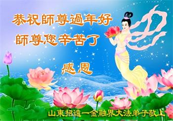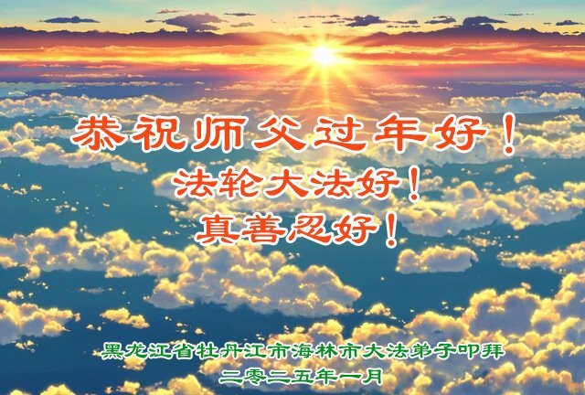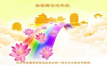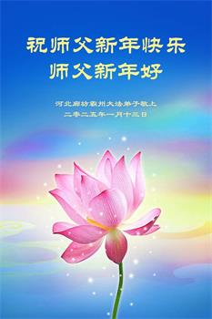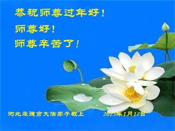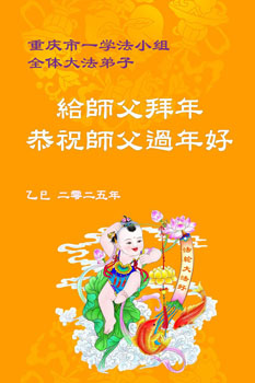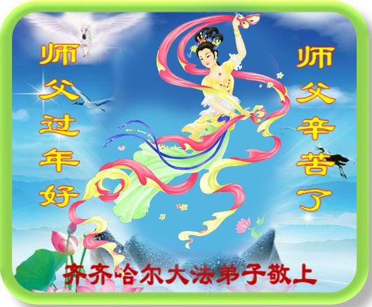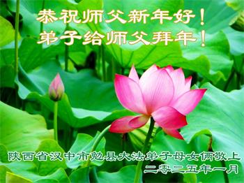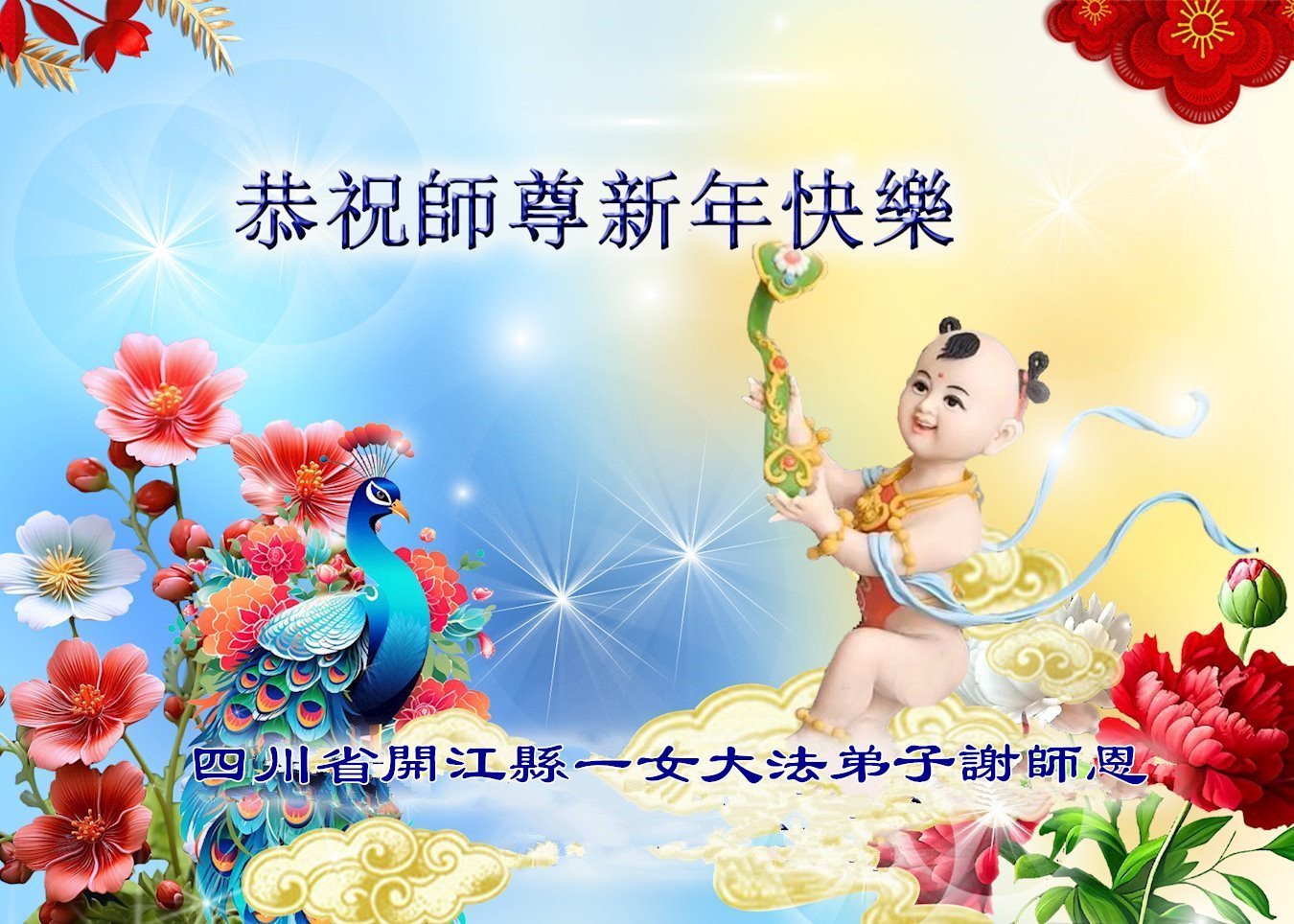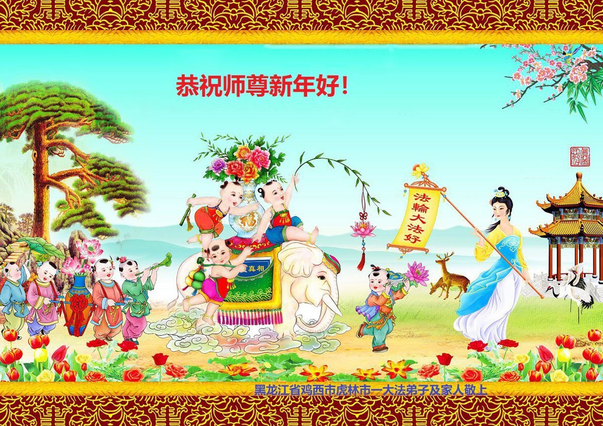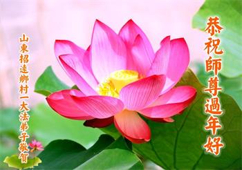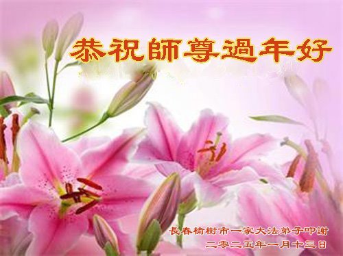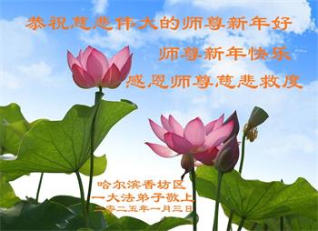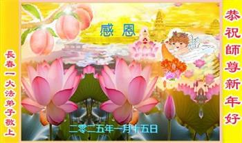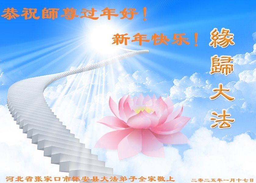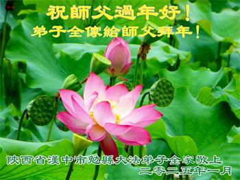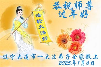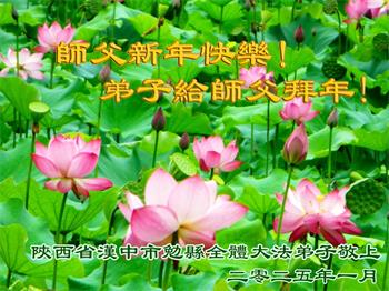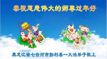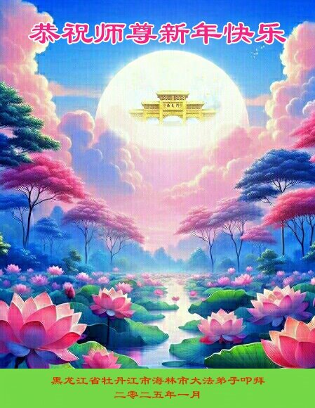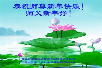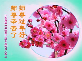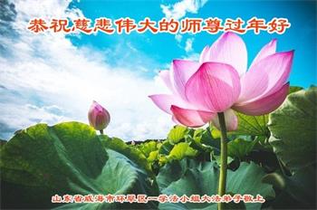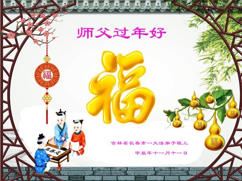 感恩师父的慈悲救度!感恩师父将我们从地狱中捞出洗净,引领我们走上一条返本归真之路。在新年到来之际,我们全家大法弟子及新学员(共6人)给慈悲伟大的师尊拜年:师父过年好!师父您辛苦了!