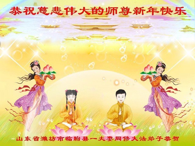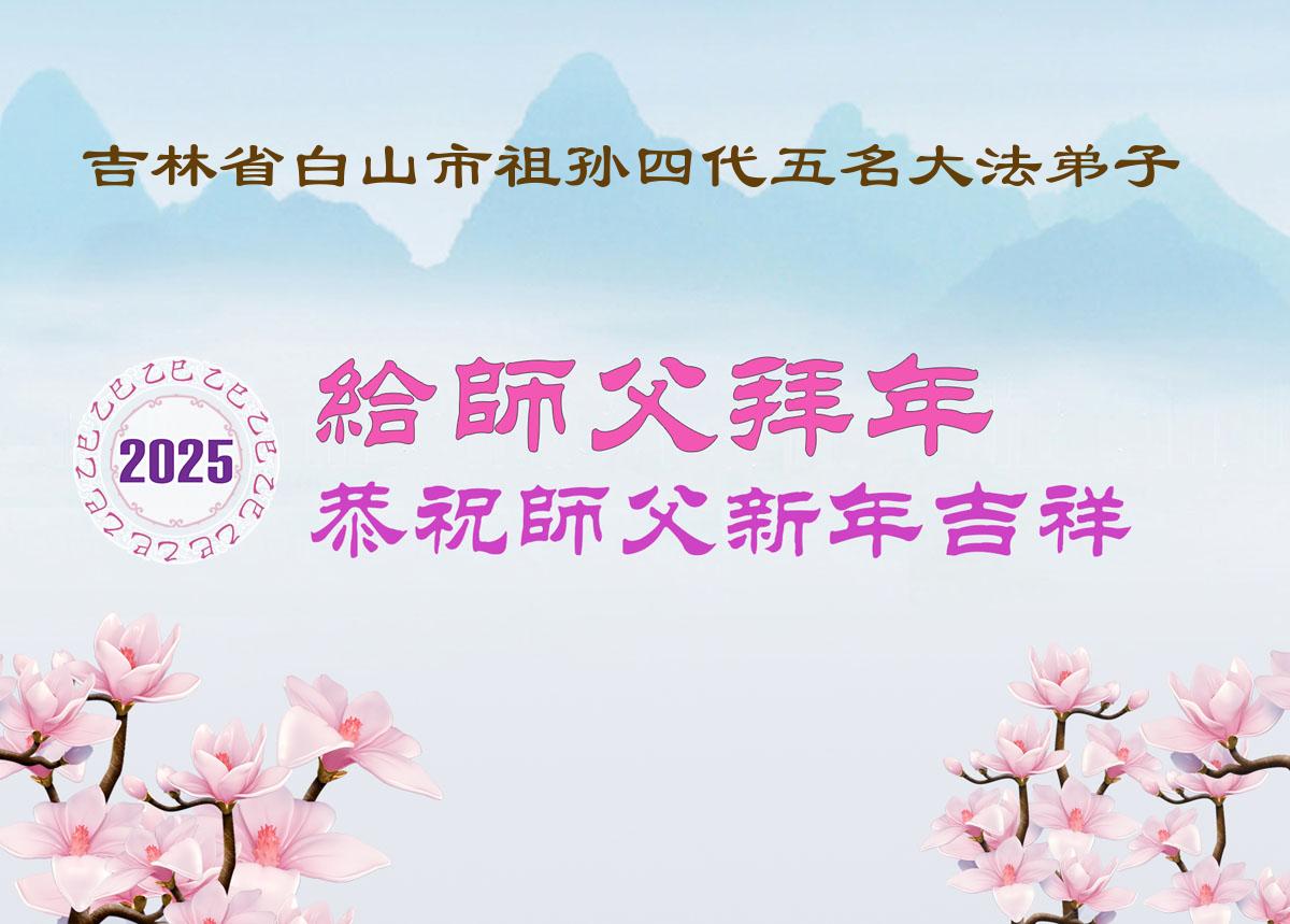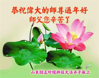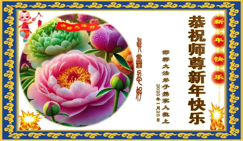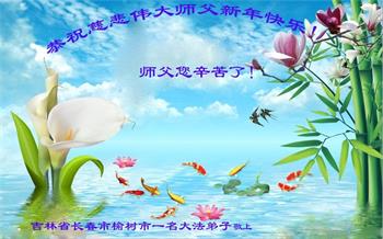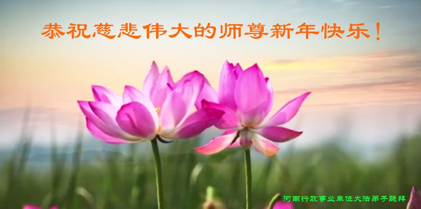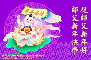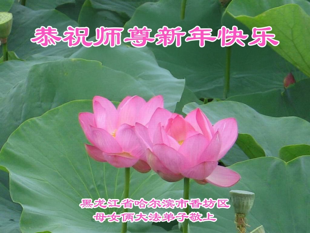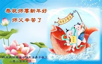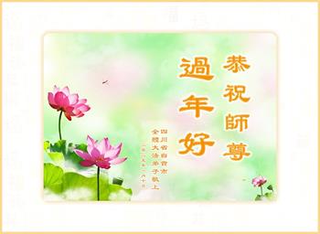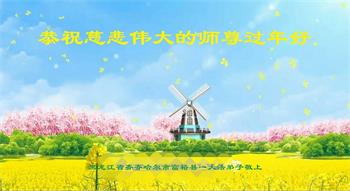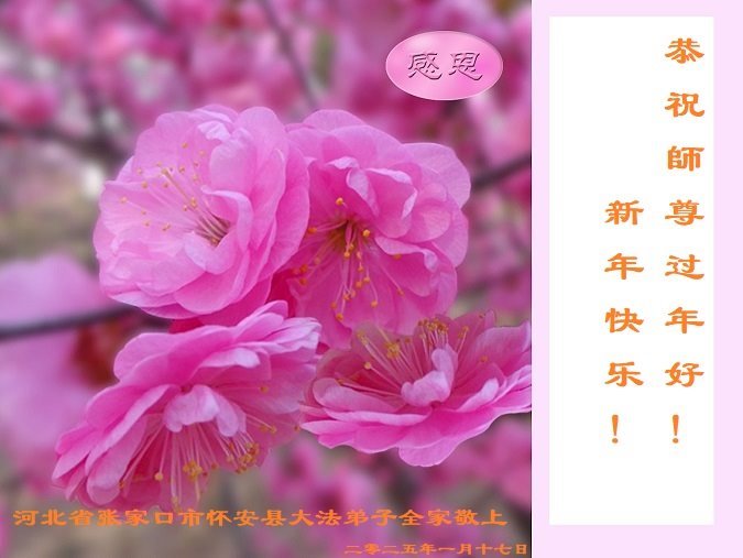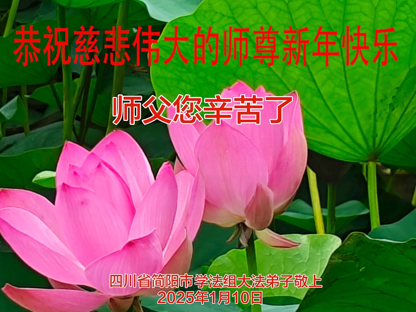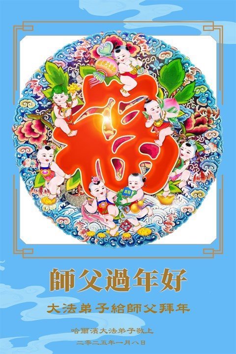 感恩师父的慈悲救度!感恩师父将我们从地狱中捞出洗净,引领我们走上一条返本归真之路。在新年到来之际,我们全家大法弟子及新学员(共6人)给慈悲伟大的师尊拜年:师父过年好!师父您辛苦了!