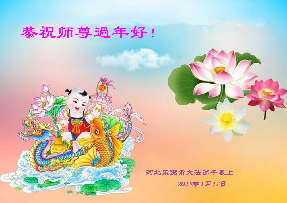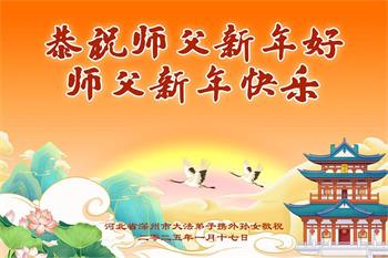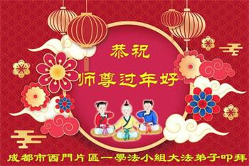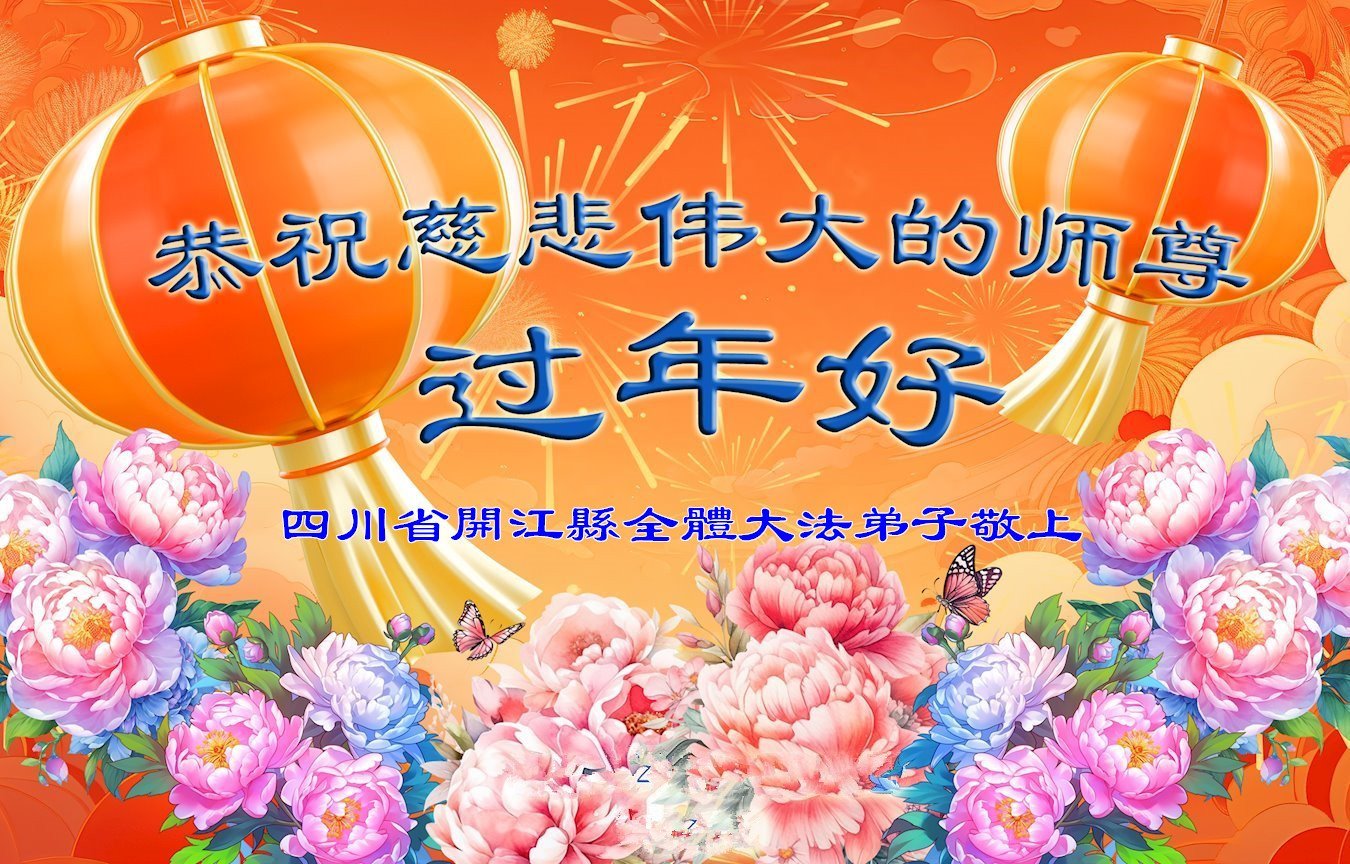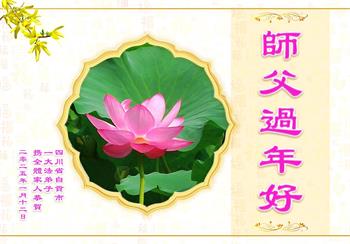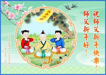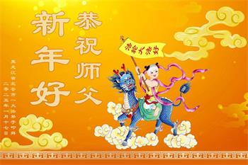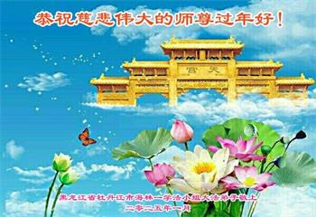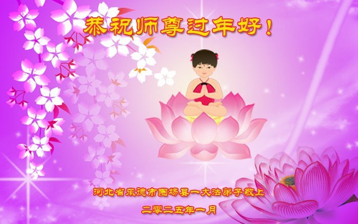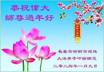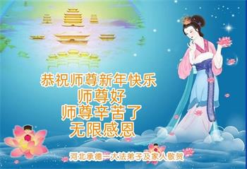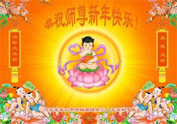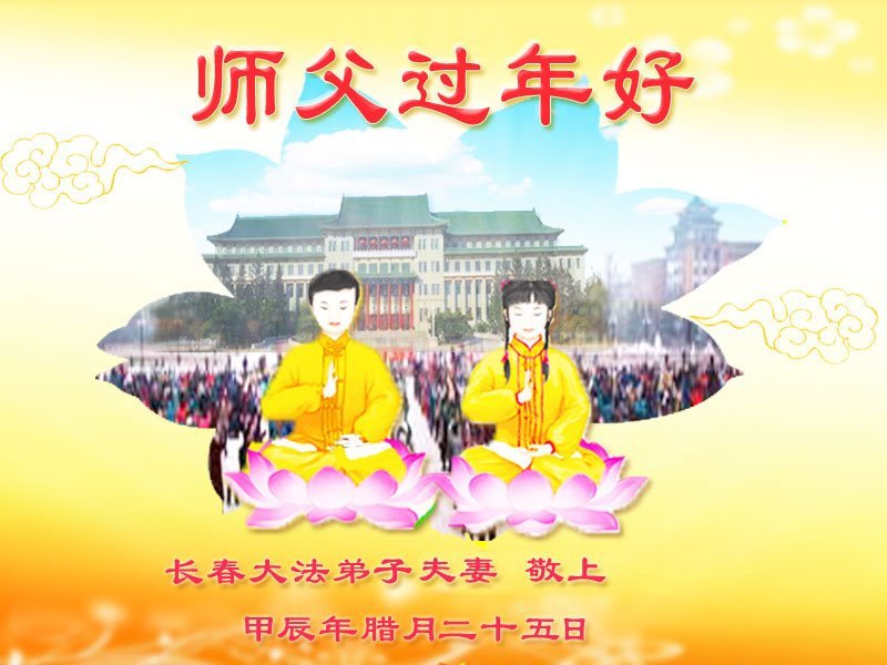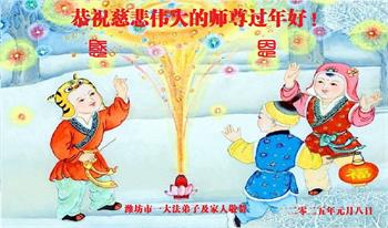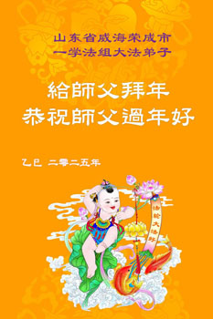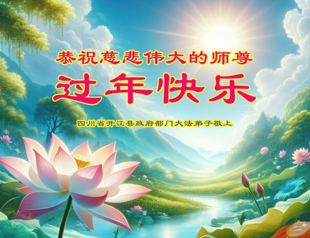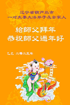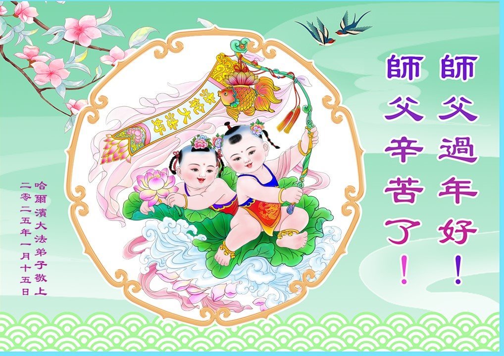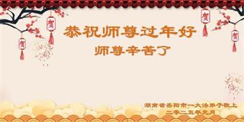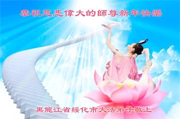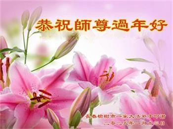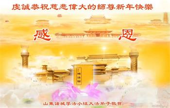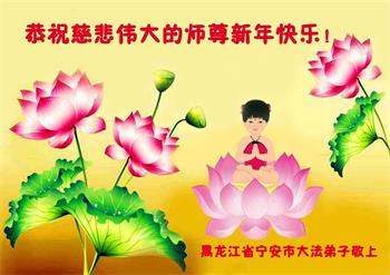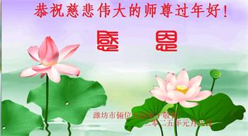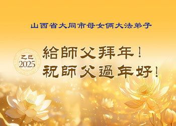 感恩师父的慈悲救度!感恩师父将我们从地狱中捞出洗净,引领我们走上一条返本归真之路。在新年到来之际,我们全家大法弟子及新学员(共6人)给慈悲伟大的师尊拜年:师父过年好!师父您辛苦了!