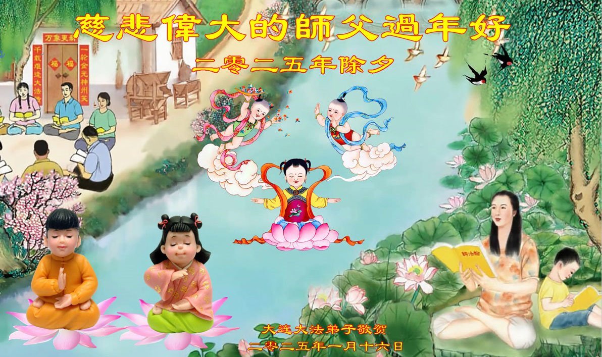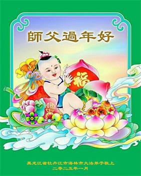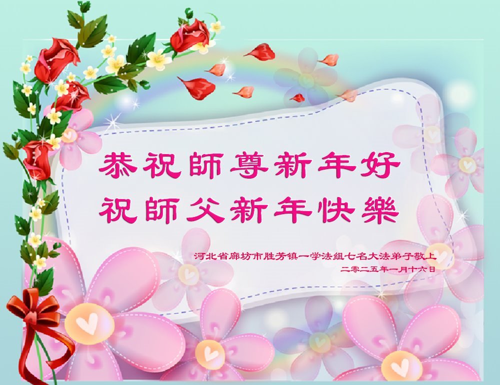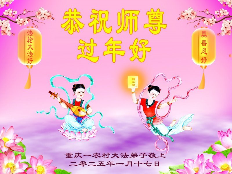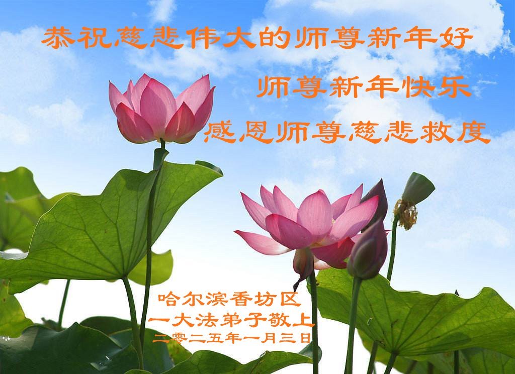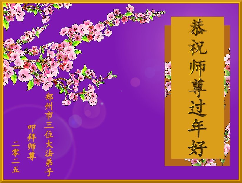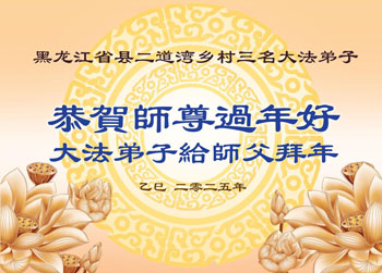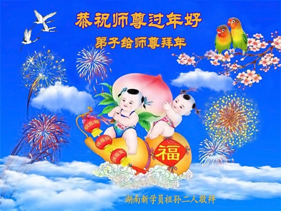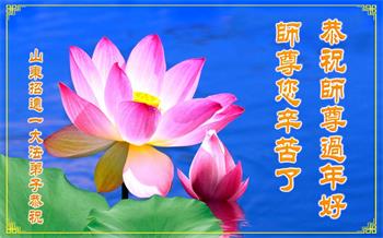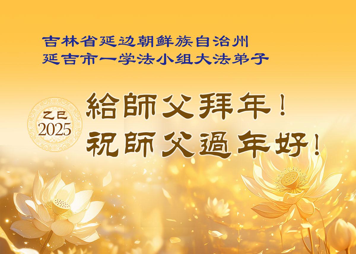 感恩师父的慈悲救度!感恩师父将我们从地狱中捞出洗净,引领我们走上一条返本归真之路。在新年到来之际,我们全家大法弟子及新学员(共6人)给慈悲伟大的师尊拜年:师父过年好!师父您辛苦了!