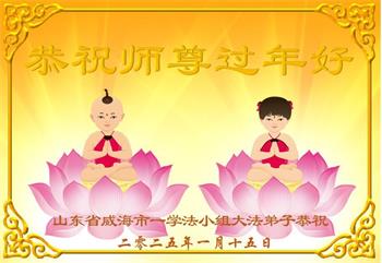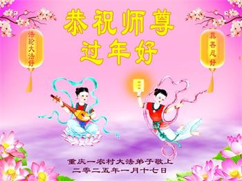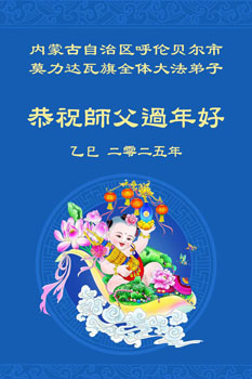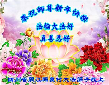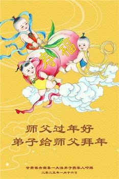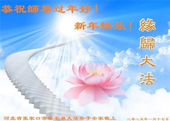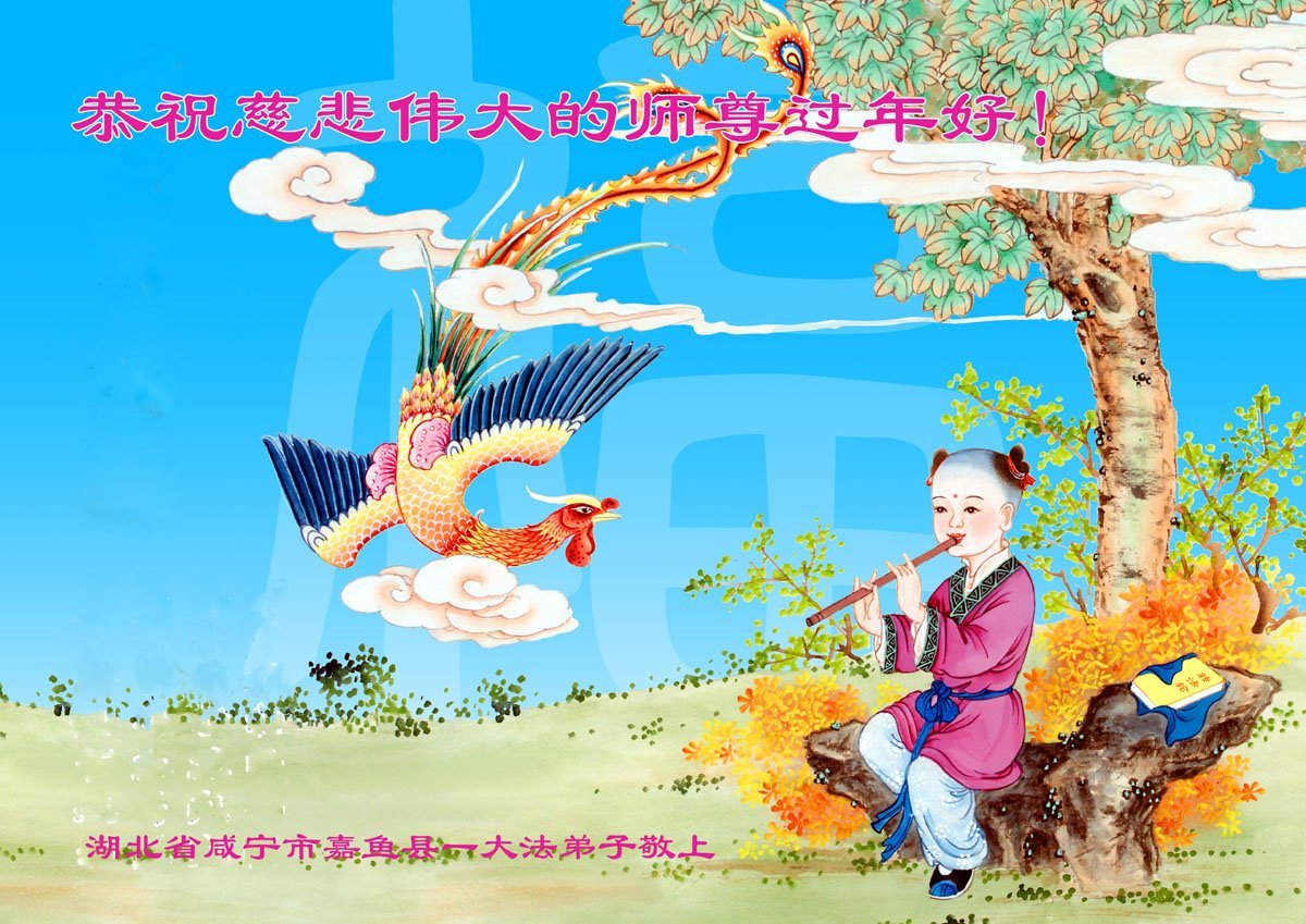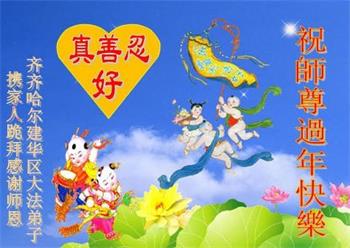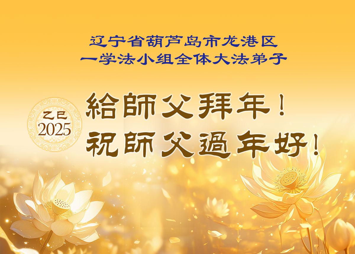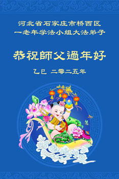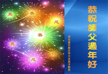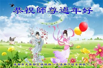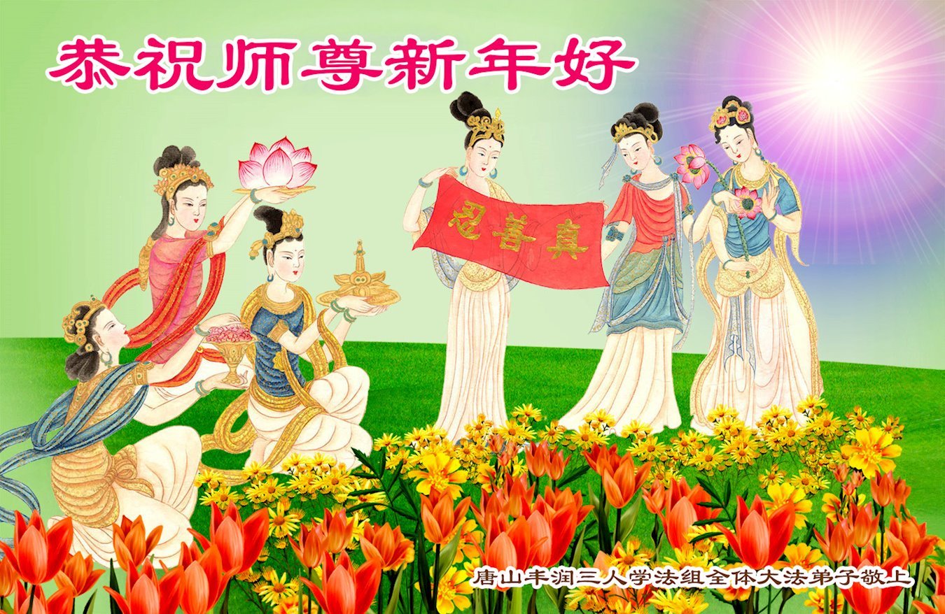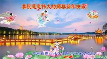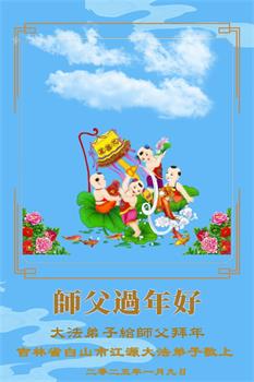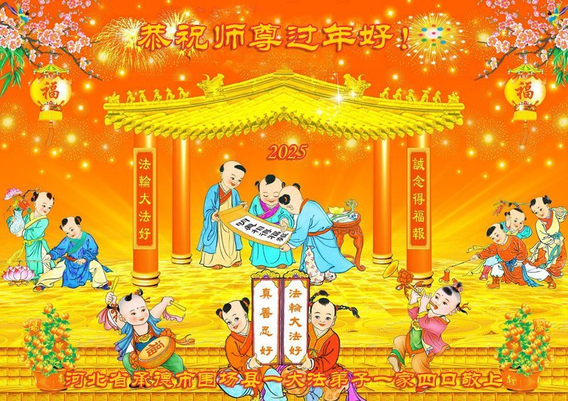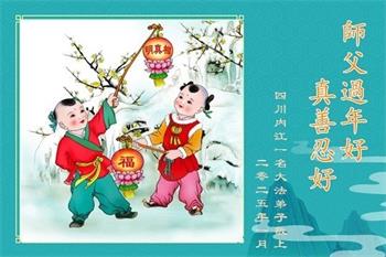 感恩师父的慈悲救度!感恩师父将我们从地狱中捞出洗净,引领我们走上一条返本归真之路。在新年到来之际,我们全家大法弟子及新学员(共6人)给慈悲伟大的师尊拜年:师父过年好!师父您辛苦了!