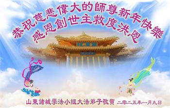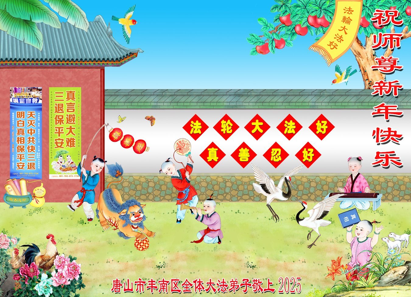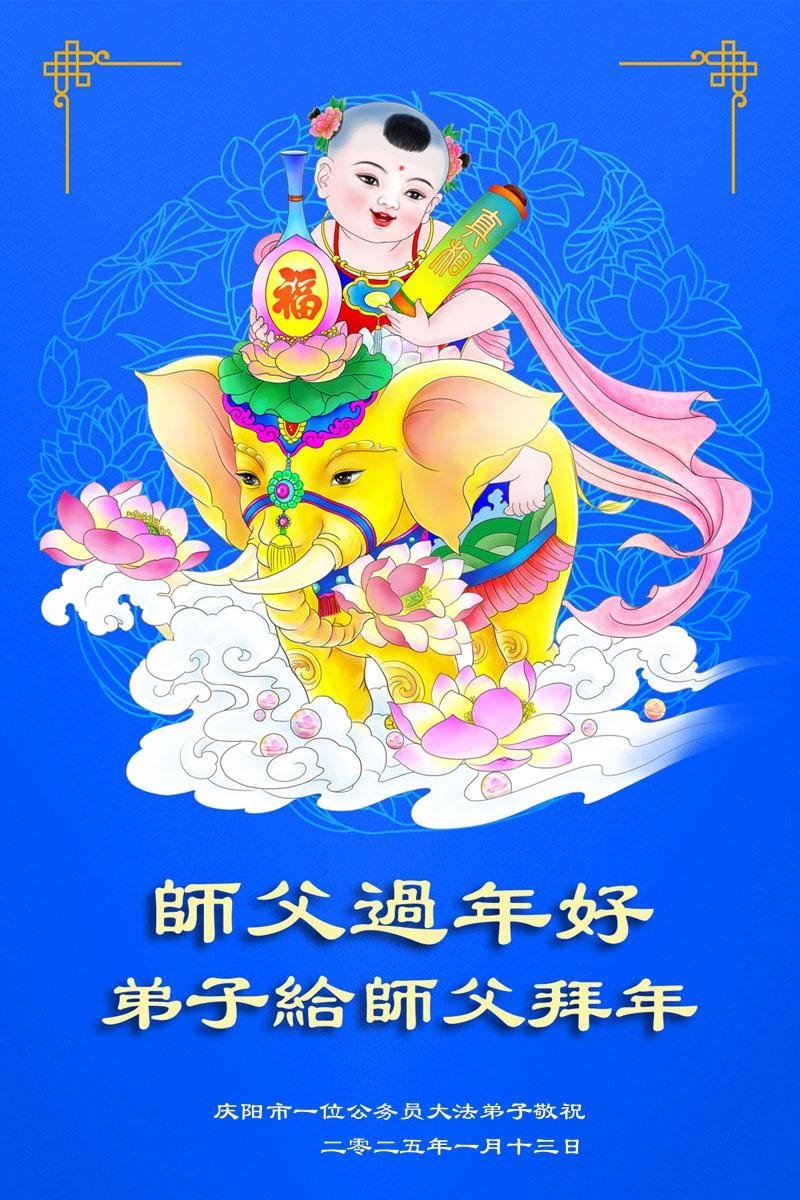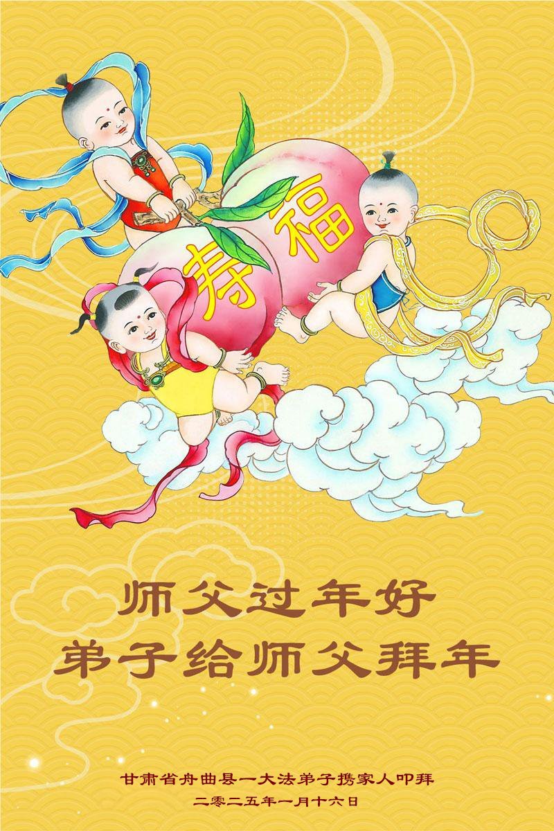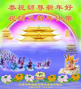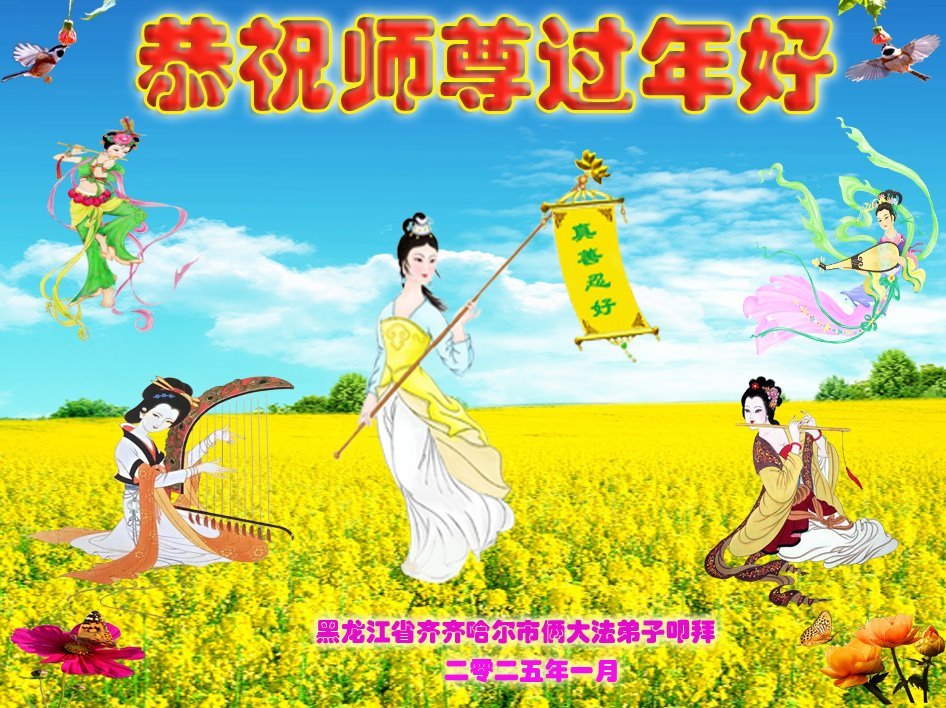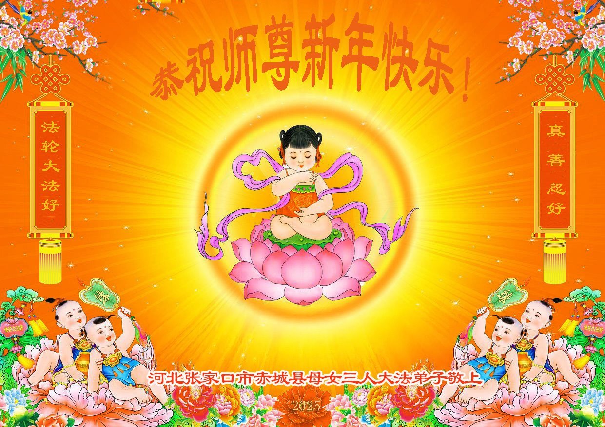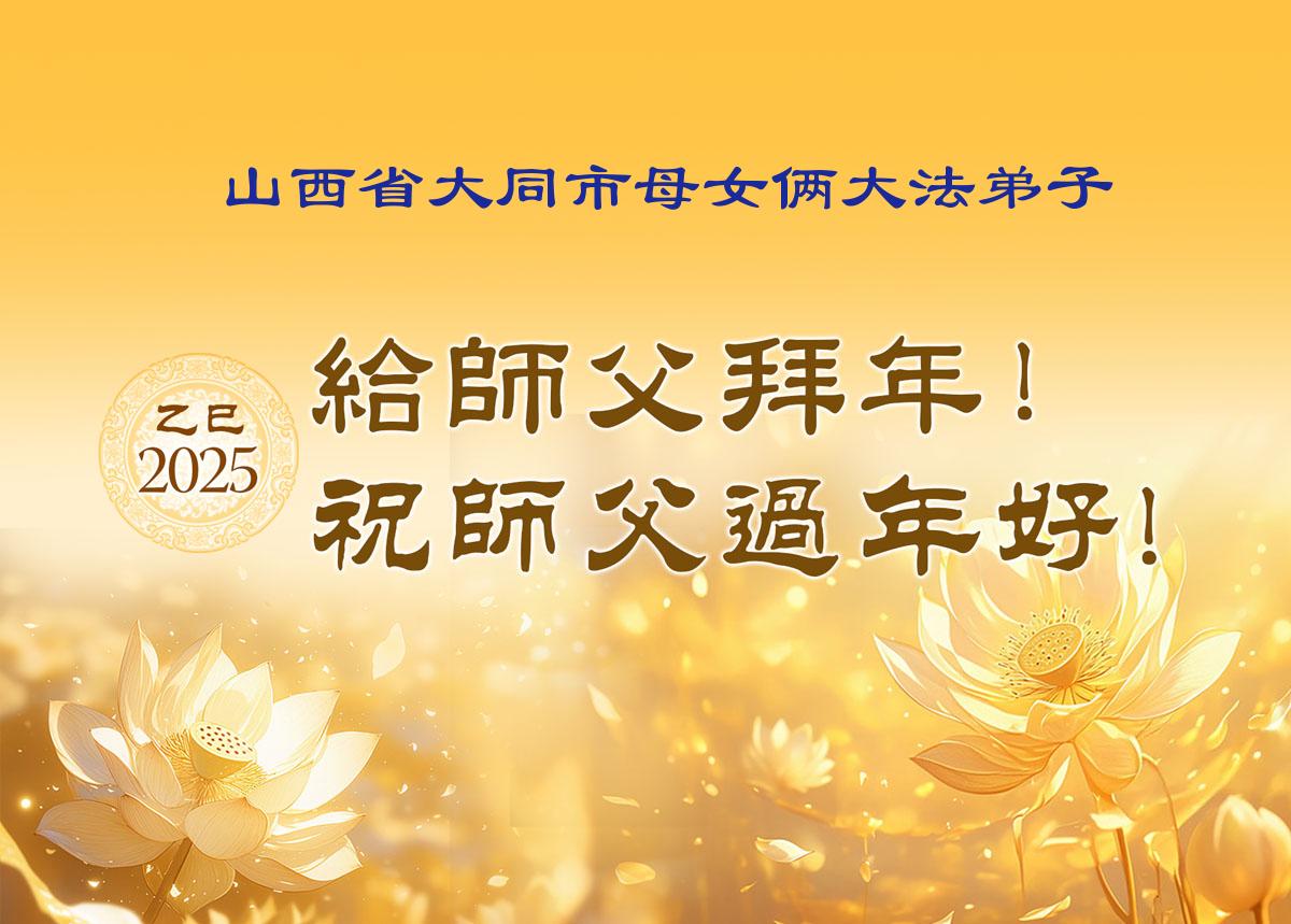 感恩师父的慈悲救度!感恩师父将我们从地狱中捞出洗净,引领我们走上一条返本归真之路。在新年到来之际,我们全家大法弟子及新学员(共6人)给慈悲伟大的师尊拜年:师父过年好!师父您辛苦了!