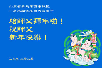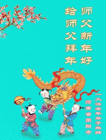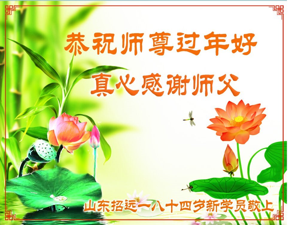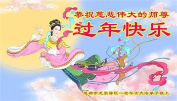 我今年八十四岁,是得法四年的新学员。我身上几种难治的病都好了。我这么大岁数了,师父为我清理身体、祛病,我真心感谢师父救命之恩!我们全家人祝师父过年好!