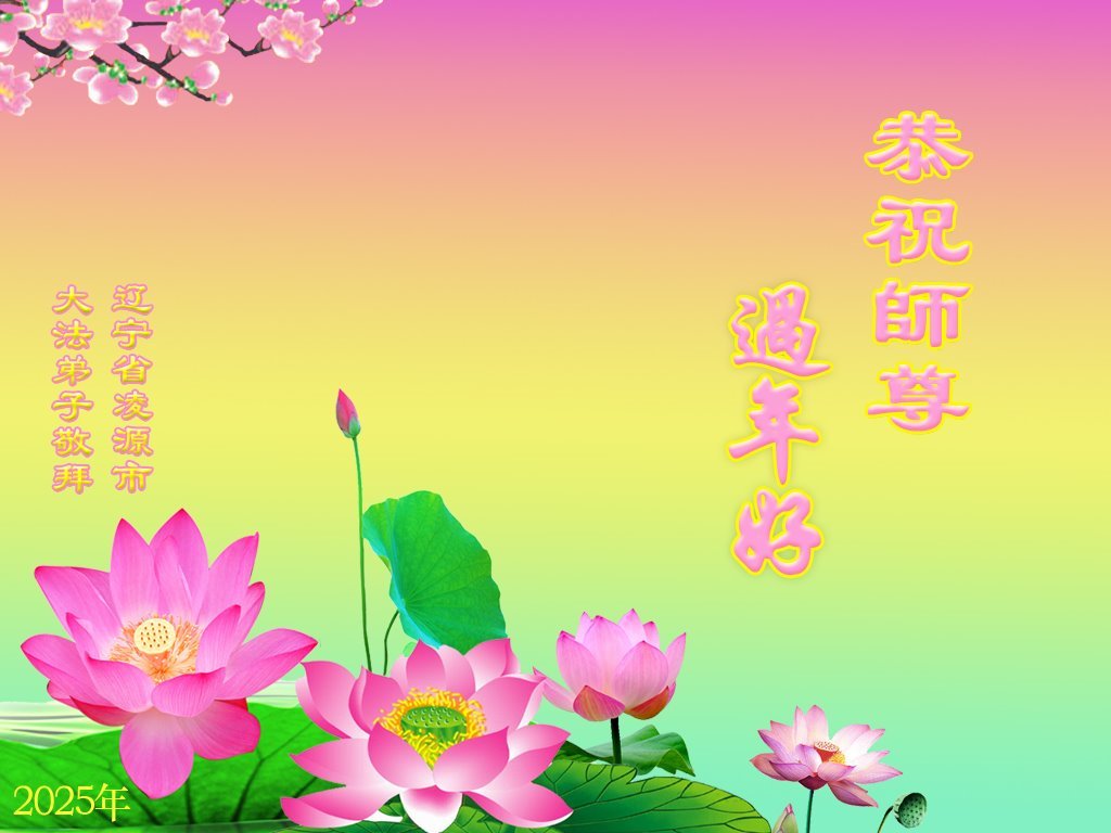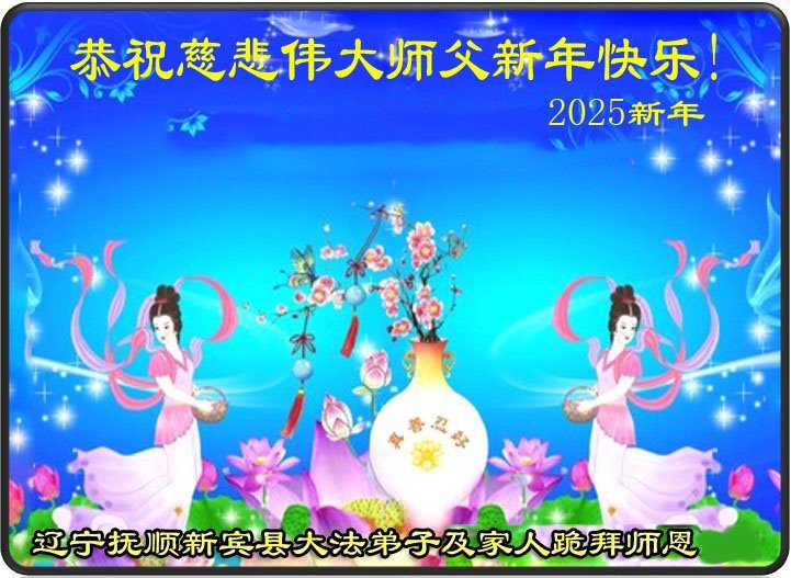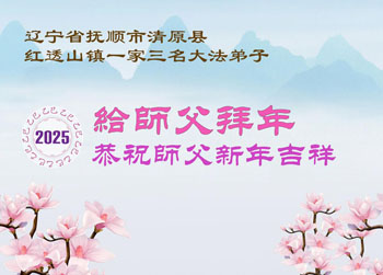 我是辽宁省凌源市农民,也是一名新学员,我带领我全家人给师父送上新年祝福,恭祝慈悲伟大的师父新年快乐!