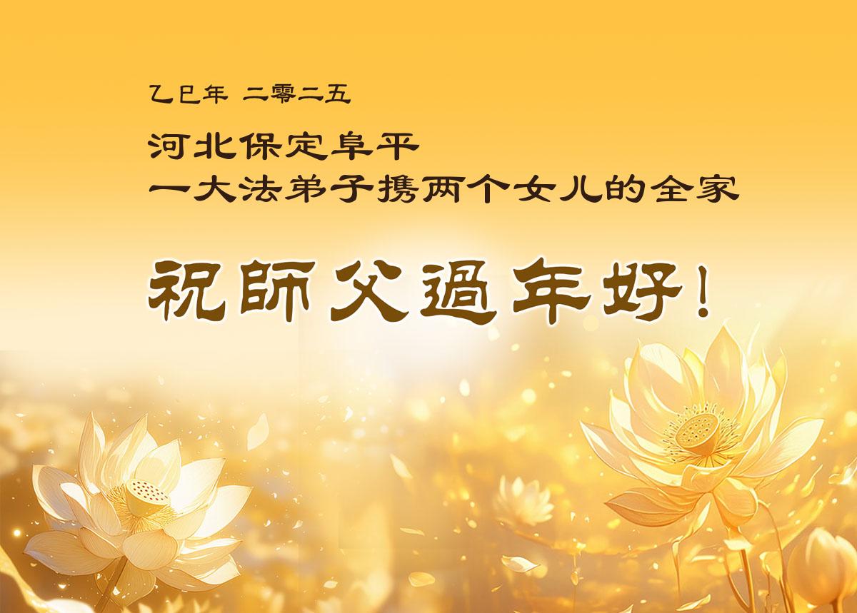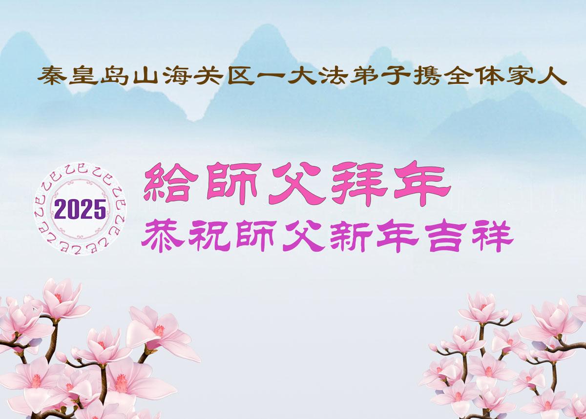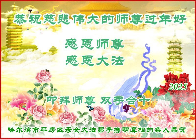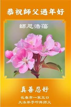 弟子全家人感谢师父的慈悲救度和时时看护!恭祝师尊新年好!借此机会表达弟子对师父您的感恩,感恩师父您为弟子的无尽承受,感恩师父您给了弟子再生的机会。在修炼中,在过关过难中,也真正感受到了您的慈悲保护和您给予弟子的一切,弟子倾尽所有也无以回报,只有在师父您给铺就的这条修炼路上,勇猛精進,多学法,多救人,兑现誓约,跟师父您回家。弟子全家跪拜师尊!感恩师尊 !