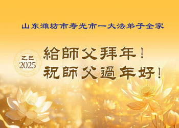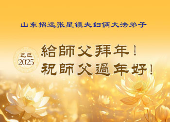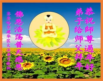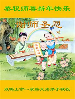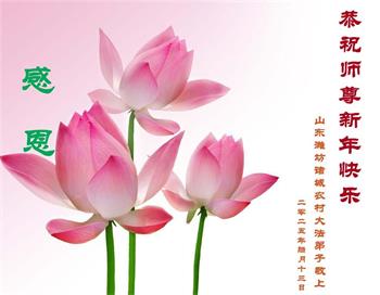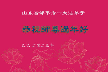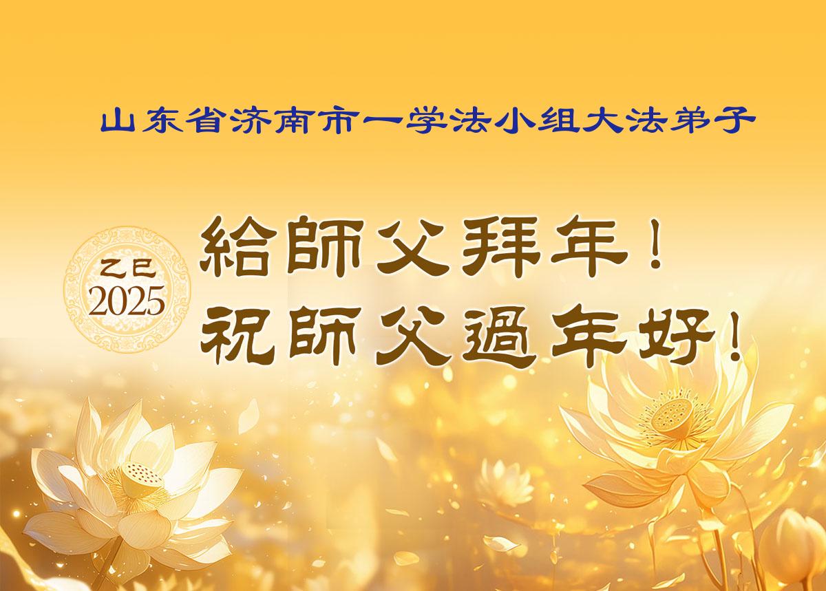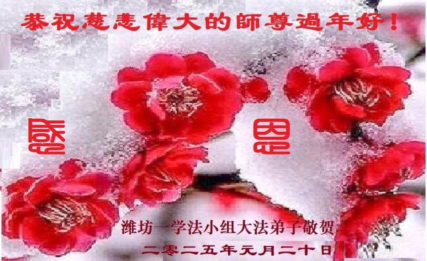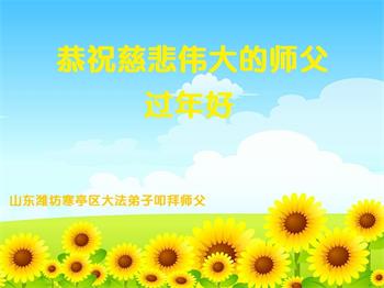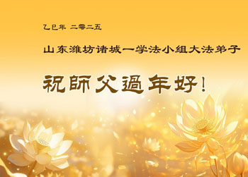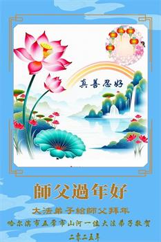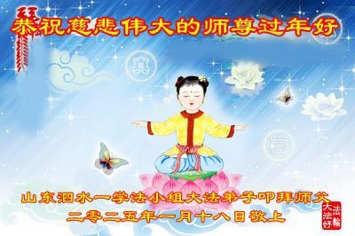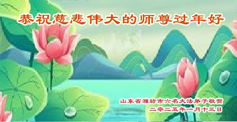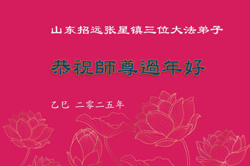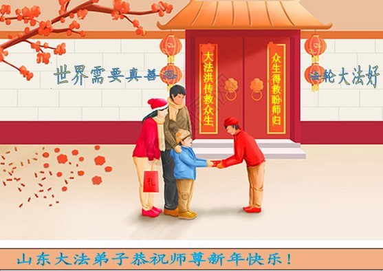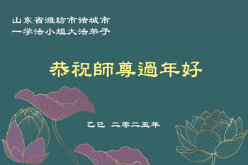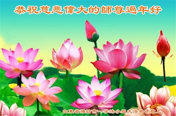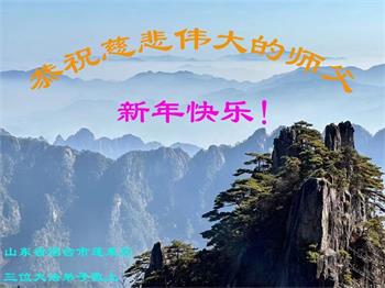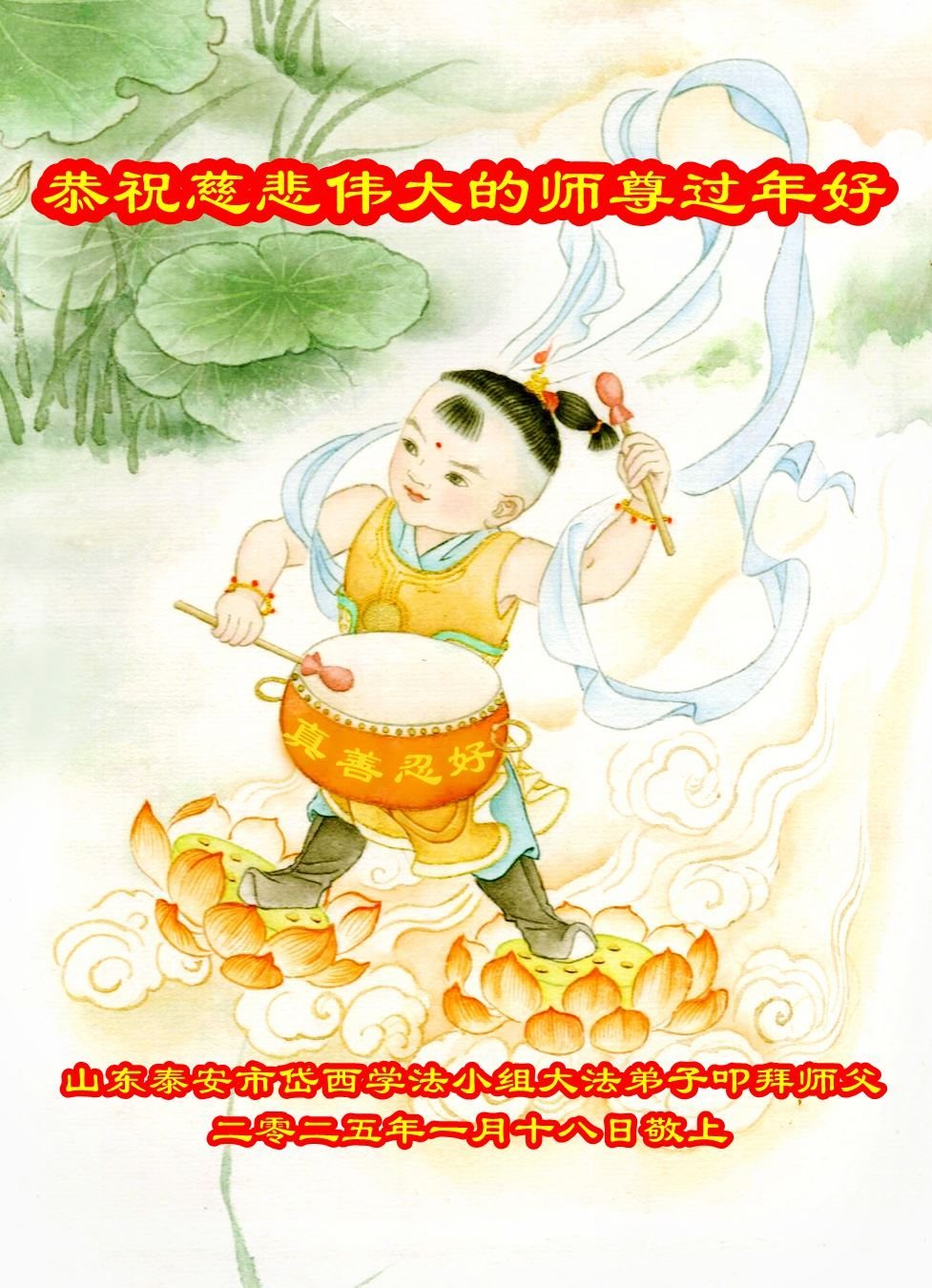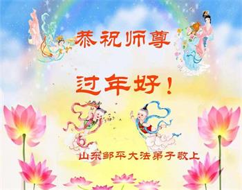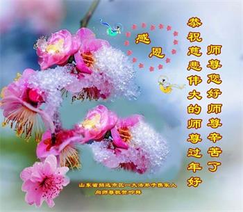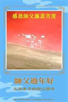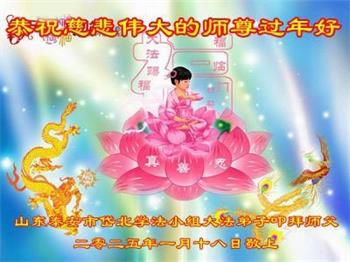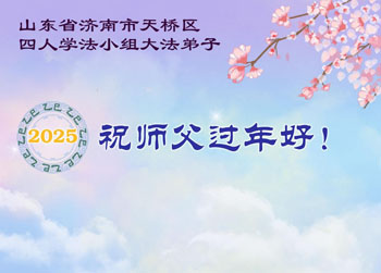 在中国新年来临之际,山东省济南市大法弟子给师尊拜年啦!恭祝师尊新年快乐!师尊新年好!法难中,每个大法弟子都在其中,这不是邪恶逞恶的地方,弟子愿倾尽生命之所有同化大法,做好三件事,不辜负师尊慈悲苦度。