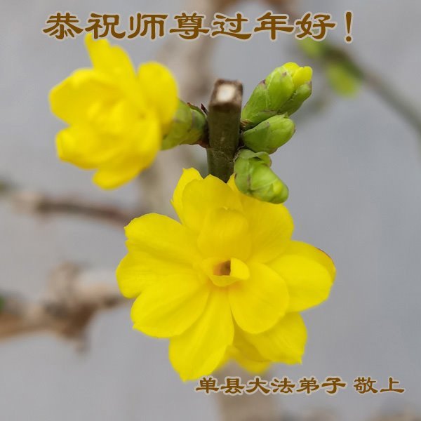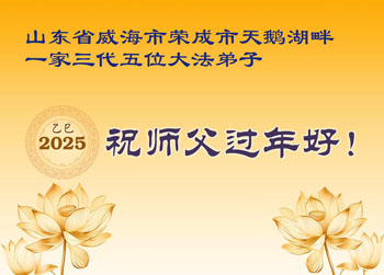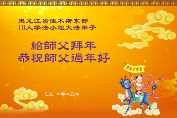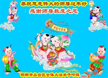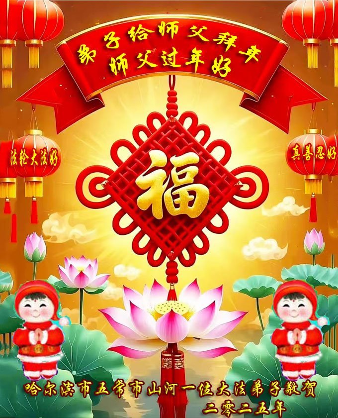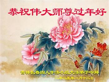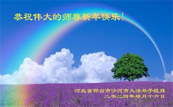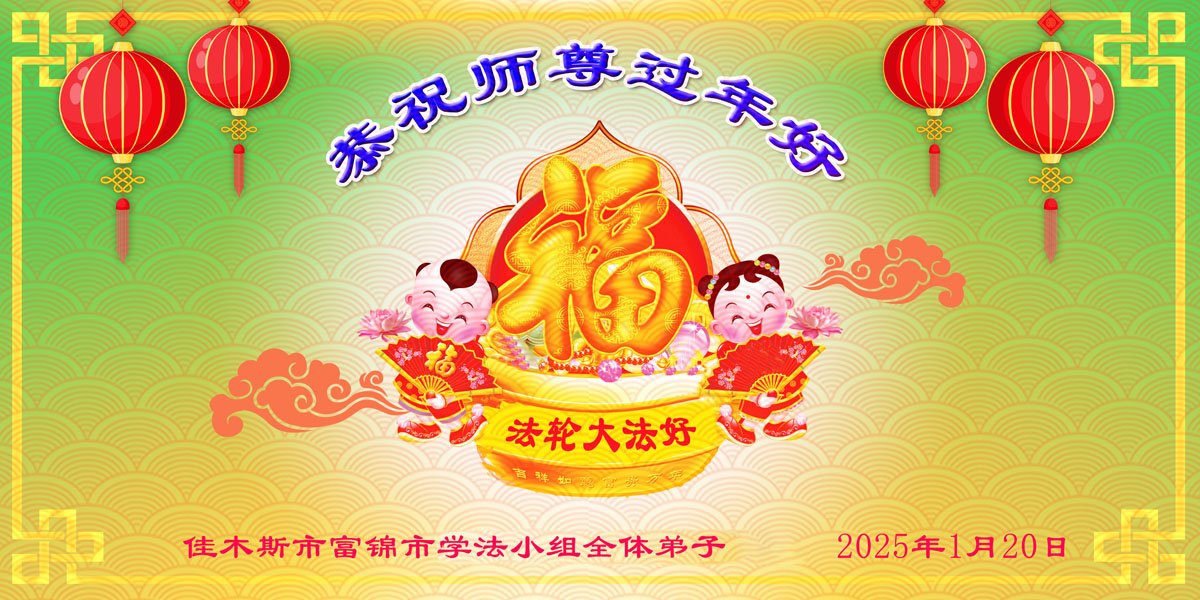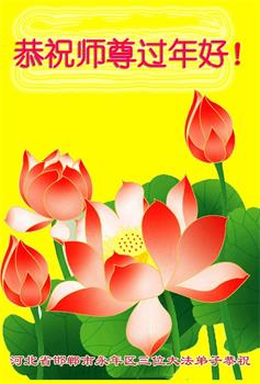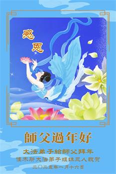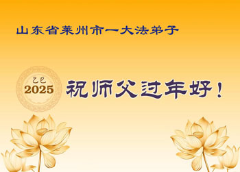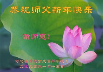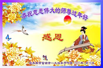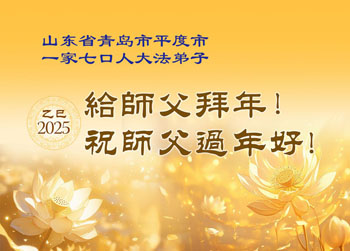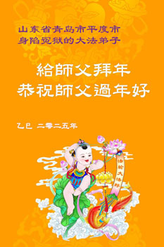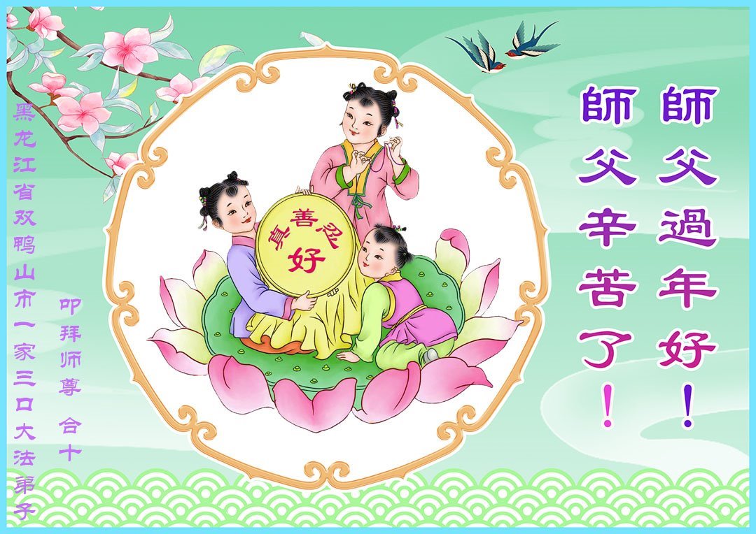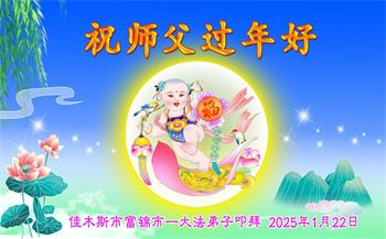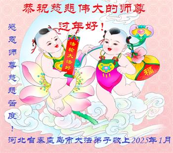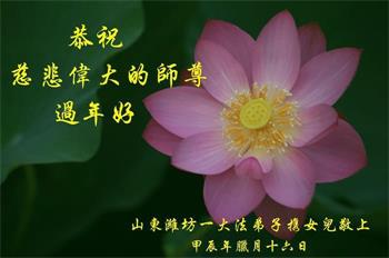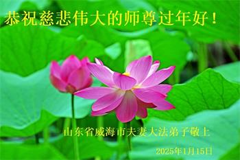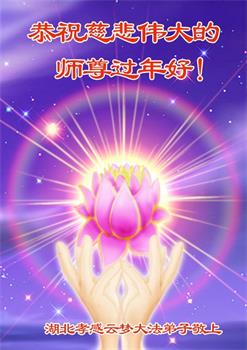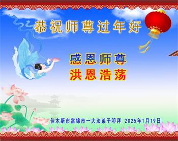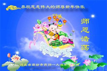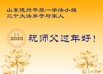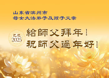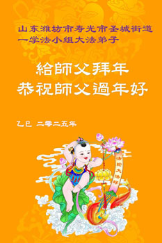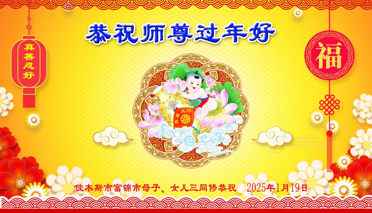 在中国新年来临之际,山东省济南市大法弟子给师尊拜年啦!恭祝师尊新年快乐!师尊新年好!法难中,每个大法弟子都在其中,这不是邪恶逞恶的地方,弟子愿倾尽生命之所有同化大法,做好三件事,不辜负师尊慈悲苦度。
