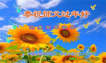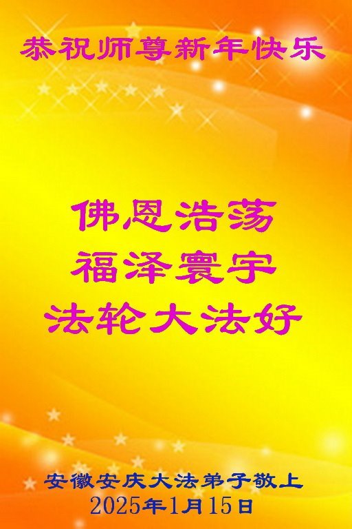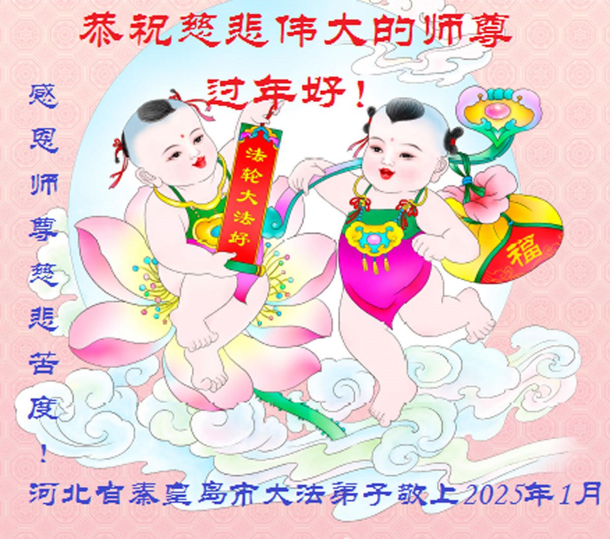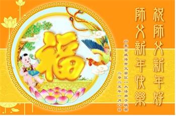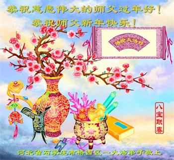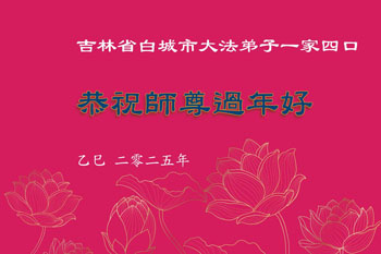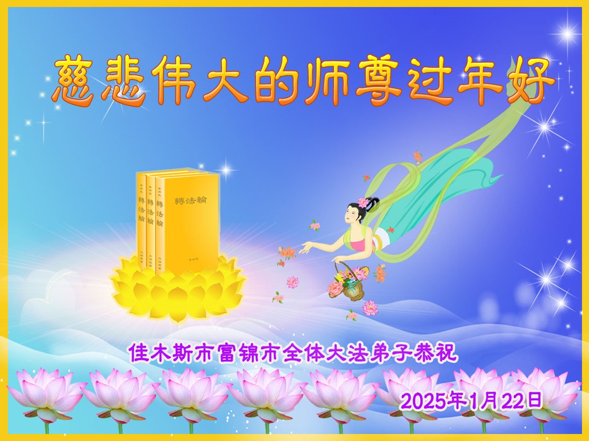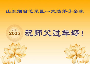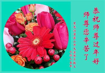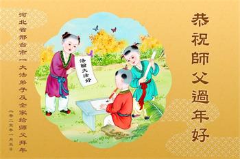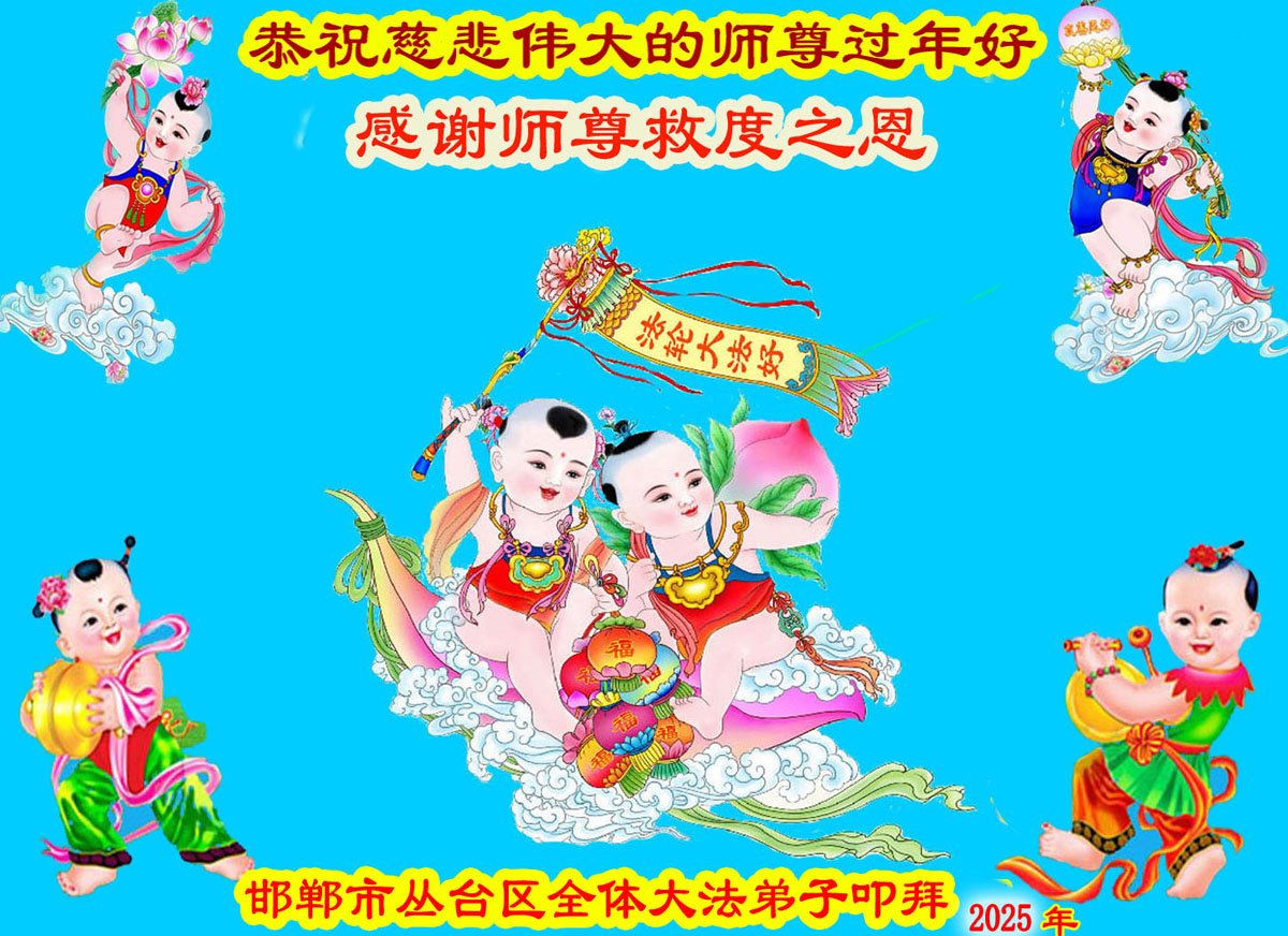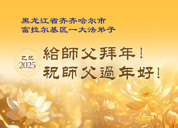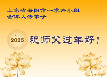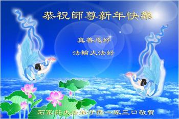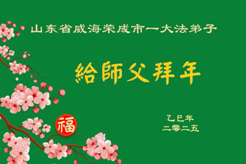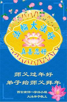 在中国新年来临之际,山东省济南市大法弟子给师尊拜年啦!恭祝师尊新年快乐!师尊新年好!法难中,每个大法弟子都在其中,这不是邪恶逞恶的地方,弟子愿倾尽生命之所有同化大法,做好三件事,不辜负师尊慈悲苦度。