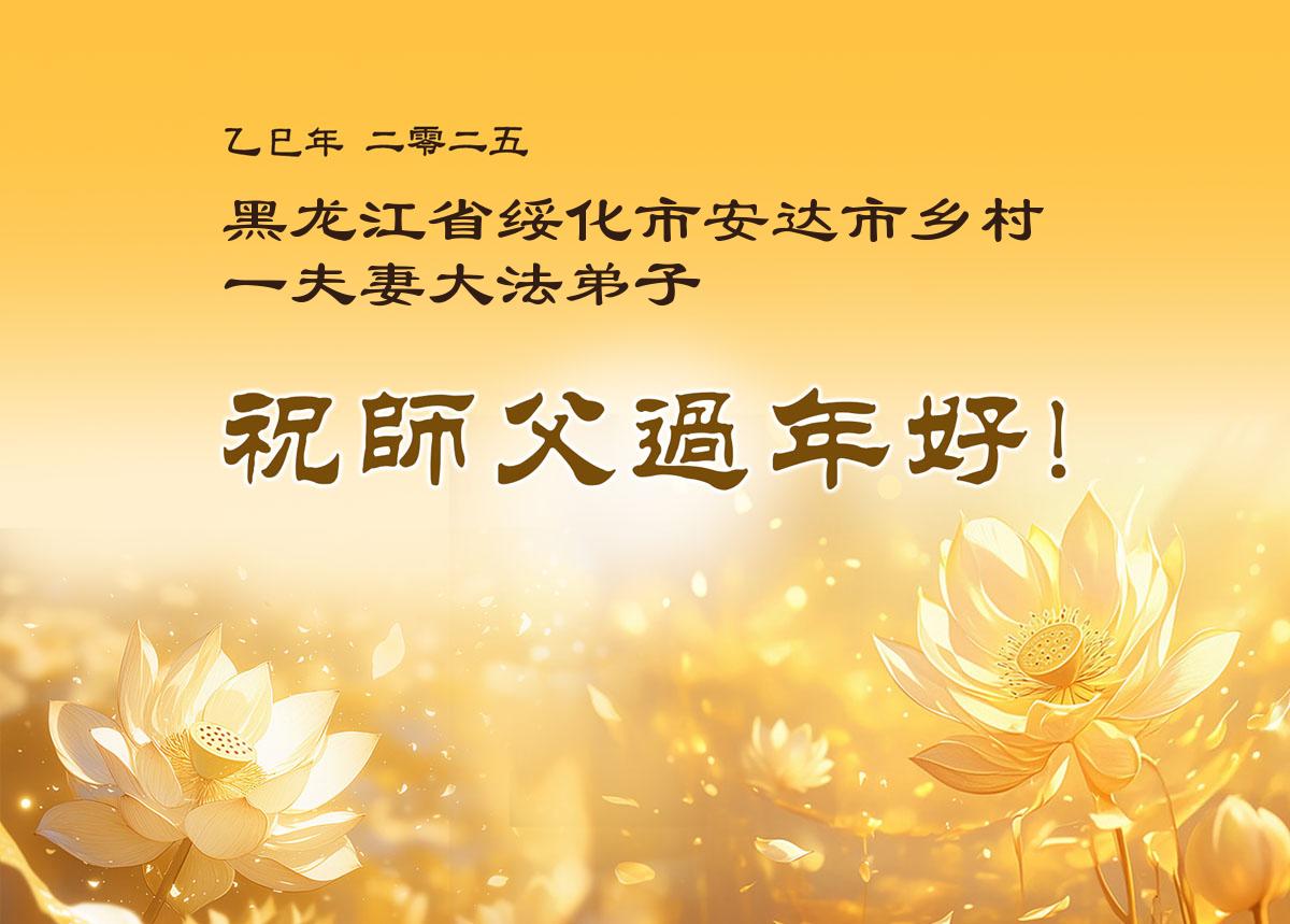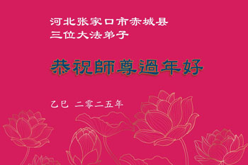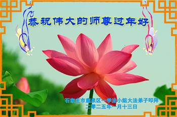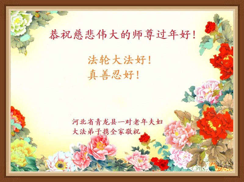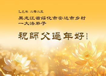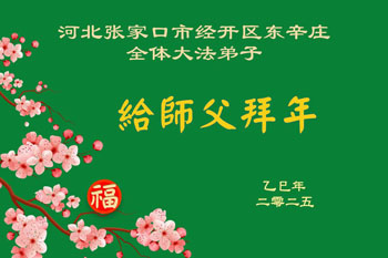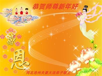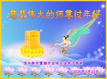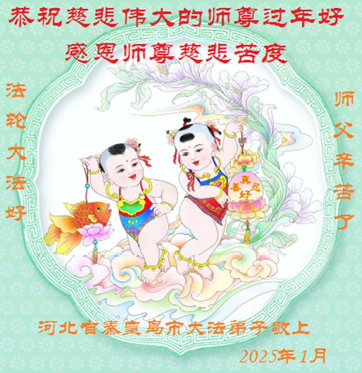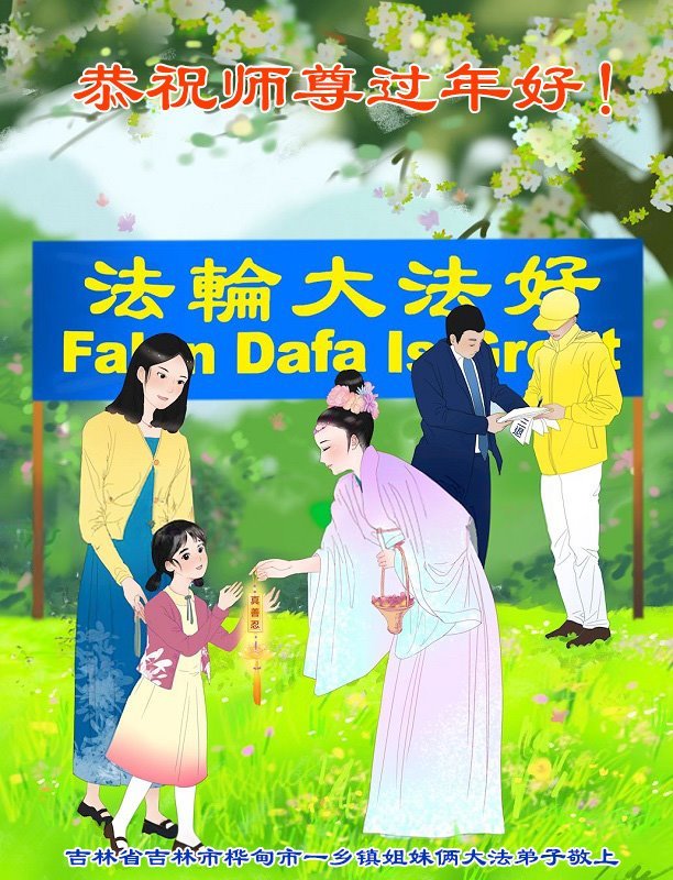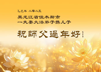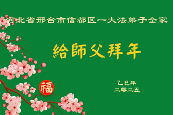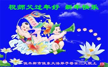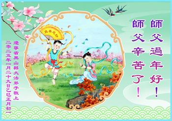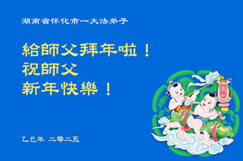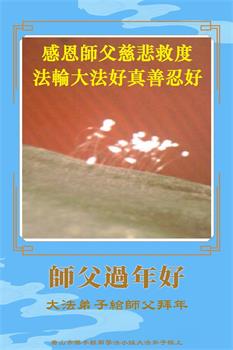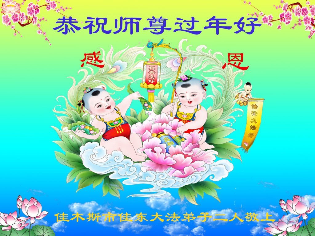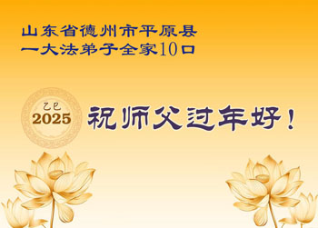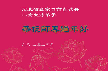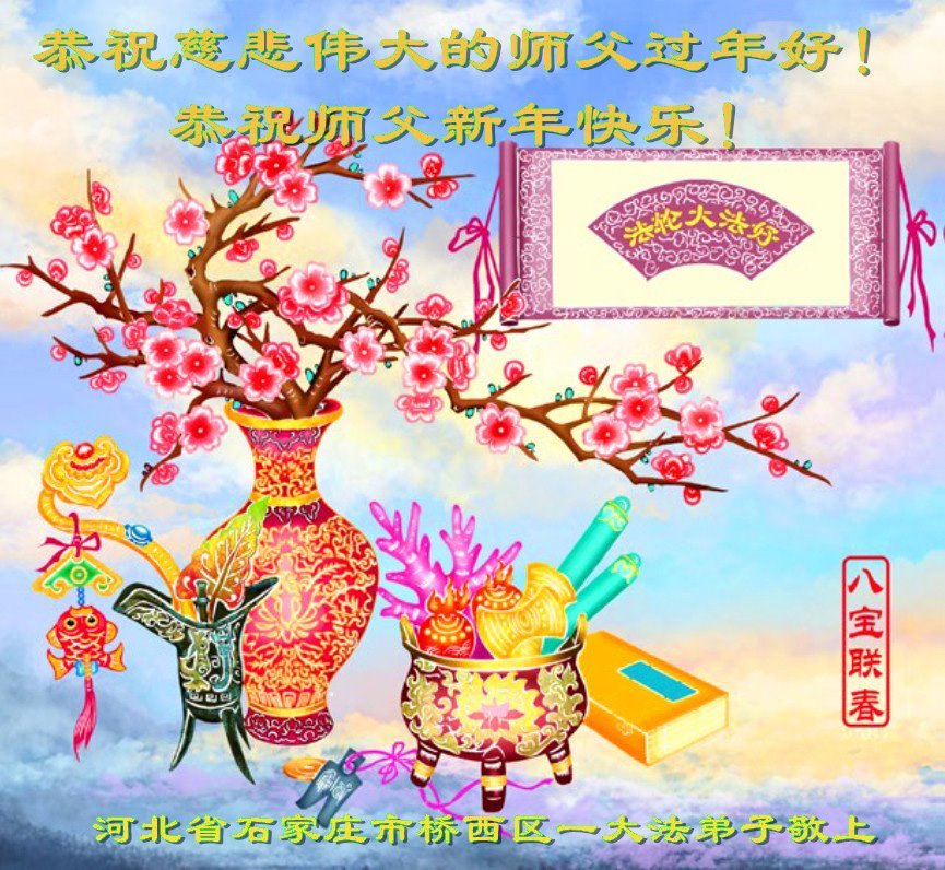 在中国新年来临之际,山东省济南市大法弟子给师尊拜年啦!恭祝师尊新年快乐!师尊新年好!法难中,每个大法弟子都在其中,这不是邪恶逞恶的地方,弟子愿倾尽生命之所有同化大法,做好三件事,不辜负师尊慈悲苦度。