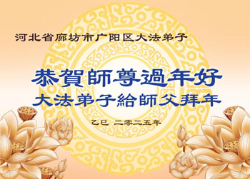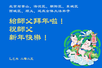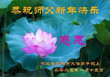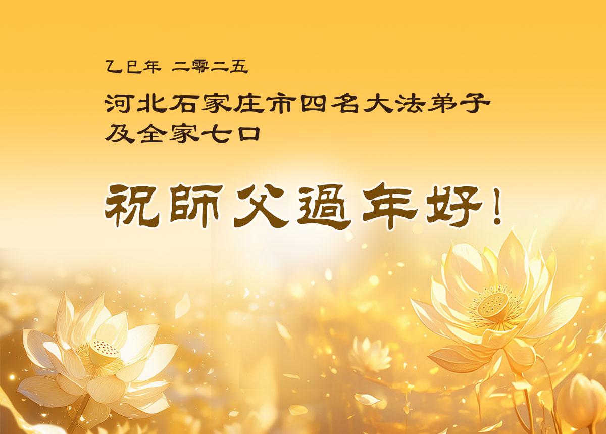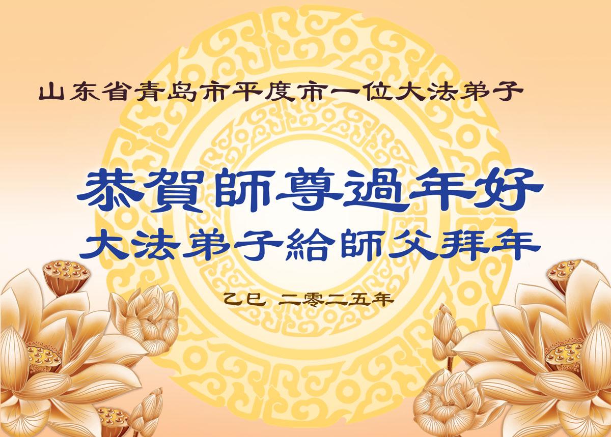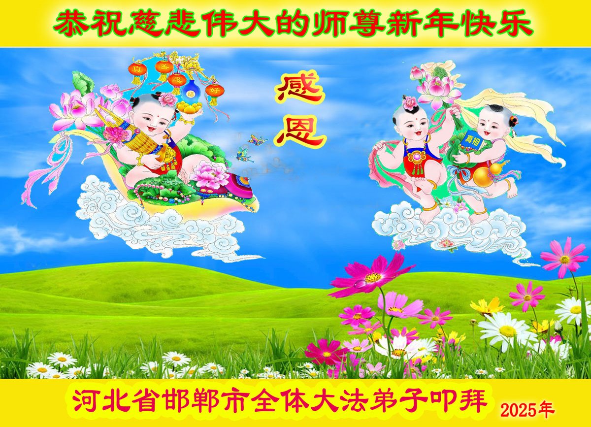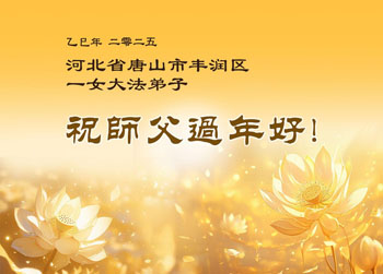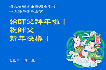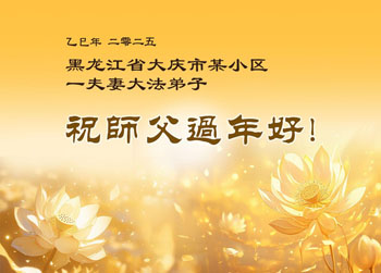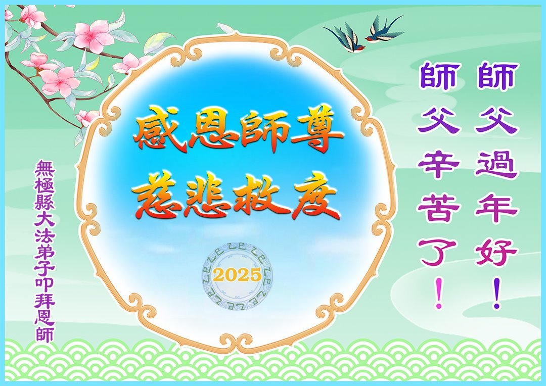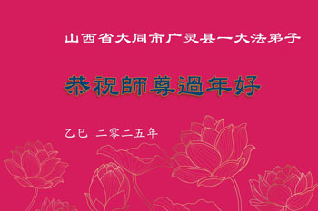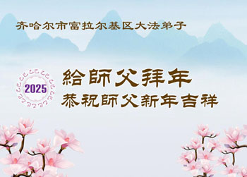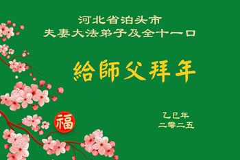 在中国新年来临之际,山东省济南市大法弟子给师尊拜年啦!恭祝师尊新年快乐!师尊新年好!法难中,每个大法弟子都在其中,这不是邪恶逞恶的地方,弟子愿倾尽生命之所有同化大法,做好三件事,不辜负师尊慈悲苦度。