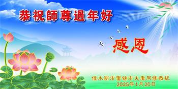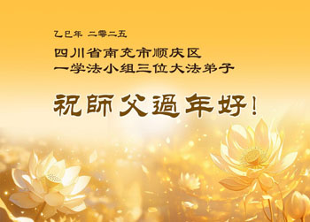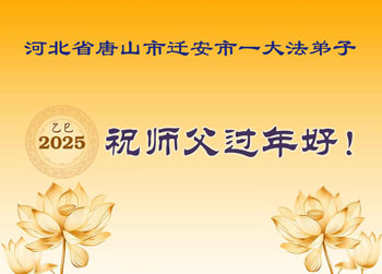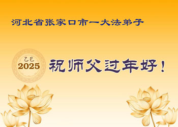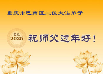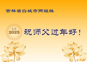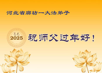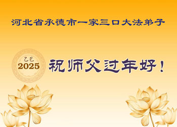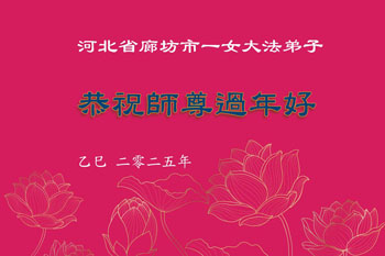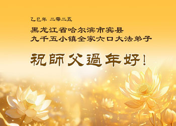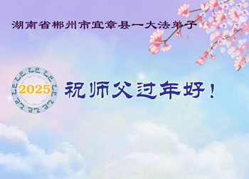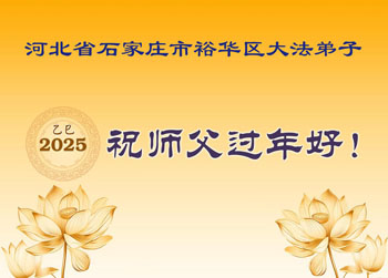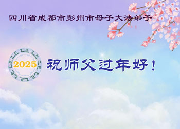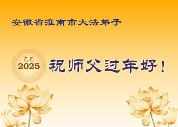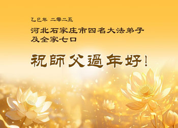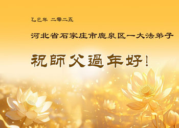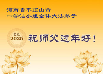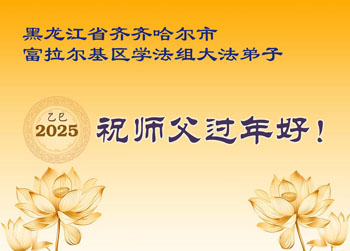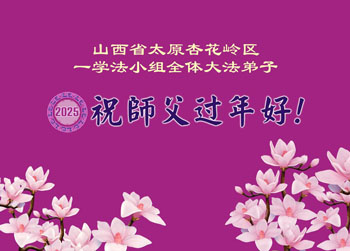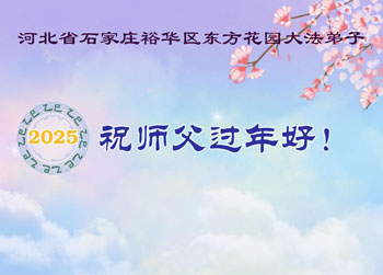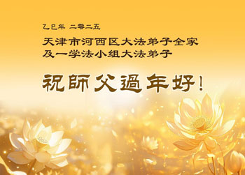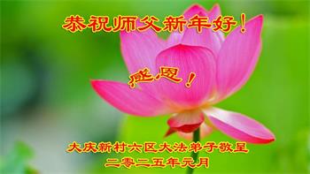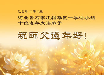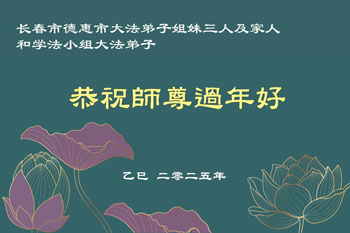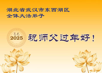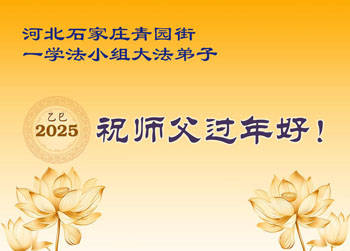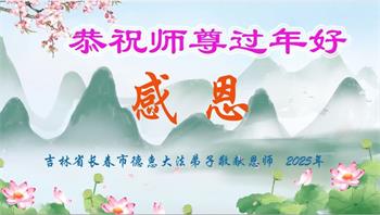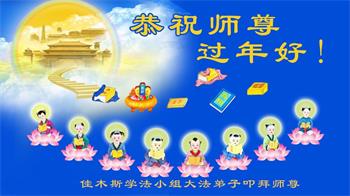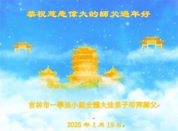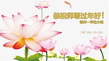 我们原来是一个大组学法的学员,后来分成多个学法小组,分布在多个城区,虽然目前没有集中在一起,但是我们的心一直是向往回归的路,决心跟师父回到美好的家园。在此我们所有学法小组的学员向师父表达我们的心声:师父您好,师父您辛苦了,师父您过年好!我们大家要继续学好法,做好三件事,努力救人,兑现誓约,不辜负师尊的慈悲苦度!叩谢师恩!