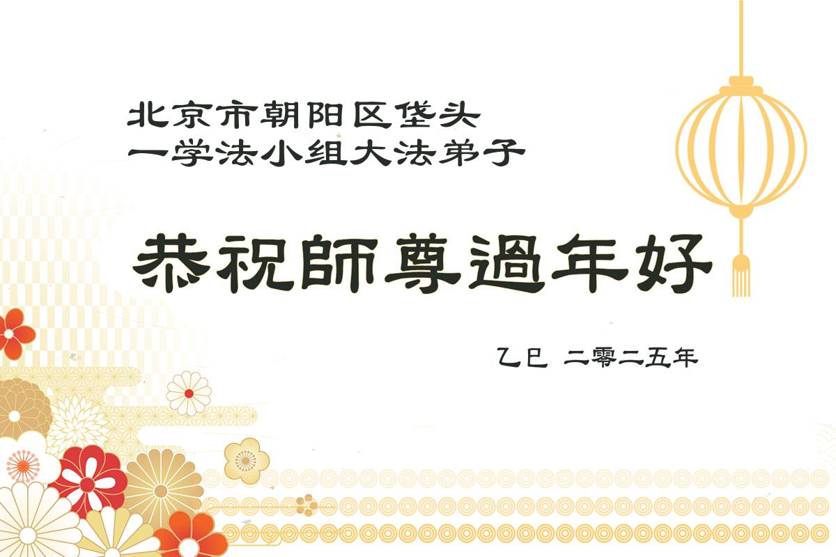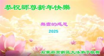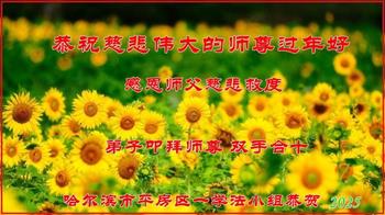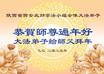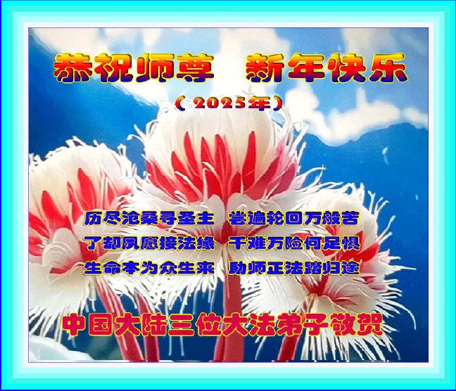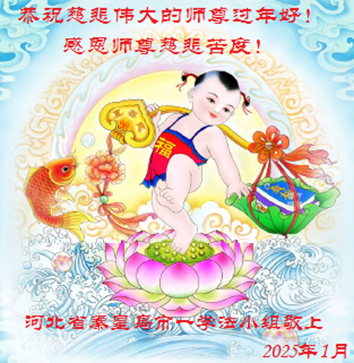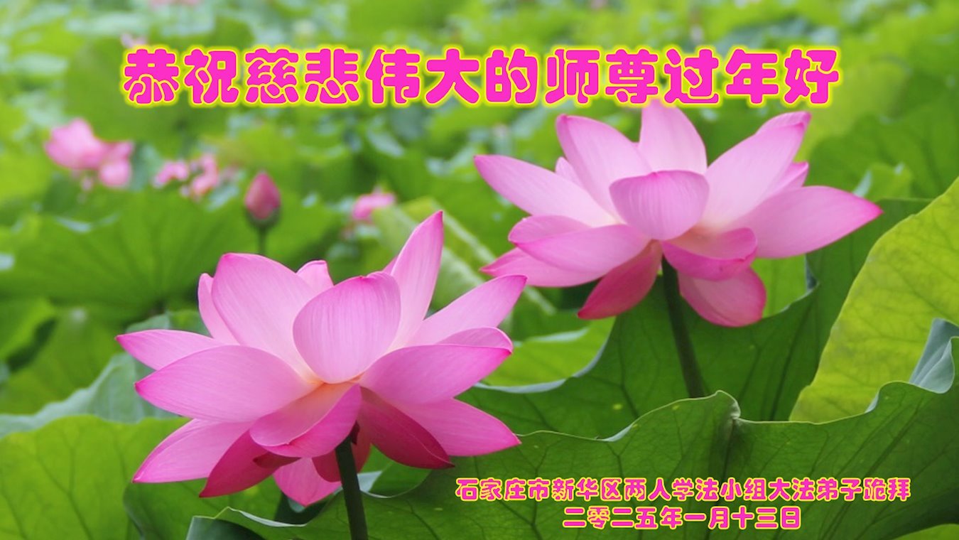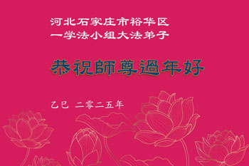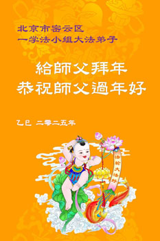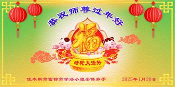 弟子们也代表学法小组大法弟子给师尊拜年,恭祝师尊新年好!弟子们一定努力修好自己,在生活中做到无怨无恨,以苦为乐,讲好真相,多救人,跟师尊回家!