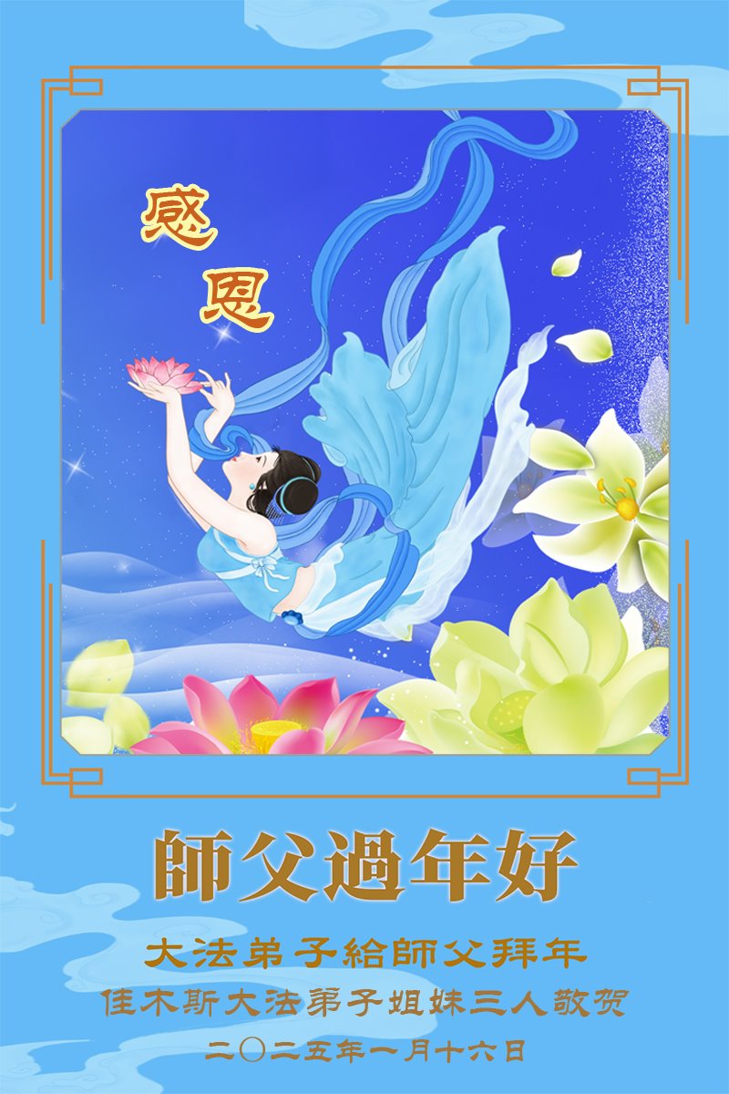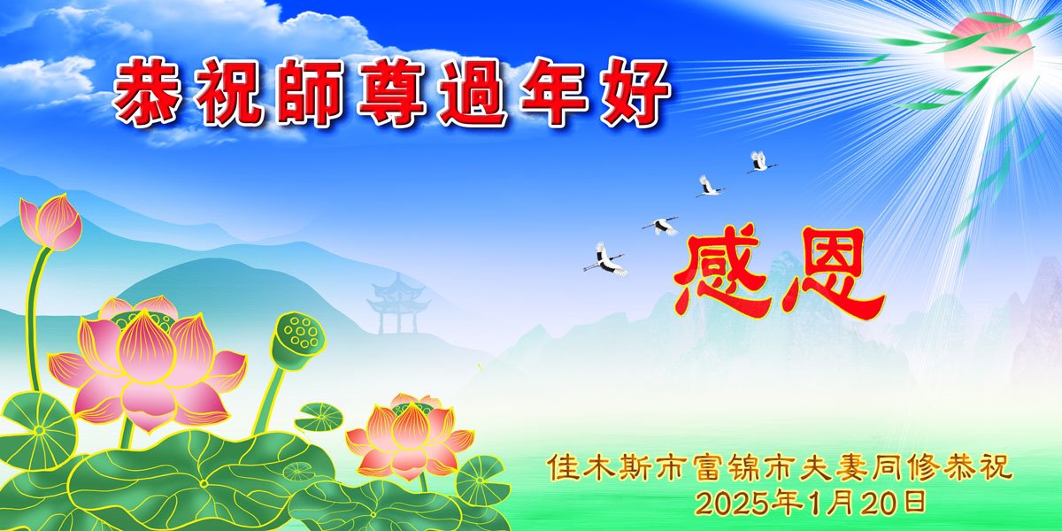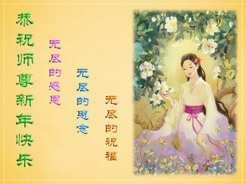 又到一年佳节日,每念师恩泪盈眶。冰心一片遥遥寄,感恩师尊慈悲度。千言万语说不尽,化作一句过年好。谢谢师父慈悲救度、指点迷航,弟子无论如何此生一定坚修大法,一定努力跟师父回家!