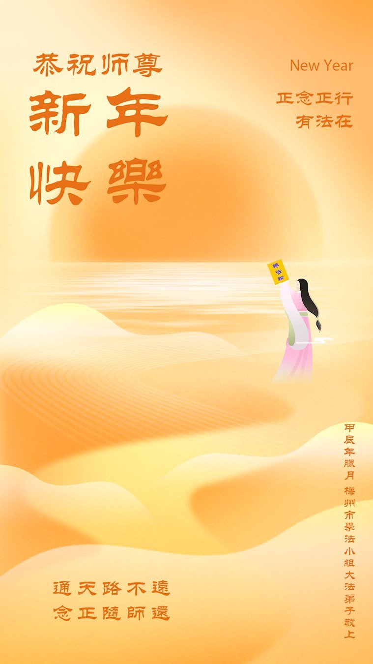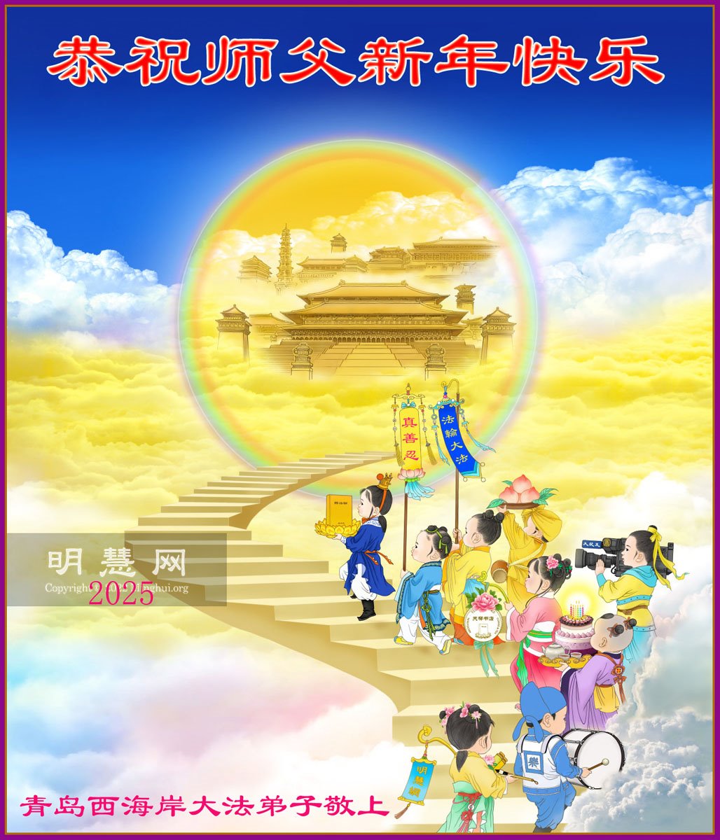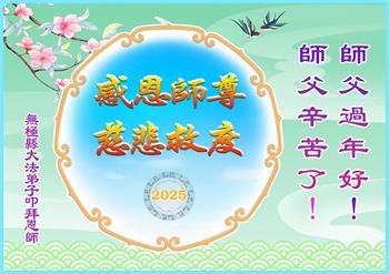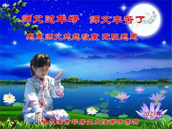 大法弟子们在贺词中写道:师尊为度化弟子,拯救苍生,归正大穹,所承受和付出的一切,弟子们会永远铭记于心,并激励着弟子在返本归真的大道上勇猛精進。在这乾坤再造、苍宇众生都在选择未来的历史时刻,无论世间风云如何变幻,大法弟子都将坚如磐石,随师正法,兑现誓约。