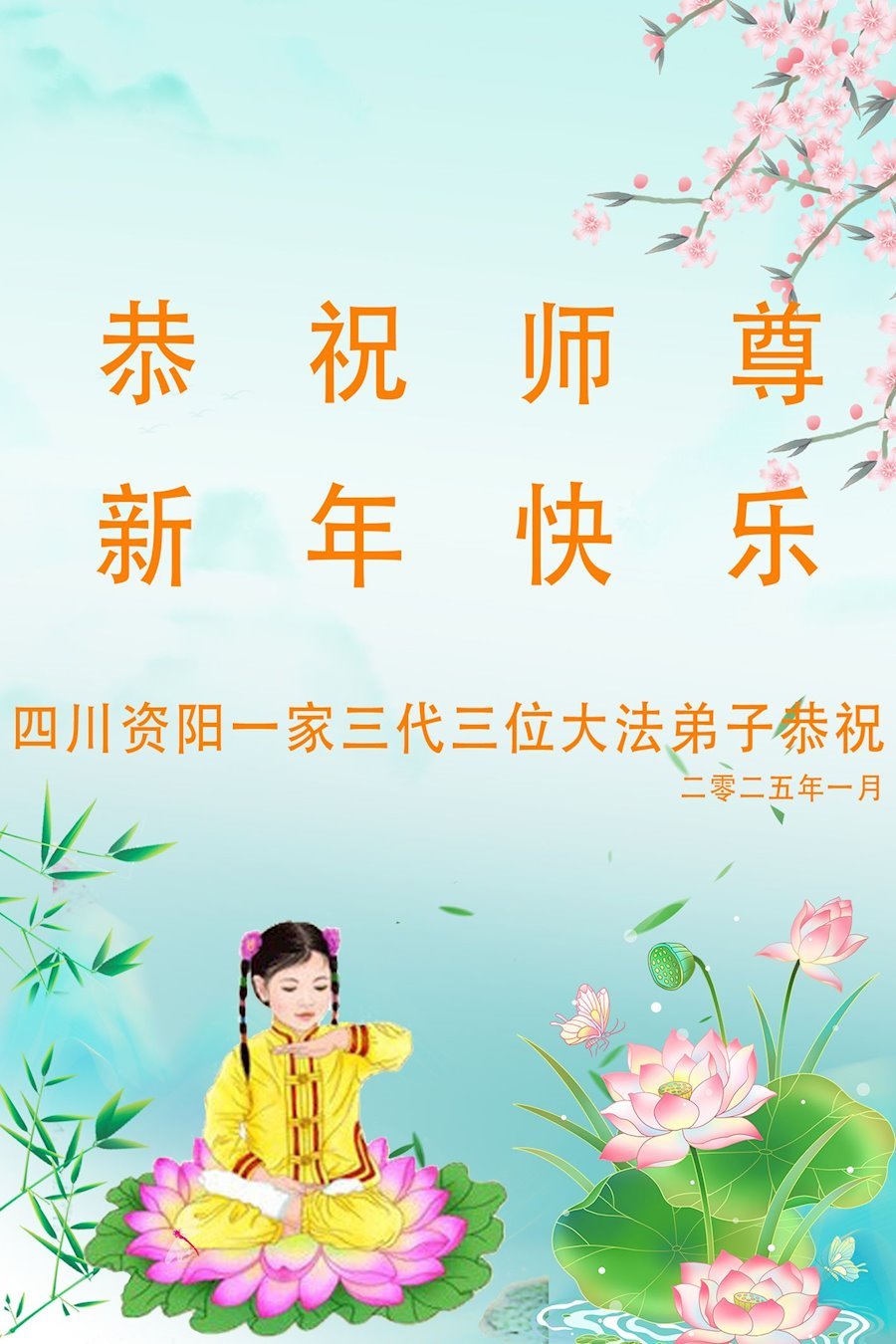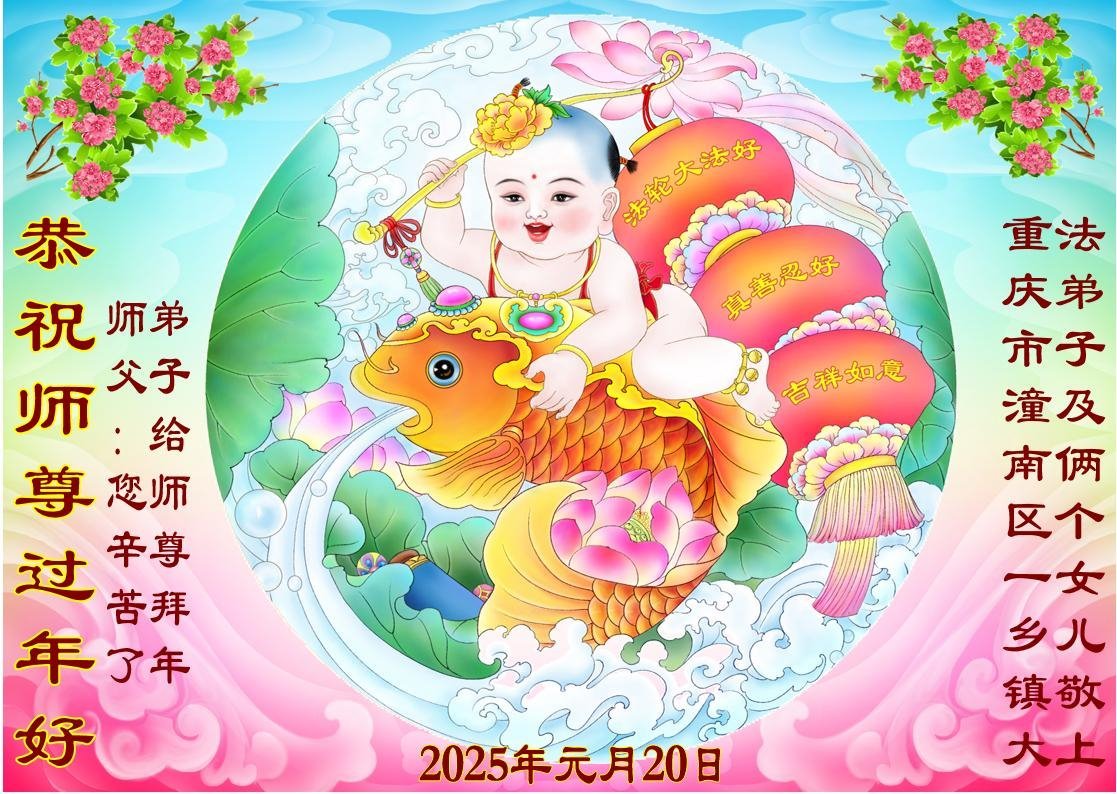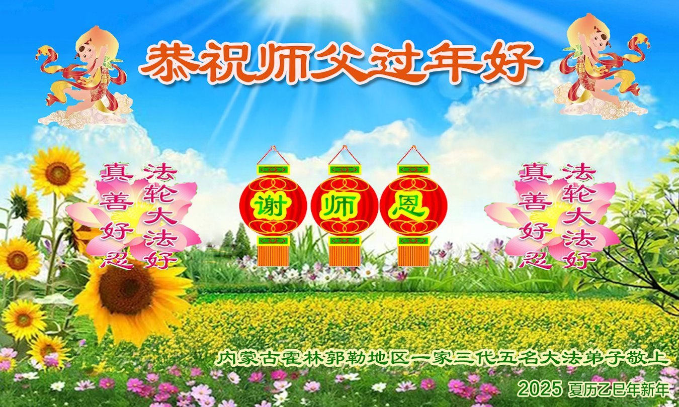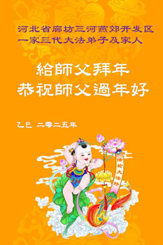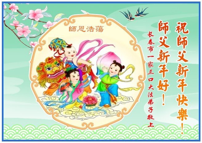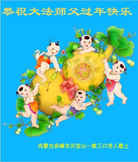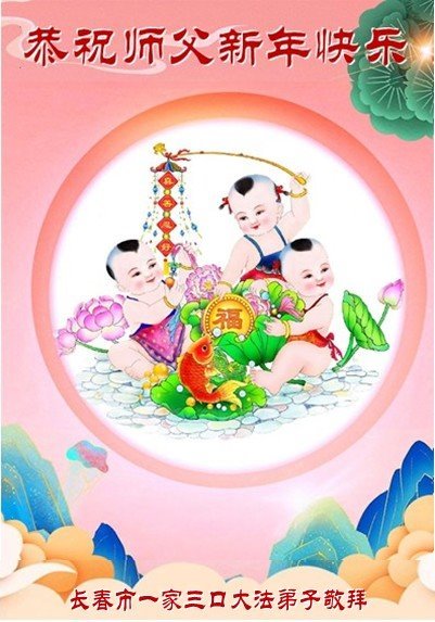 慈悲伟大的师父:您好!弟子一家给您拜年了!