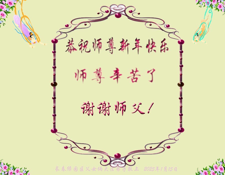 新年伊始弟子恭祝慈悲伟大的师尊新年快乐!师尊您辛苦了!弟子多么希望您少一些操劳,多一份欣慰与快乐!请您放心,我们绝不会辜负您的期望,走好最后修炼路,兑现使命,圆满回天。