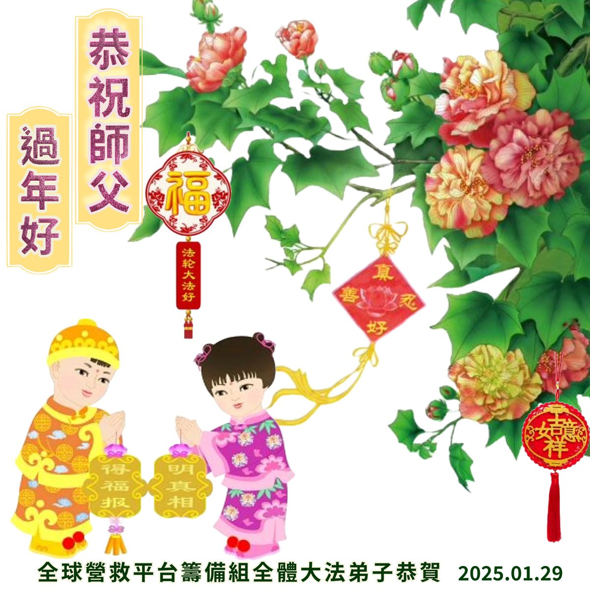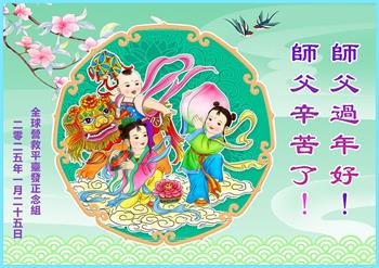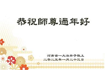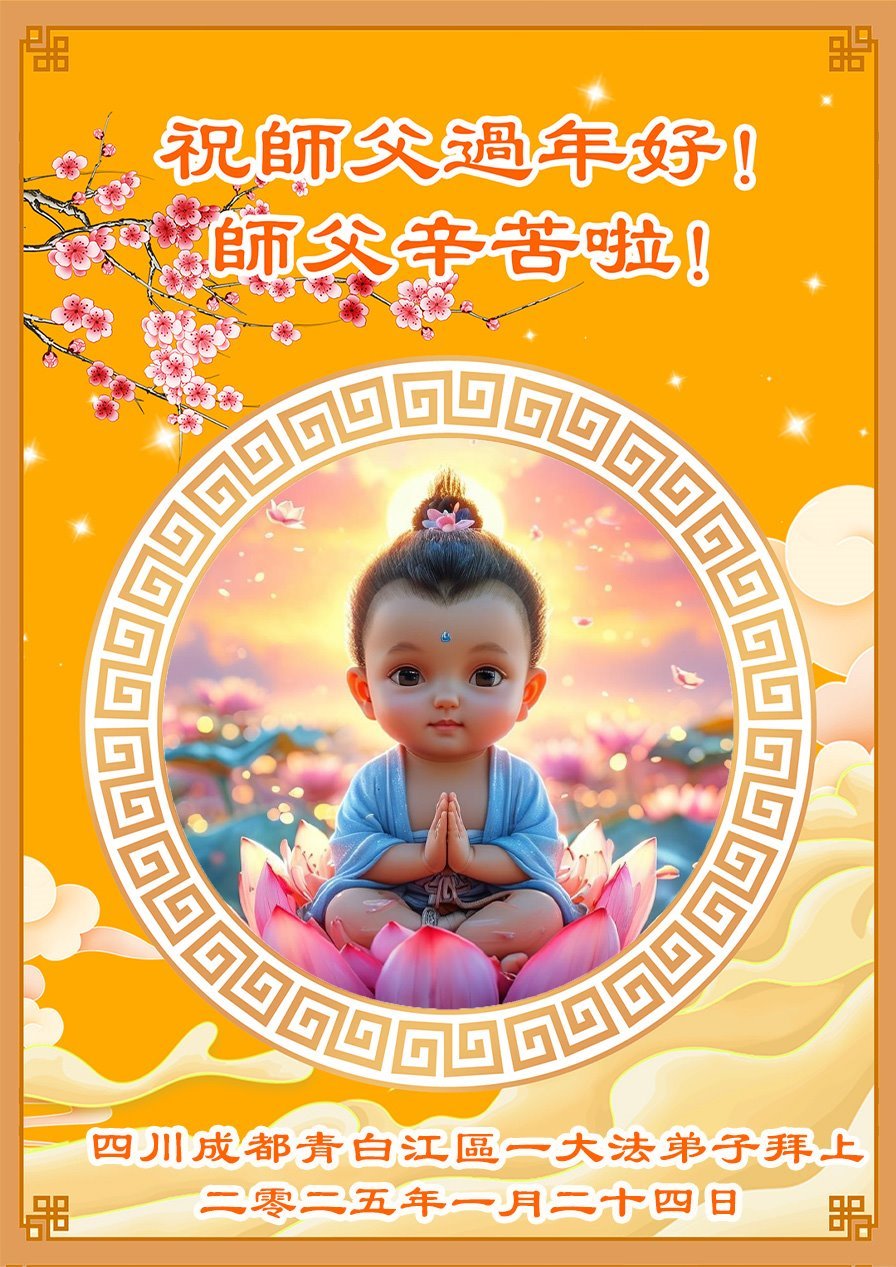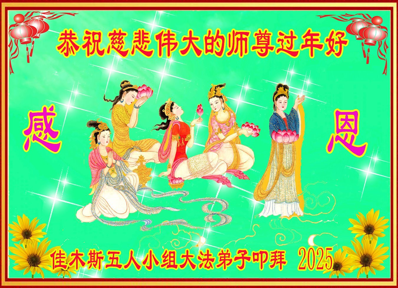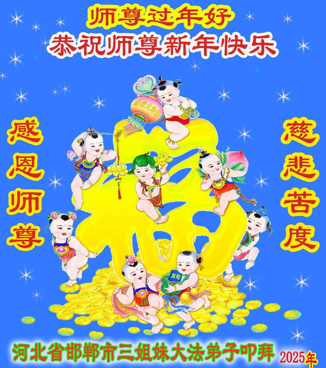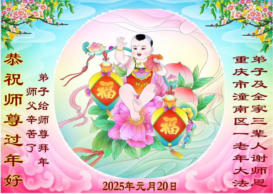 <英文版: https://en.minghui.org/html/articles/2025/1/30/224458.html>中国各地传真相大法弟子恭祝慈悲的师尊新年好