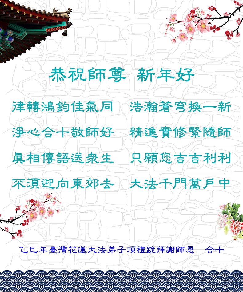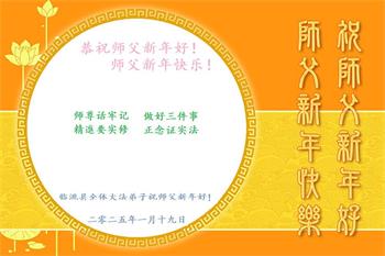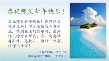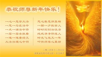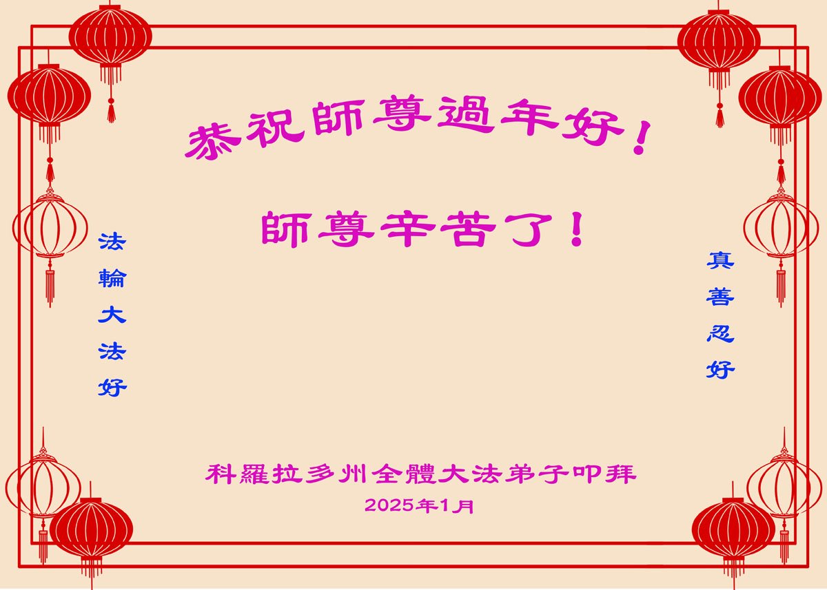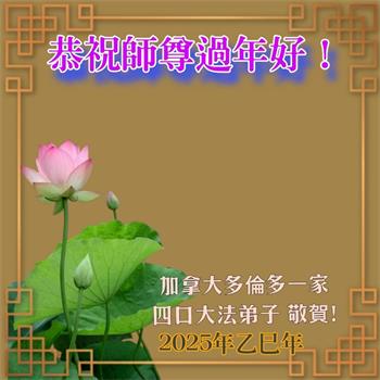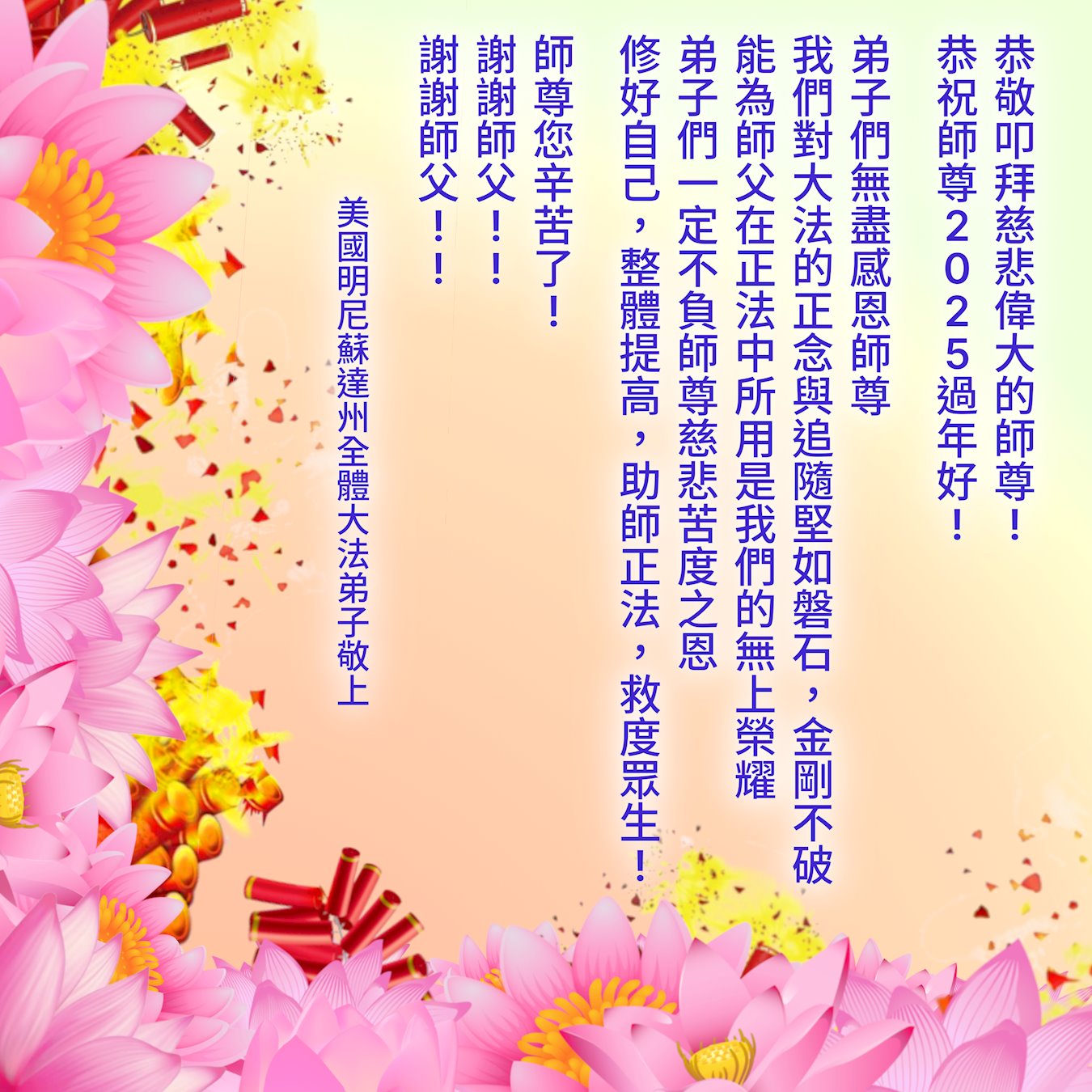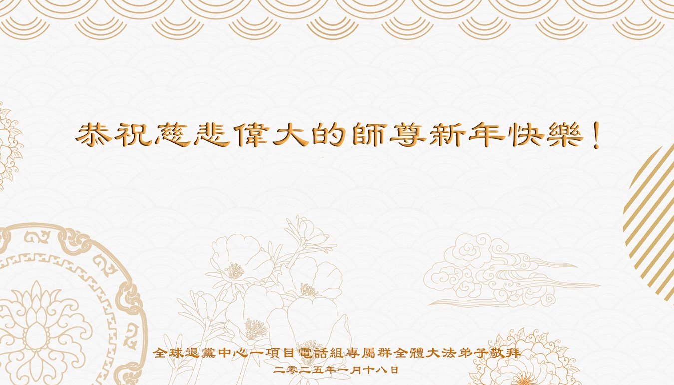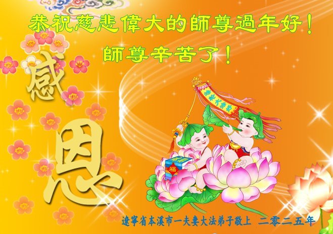 <英文版: https://en.minghui.org/html/articles/2025/1/30/224458.html>中国各地传真相大法弟子恭祝慈悲的师尊新年好