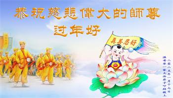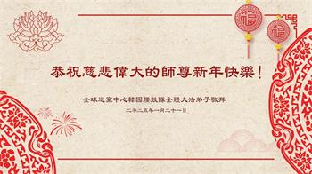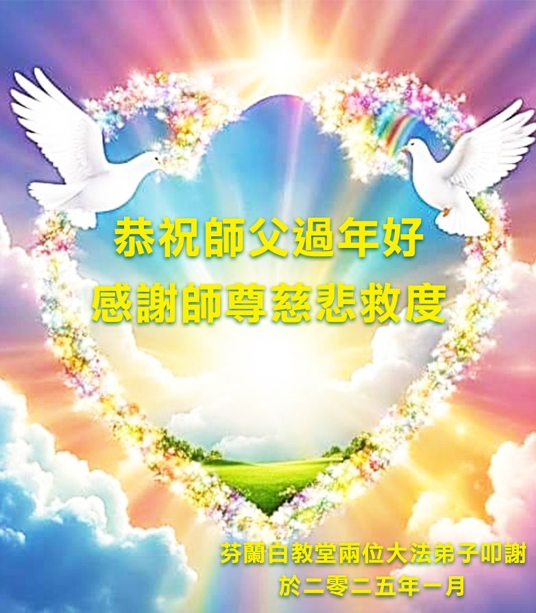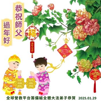 慈悲的师父,过年好!在此佳节之际,感恩师尊慈悲庇护。弟子们在新的一年,继续做好三件事,勇猛精進,救度世人。
