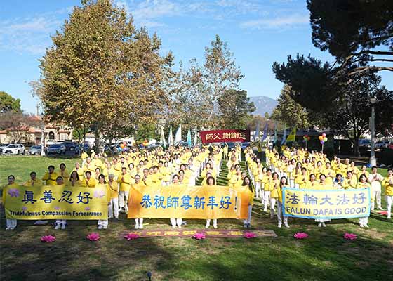 洛杉矶法轮功学员恭贺李洪志大师新年快乐
