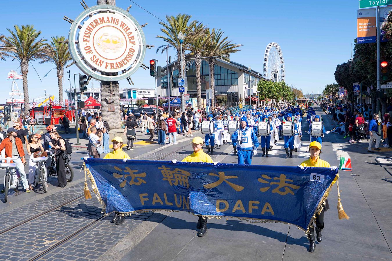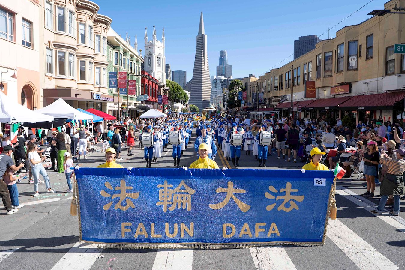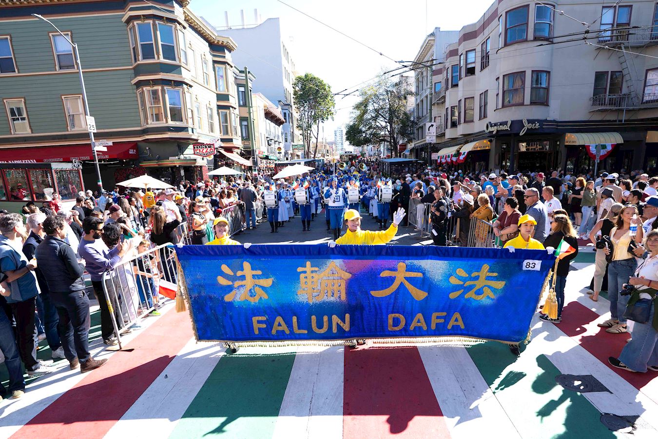 【明慧网二零二五年十月十四日】(明慧记者王英美国旧金山报道)二零二五年十月十二日,一年一度的意大利传统日游行(Italian Heritage Parade)在旧金山哥伦布大道上举行,法轮大法美西天国乐团参加了游行。