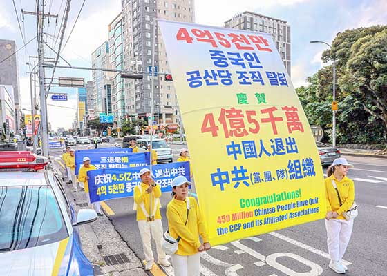 9月21日和22日两天,在韩国著名旅游胜地济州岛举办了声援四亿五千万中国人退出中共组织的游行活动。