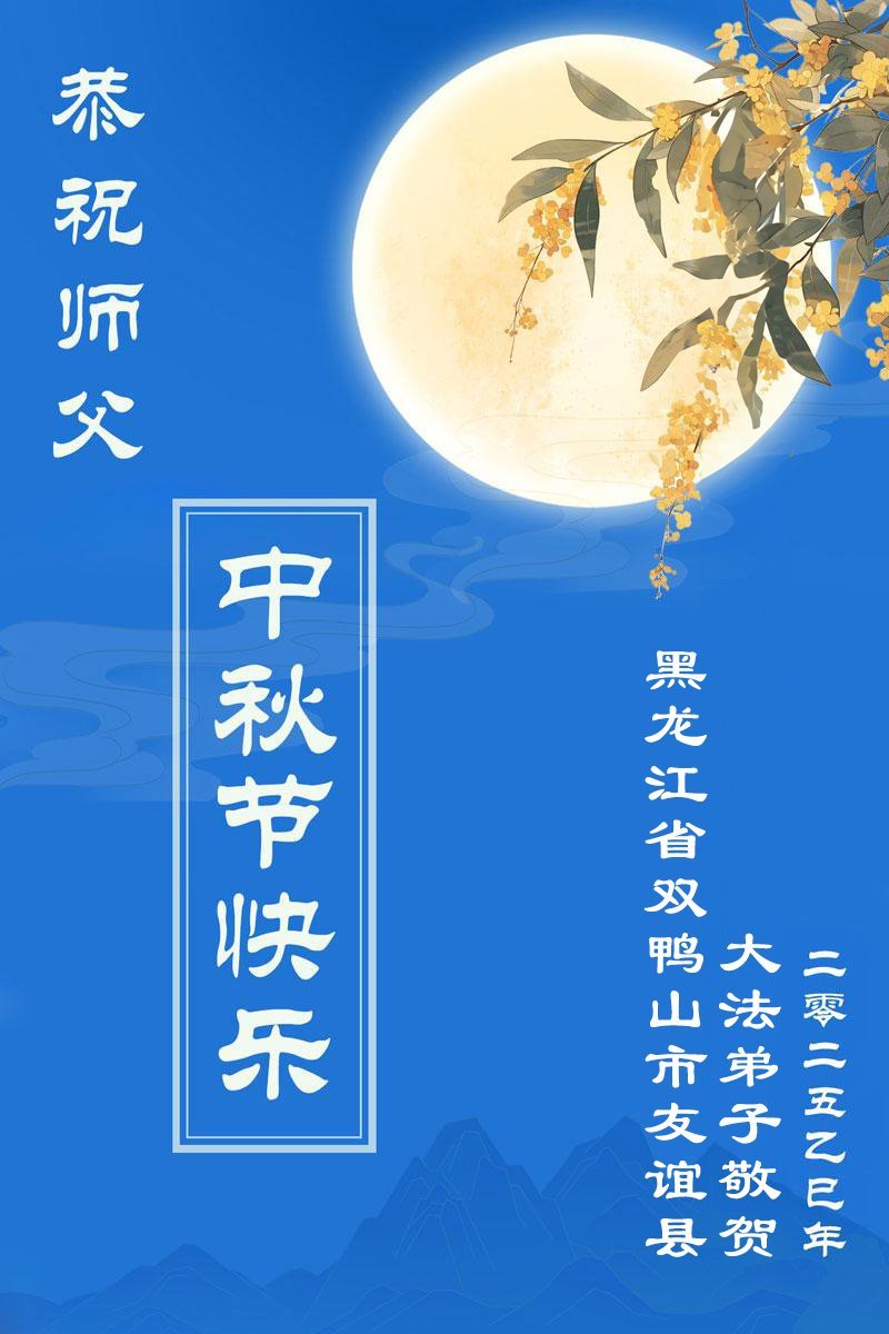 【明慧网二零二五年十月二日】(明慧网通讯员综合报道)大法净化灵魂,真善忍呼唤本性。中国许多明真相及亲身受益的人们,在中共仍在持续迫害法轮功的环境中纷纷走入大法修炼。二零二五年中秋佳节来临,不同年龄段、居住在不同省份地区的新学员感谢师尊!