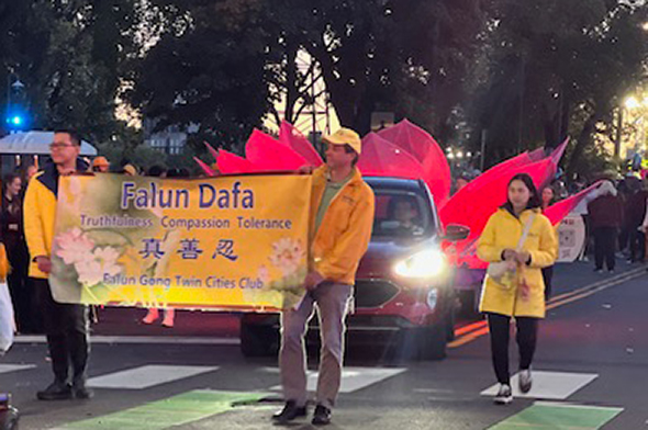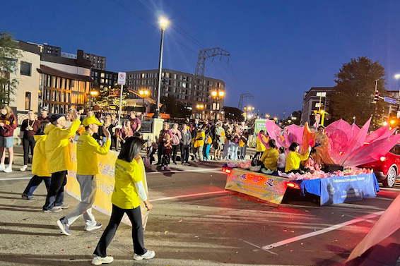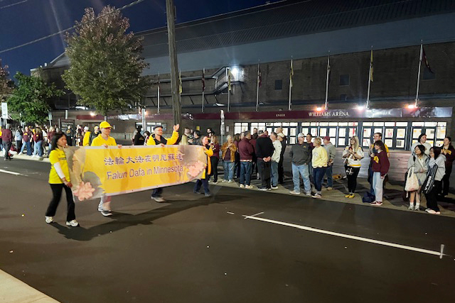 每年秋季,返校日是明尼苏达大学最热闹、最具传统意义的节日之一。整个一周,校园内洋溢着节日的气氛,其中最令人期待的,莫过于来自各个学生组织和社区团体的返校日游行(Homecoming Parade),每个队伍都会精心布置。明尼苏达大学法轮功双城俱乐部自从成立以来,已经有十几年参加返校日游行活动,每一次都受到观众的热烈欢迎。