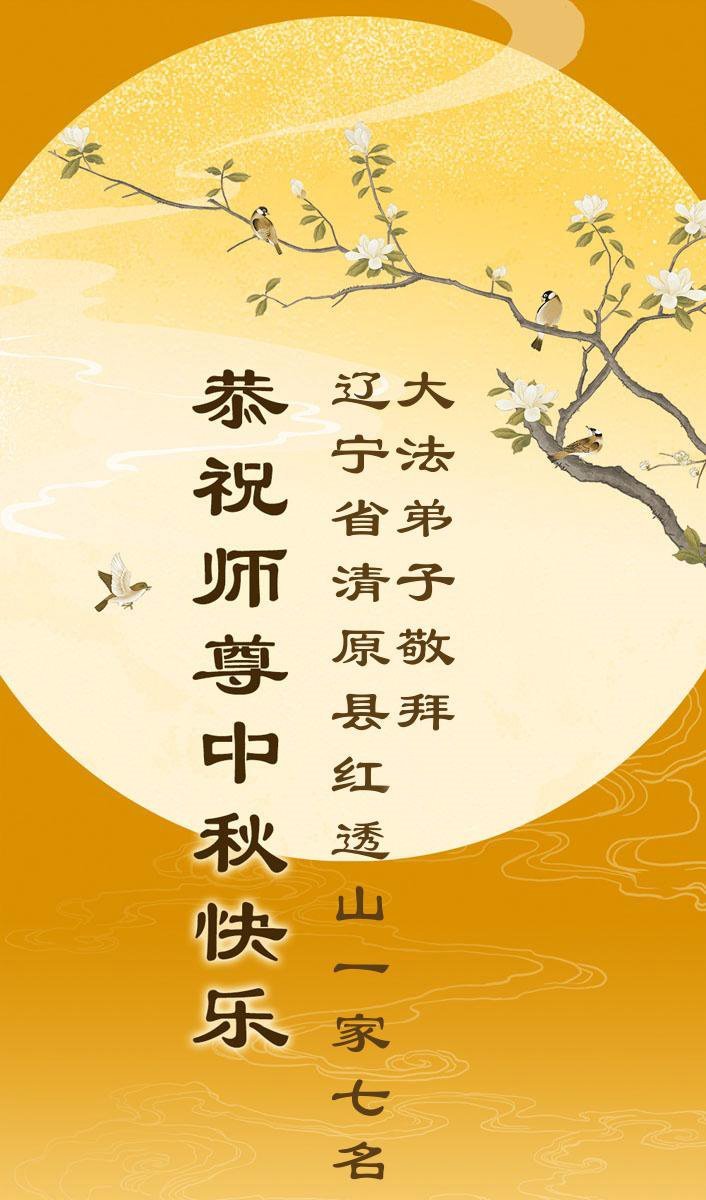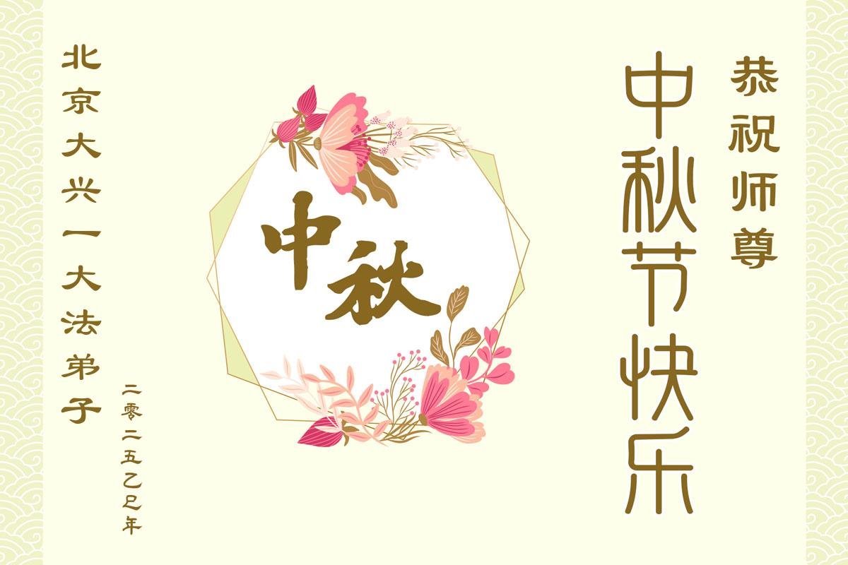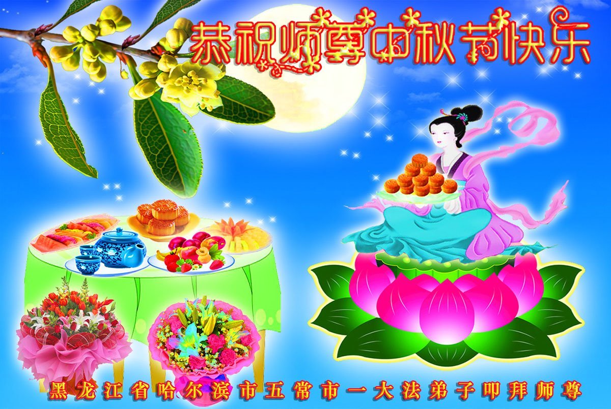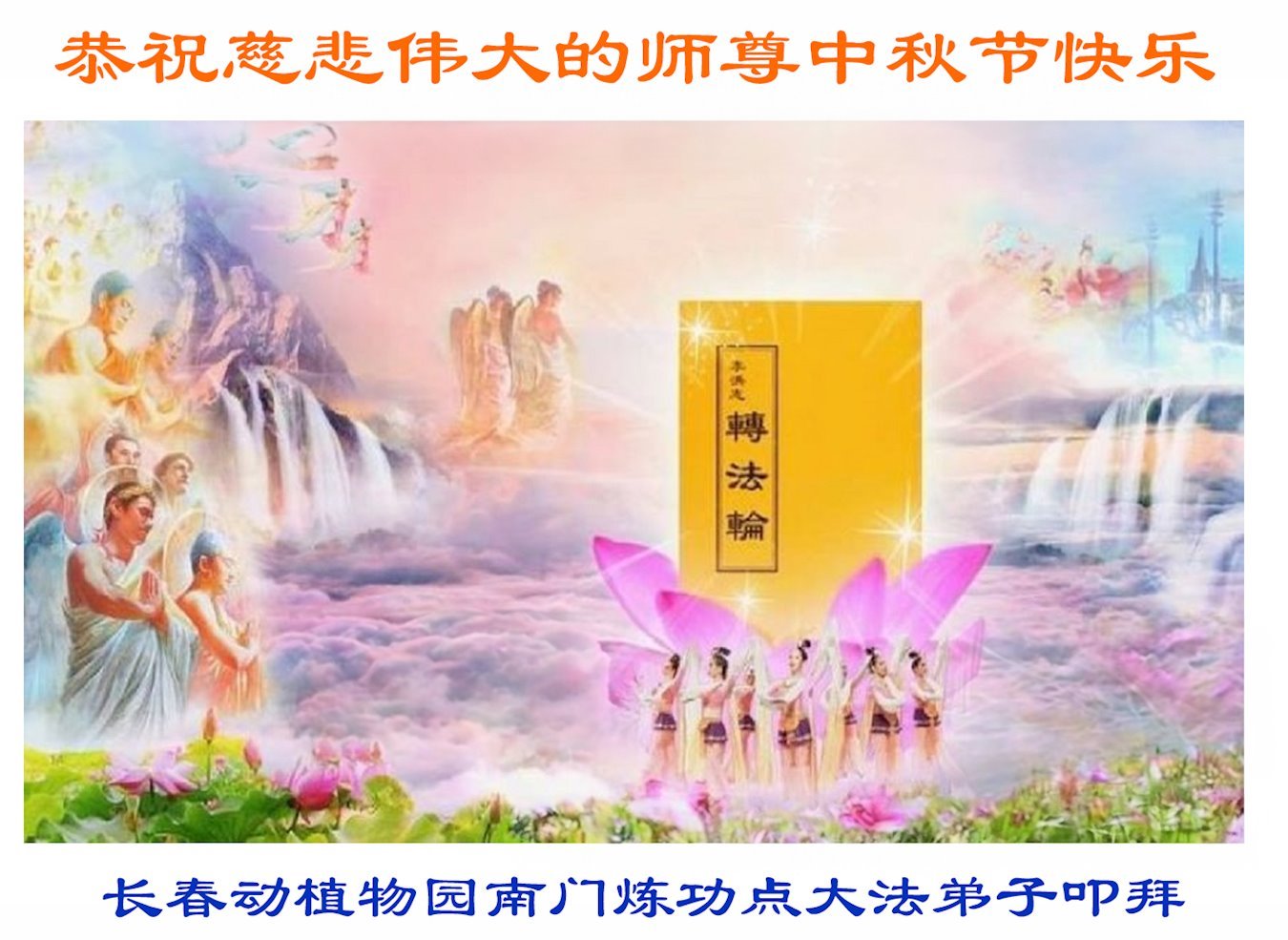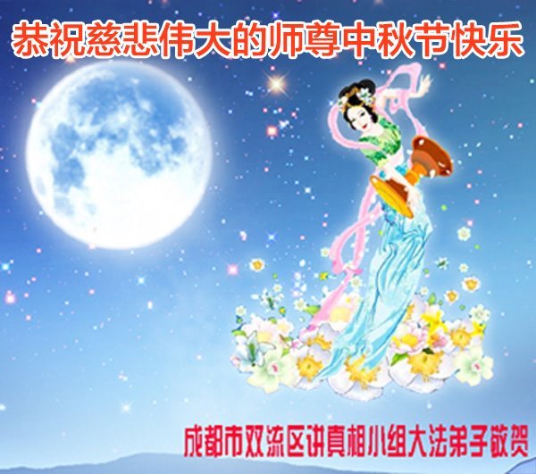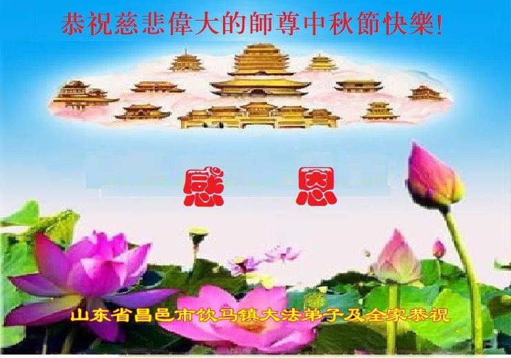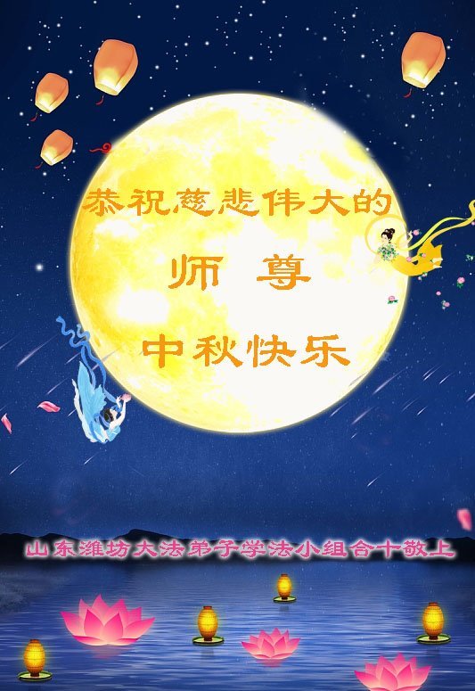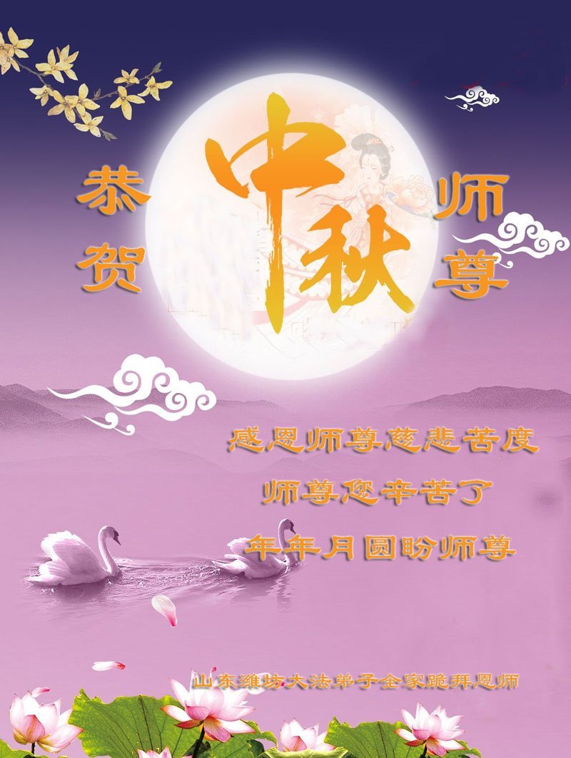 师尊您辛苦了!阖家团圆的中秋佳节又来临了。我们想念师尊,盼望早日见到师尊。在二十多年的修炼路上,是慈悲伟大的师尊牵着我们的手,一步步的走到了今天,师尊为我们的巨大付出和承受,我们是根本无法想象的,师尊的洪恩是用人类的语言无法表达的。弟子只有一颗坚定的心,谨遵师尊教诲,在所剩不多的时间里做好三件事,走好修炼的路,完成大法弟子的使命。深深叩拜师尊的救度之恩!