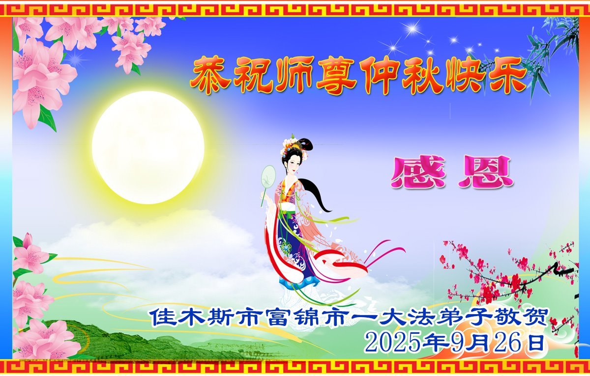 <英文版: https://en.minghui.org/html/articles/2025/10/4/230420.html>加拿大魁北克法轮功学员恭祝师父中秋节快乐