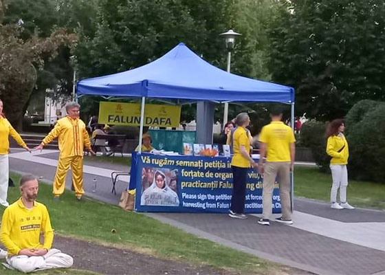 来自罗马尼亚、匈牙利、斯洛伐克、摩尔多瓦和法国五个国家的部分法轮功学员,9月19日参加了罗马尼亚巴亚马雷栗子节的开幕式和游行。