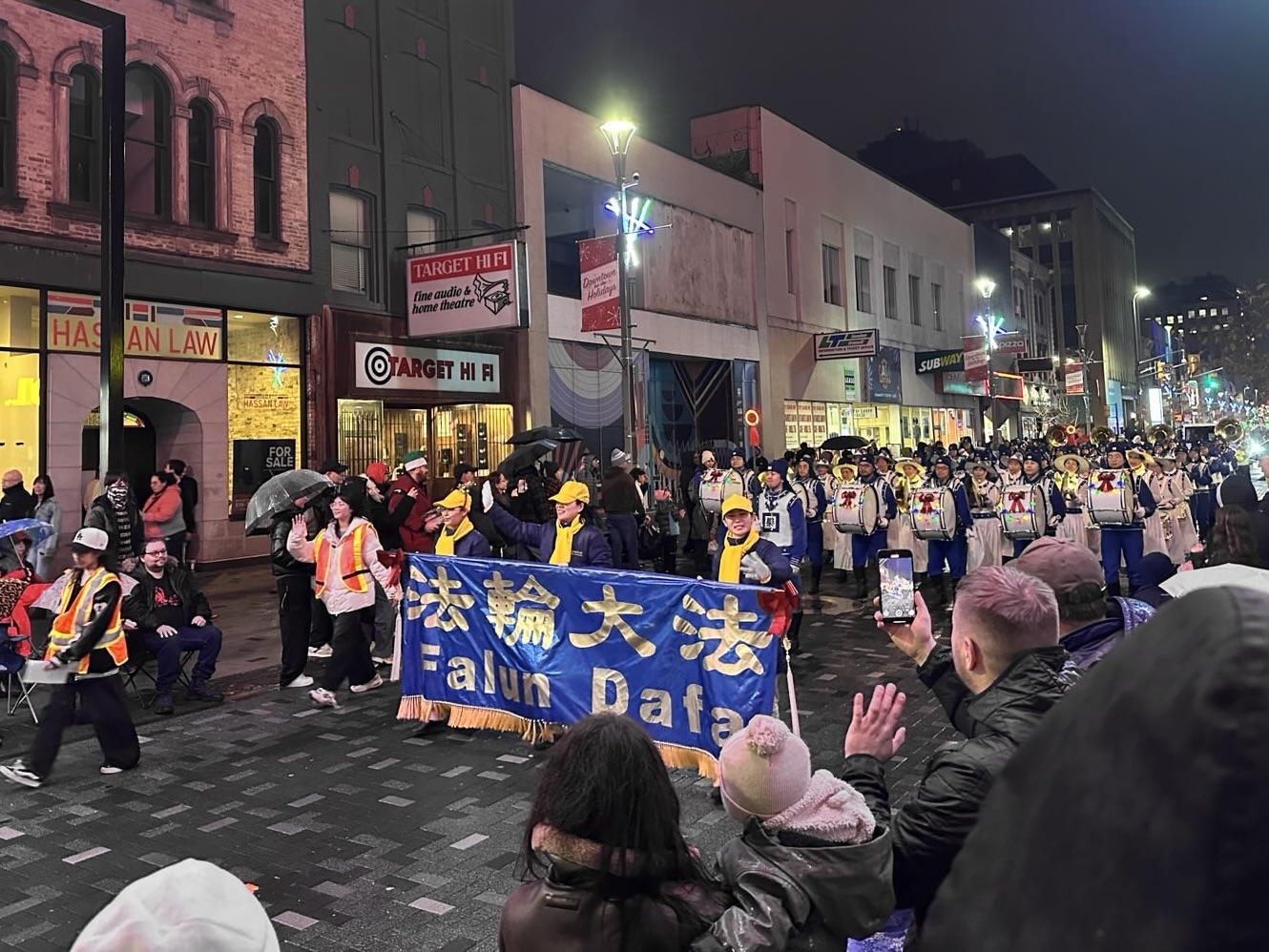 应多方邀请,由法轮功学员组成的天国乐团在刚过去的周末参加了五场圣诞游行演出。十一月十五日清晨,他们前往纽马克特(Newmarket),参加当地于上午十一点的活动。接着,他们先后在汉密尔顿(Hamilton)和伦敦(London)市完成了在下午和晚间的表演。十一月十六日下午一点半,他们参加了米尔顿(Milton)的游行,然后驱车前往纽卡斯尔(Newcastle),参加了晚上五点半的庆祝活动。