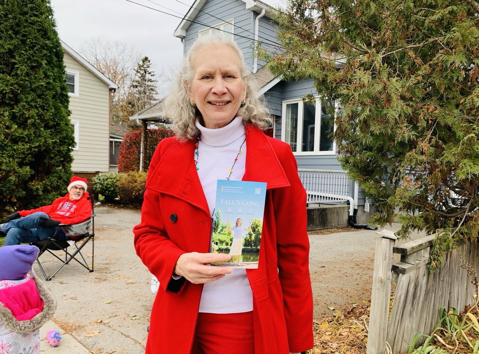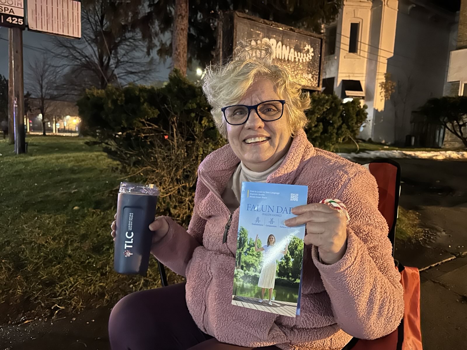 学员跟特蕾莎介绍天国乐团是由法轮功学员组成的,法轮功包括五套功法以及围绕真、善、忍原则提高心性。特蕾莎听后说:“我认为真、善、忍的原则是非常好的,如果全世界都遵照这些原则,那我们就不会有战争和内斗了,我们也可以给未来的人们树立良好的榜样。”她还表示会扫描传单上的二维码参加免费法轮大法学功班,了解更多信息。