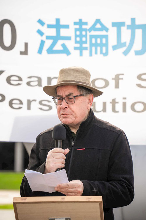 ![]() 图6:安东尼·布朗特(Antony Brunt)在二零二三年七月十五日,法轮功学员反迫害集会上的演讲照片。 |