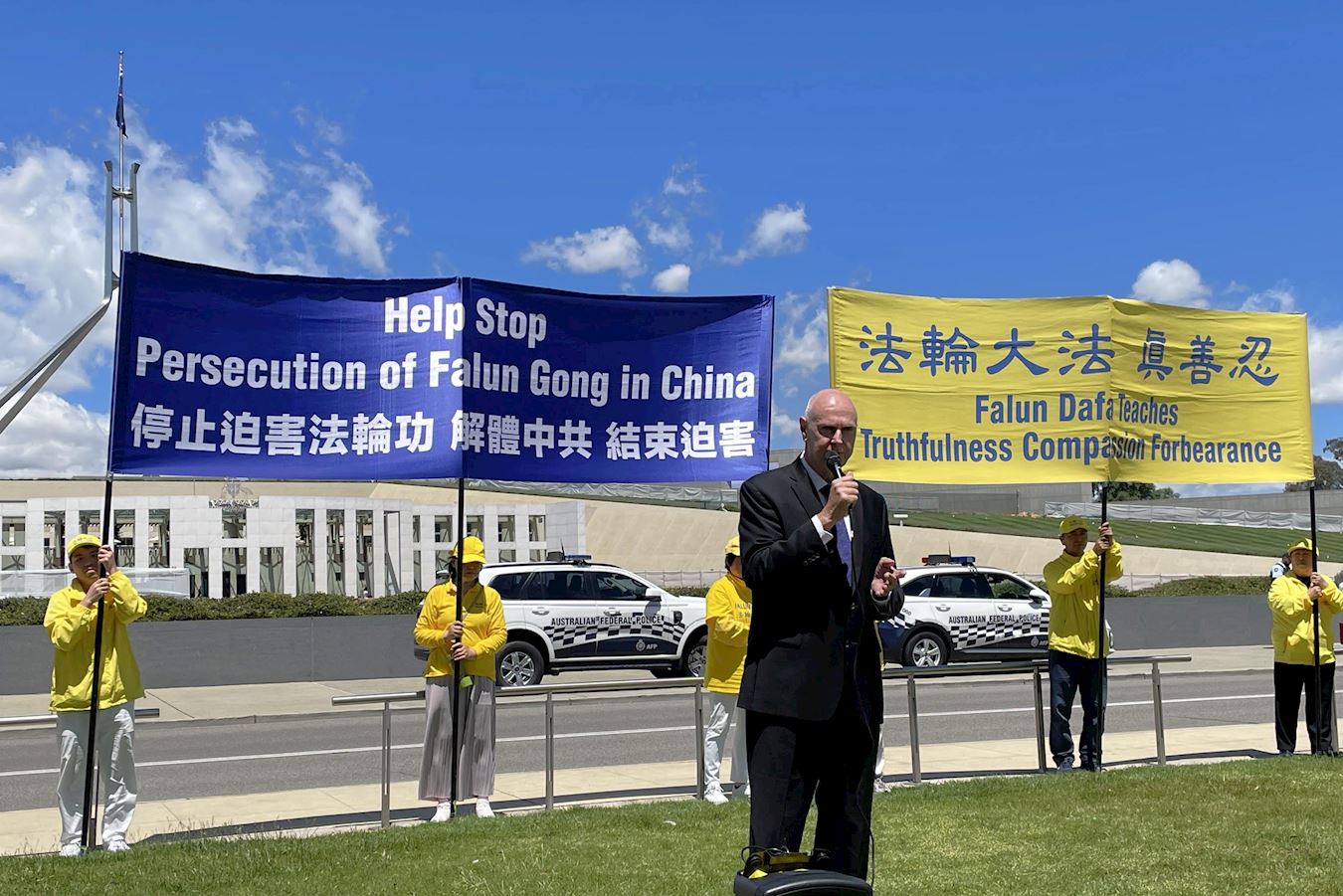 澳洲法轮大法学会发言人戴乐(John Deller)在集会上指出,赵乐际“不是普通访客,而是严重人权侵犯者,”他还表示,“欢迎外国官员访问并不稀奇,但澳洲不应轻率地欢迎一名迫害、虐杀及酷刑折磨无辜百姓的共产政权官员。”