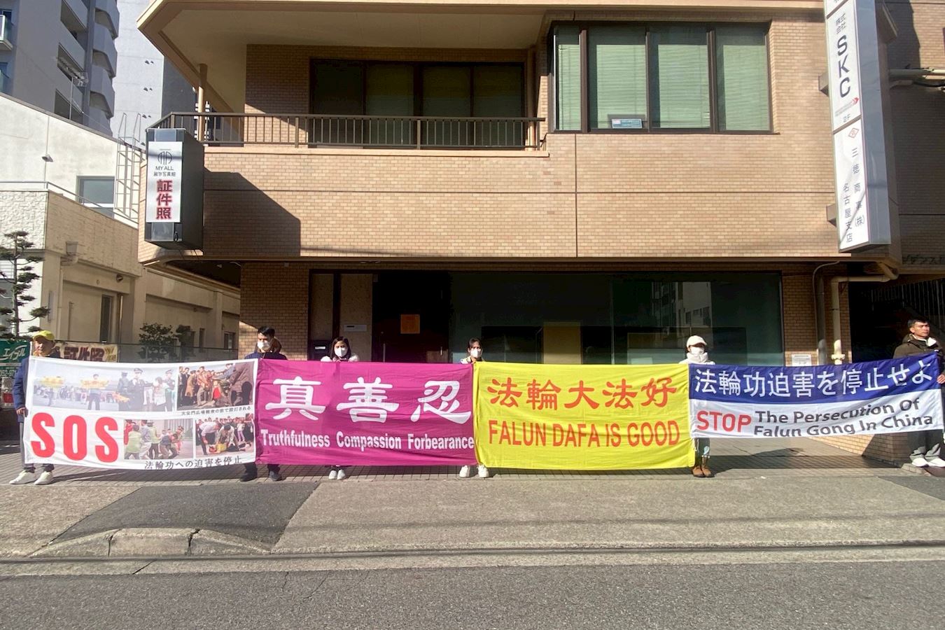 此外,十二月六日,在世界人权日到来前夕,名古屋部份法轮功学员在名古屋中领馆前打出写有“法轮大法好”、“真善忍”,以及“SOS 停止迫害法轮功”的多语种条幅,呼吁世人关注在中国发生的中共对法轮功学员长达二十六年多的人权迫害,呼吁中共政府立即停止迫害。